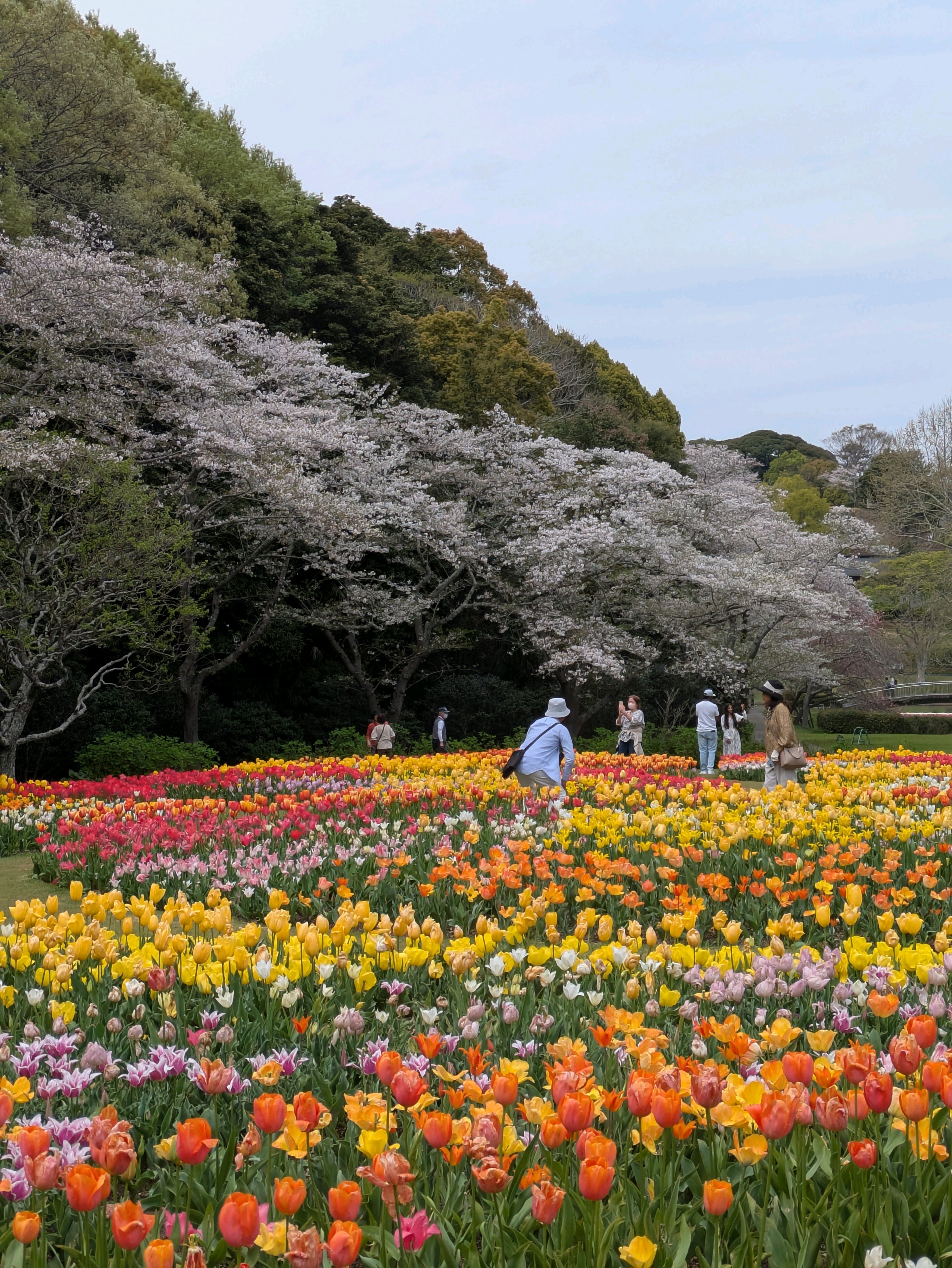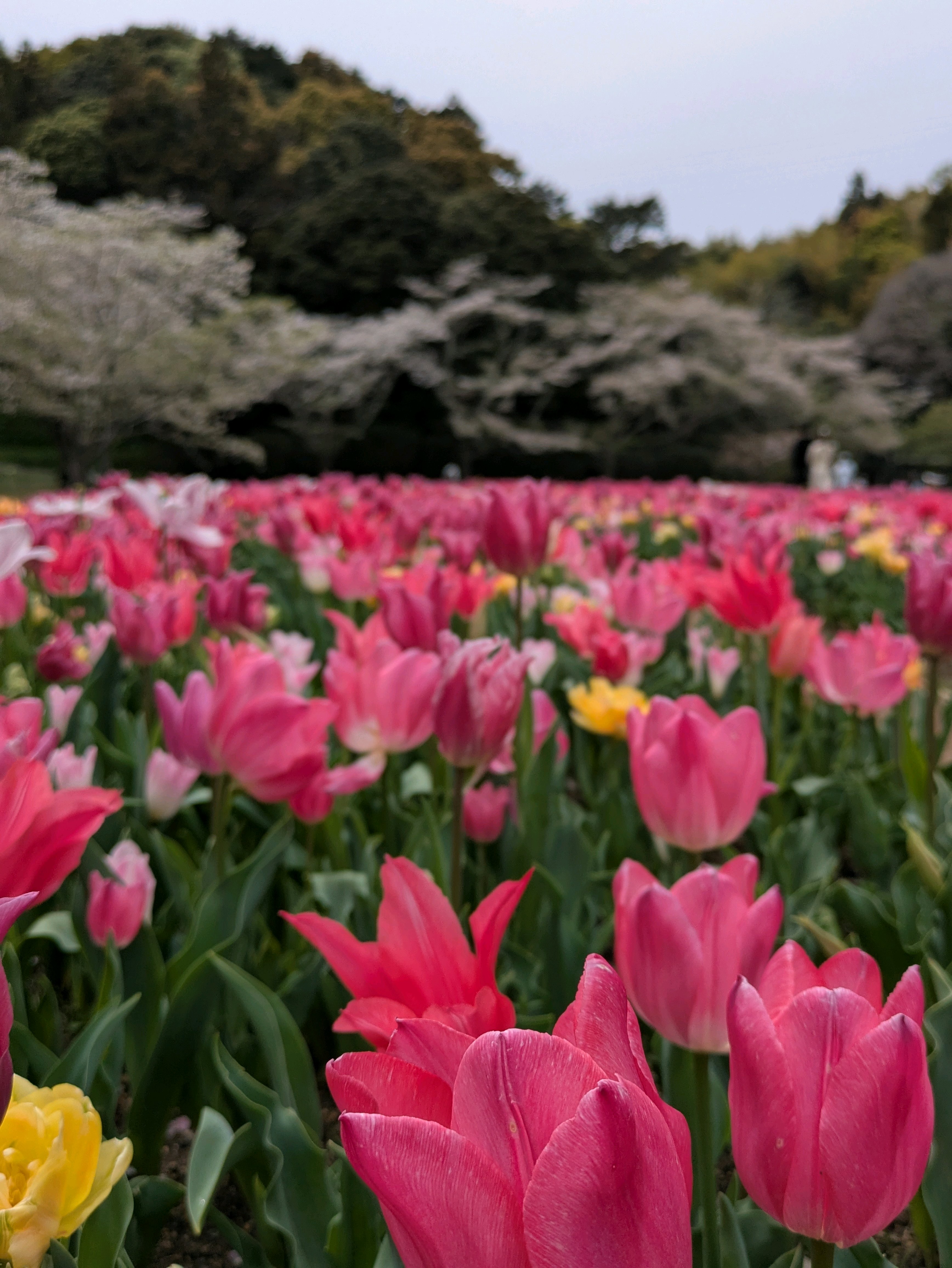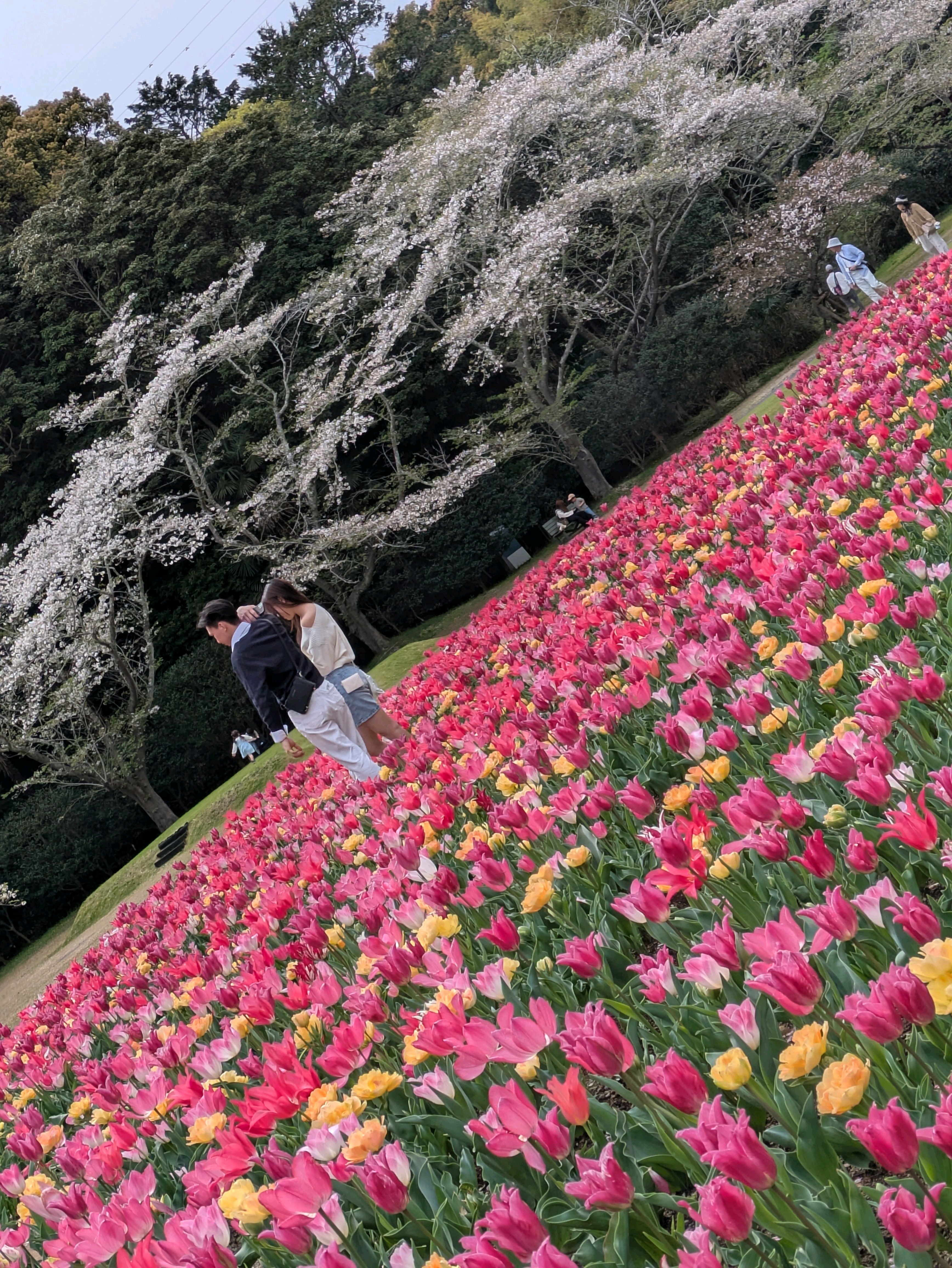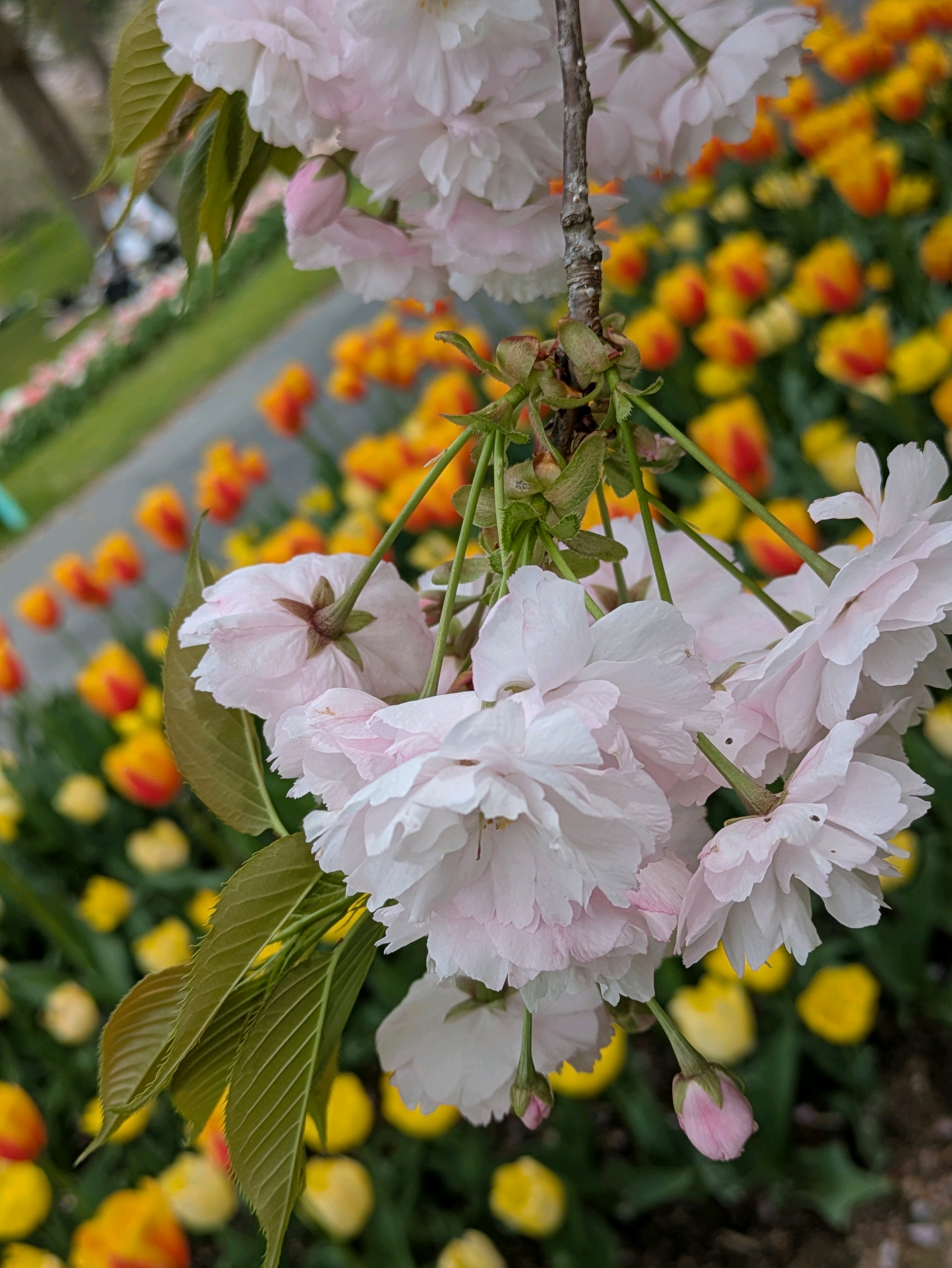 先程と同じく広大に広がる桜とチューリップの群生達🌸🌷