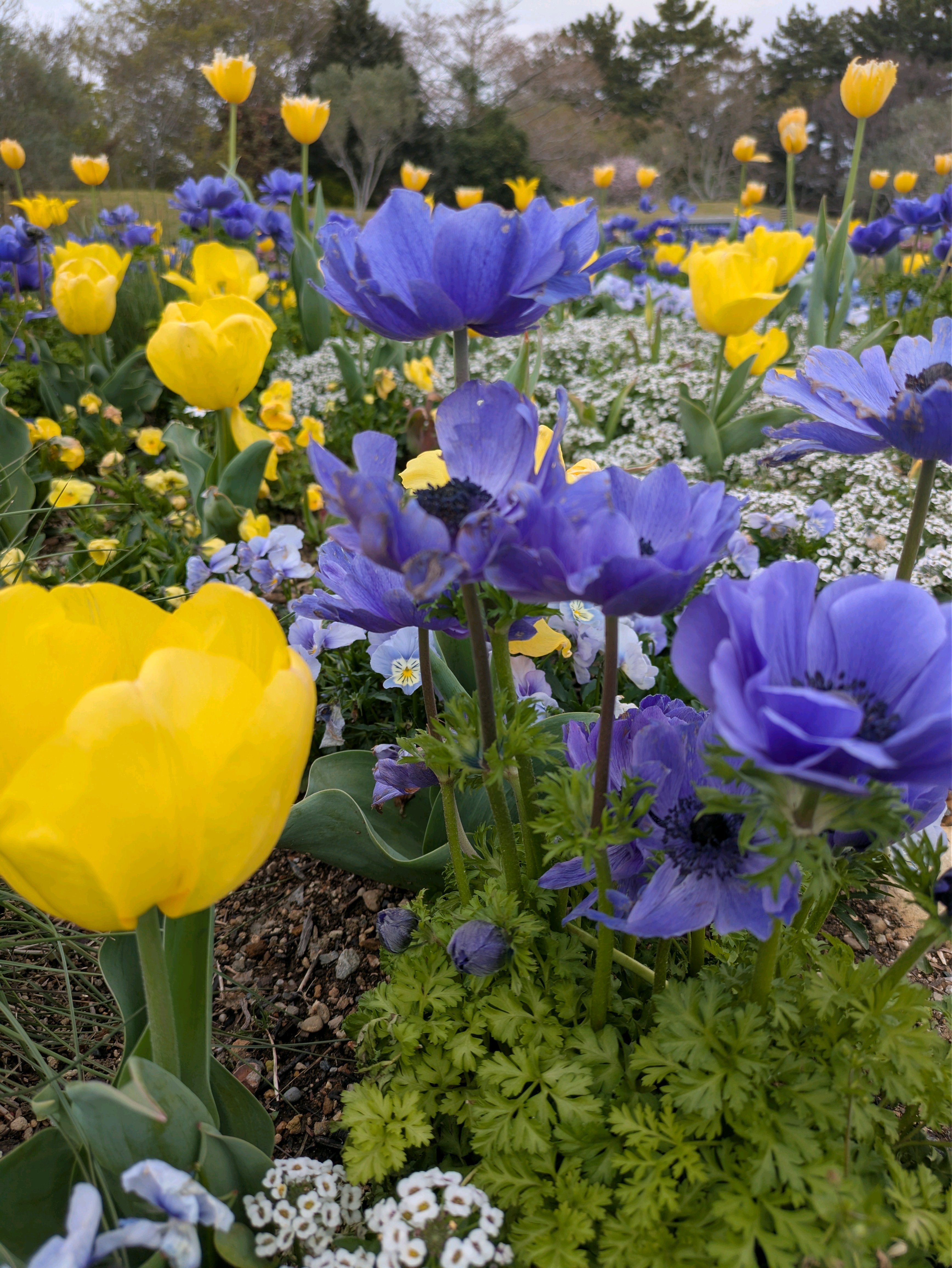 こちらは観覧車🎡の風景を見つつ次に目に入りますイエローコーナーのチューリップと春のお花達の賑わいを魅せています😊