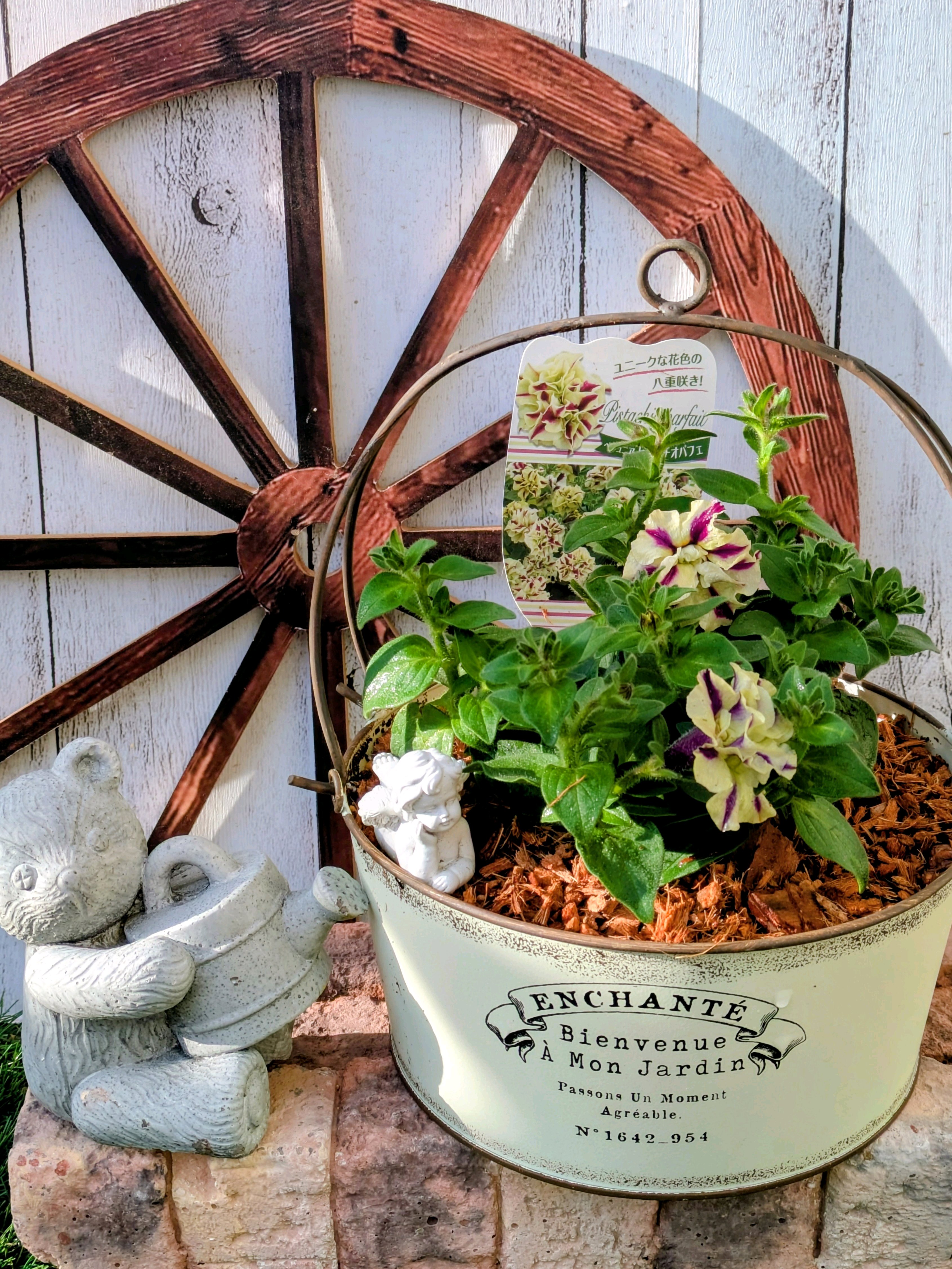 フラワーパークの売店にてお迎えをしたペチュニアとブリキ鉢👍😉