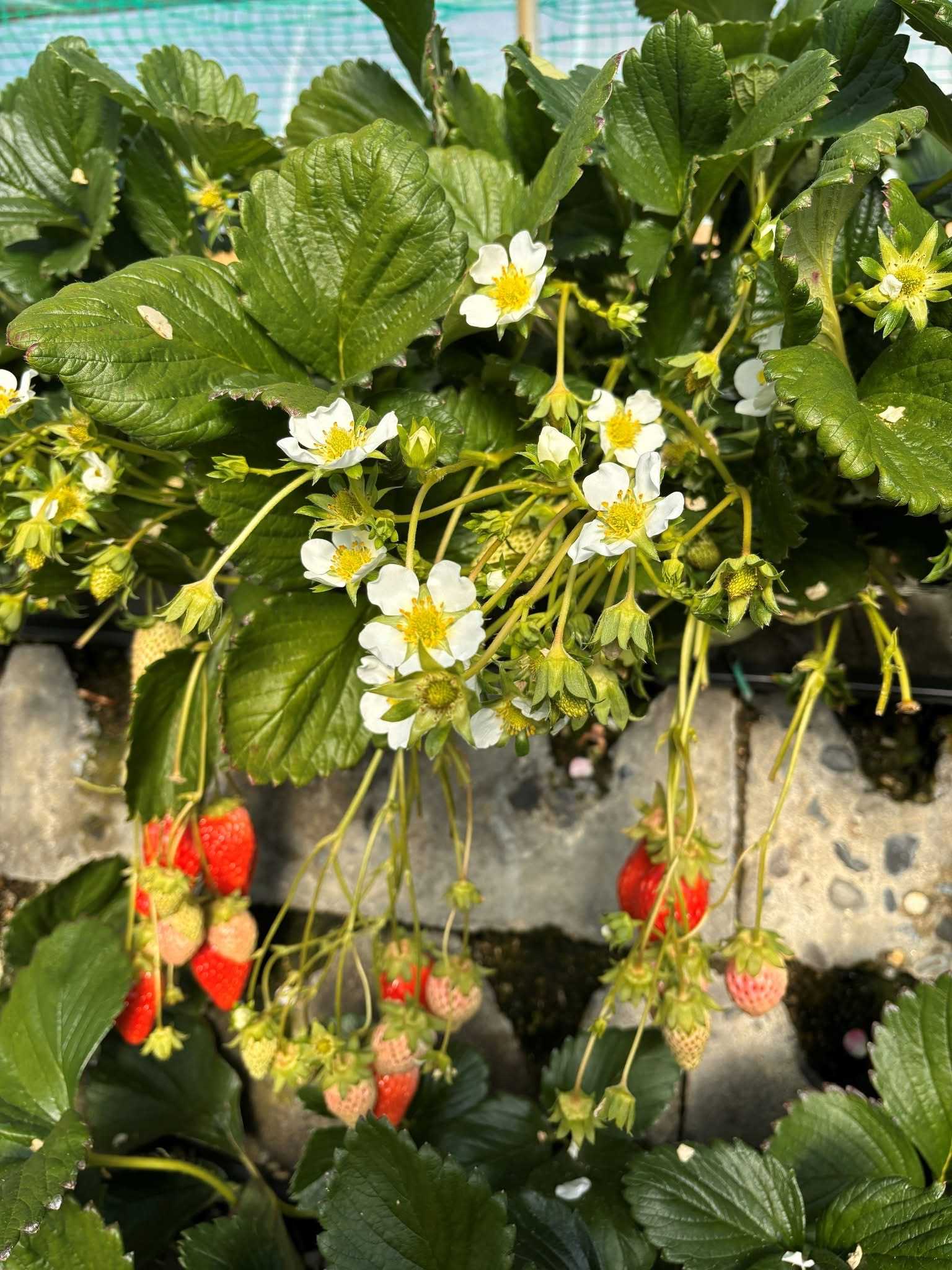 おいらが一つひとつのいちご味わって食べているとき、ふと横を見ると4Kはと言うと、アフリカなどで猛威をふるったサバクトビバッタ🦗のように石垣に張り付いているではないか。葉っぱまで食べ尽くすような勢いだ😱