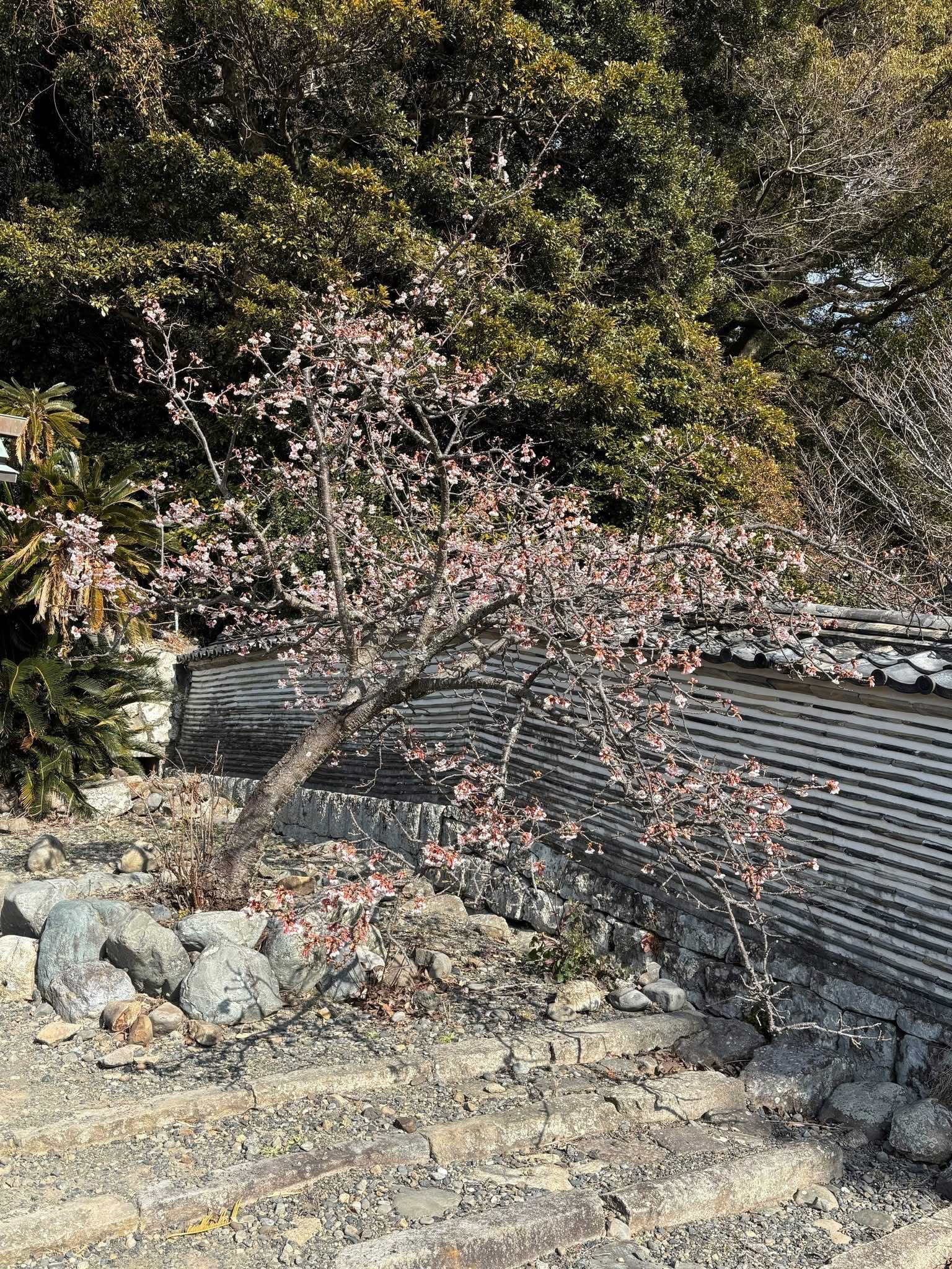 この門前に桜のような花が咲いていました。