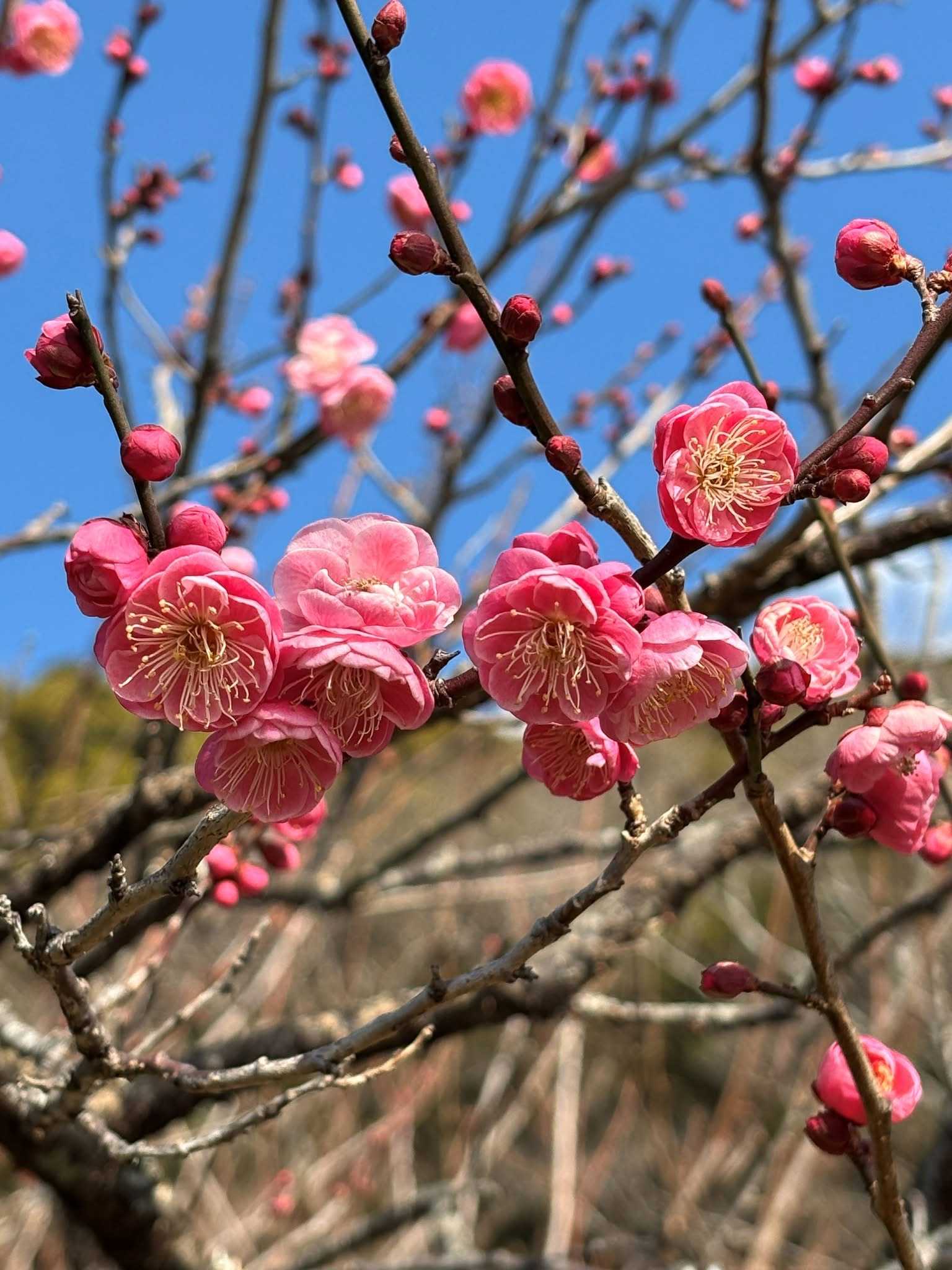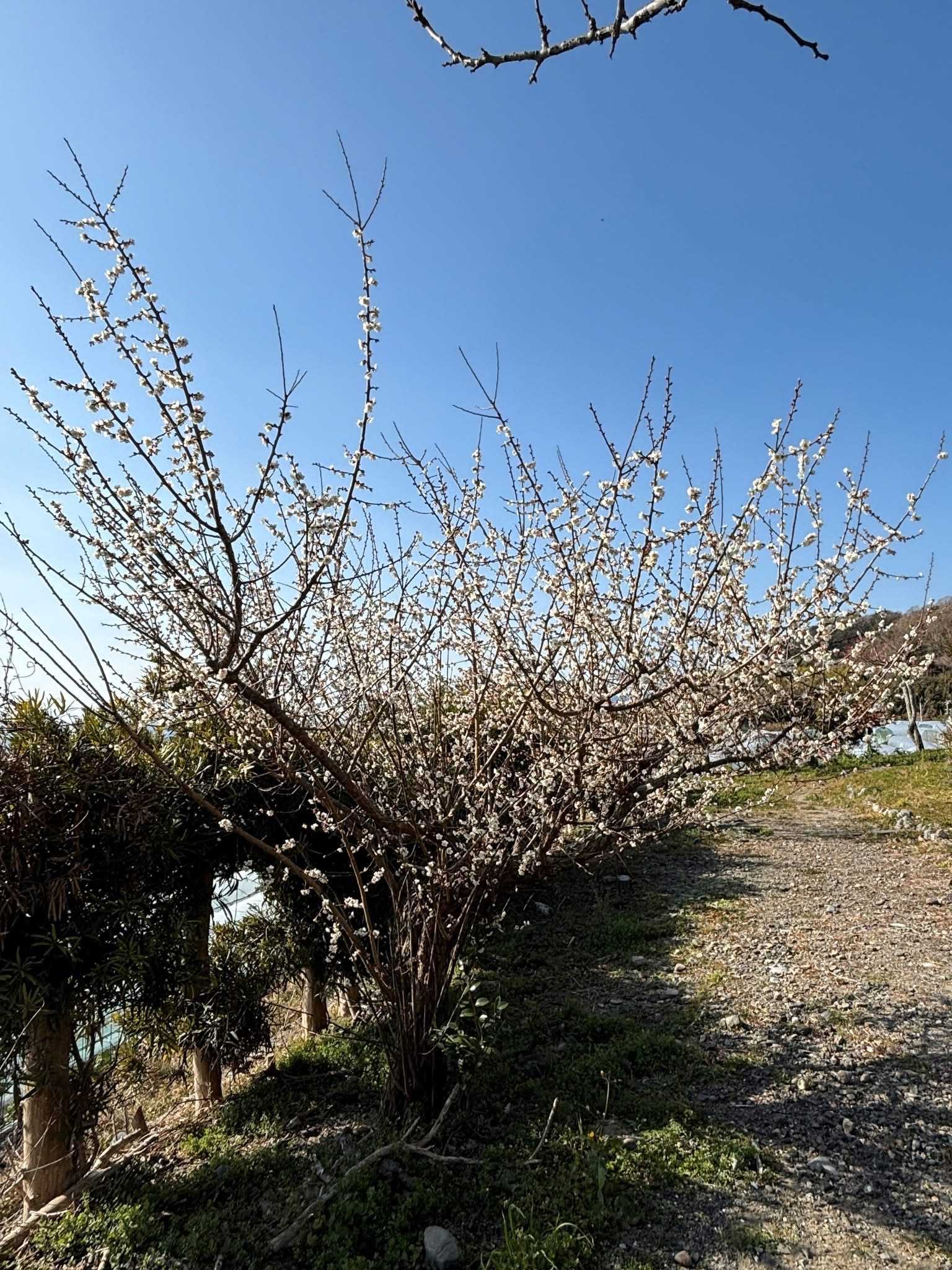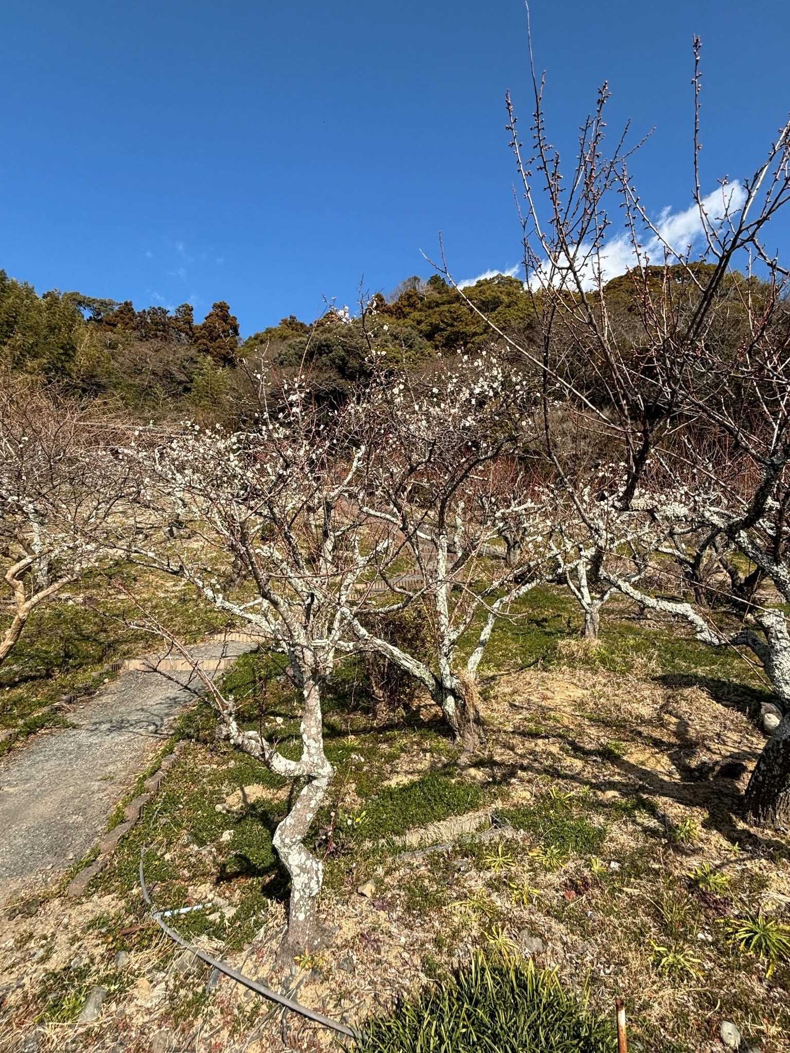 ハウスの上の斜面に梅が咲いているのが見えました。4Kが富久屋さんでお土産を買っている間に、徳音院の桜を眺めてから、この梅林に行ってきました。