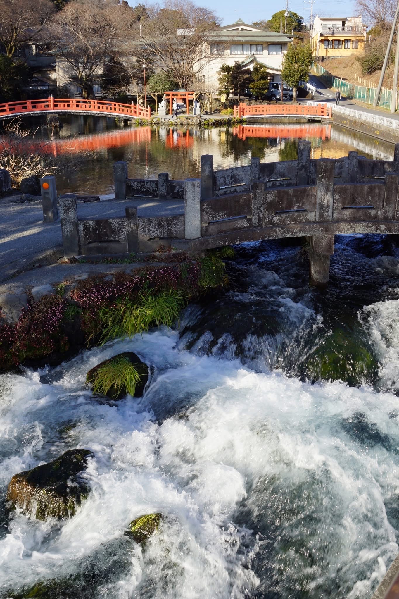 浅間大社の境内の池です。1日で30万トン湧出する富士山の伏流水です。