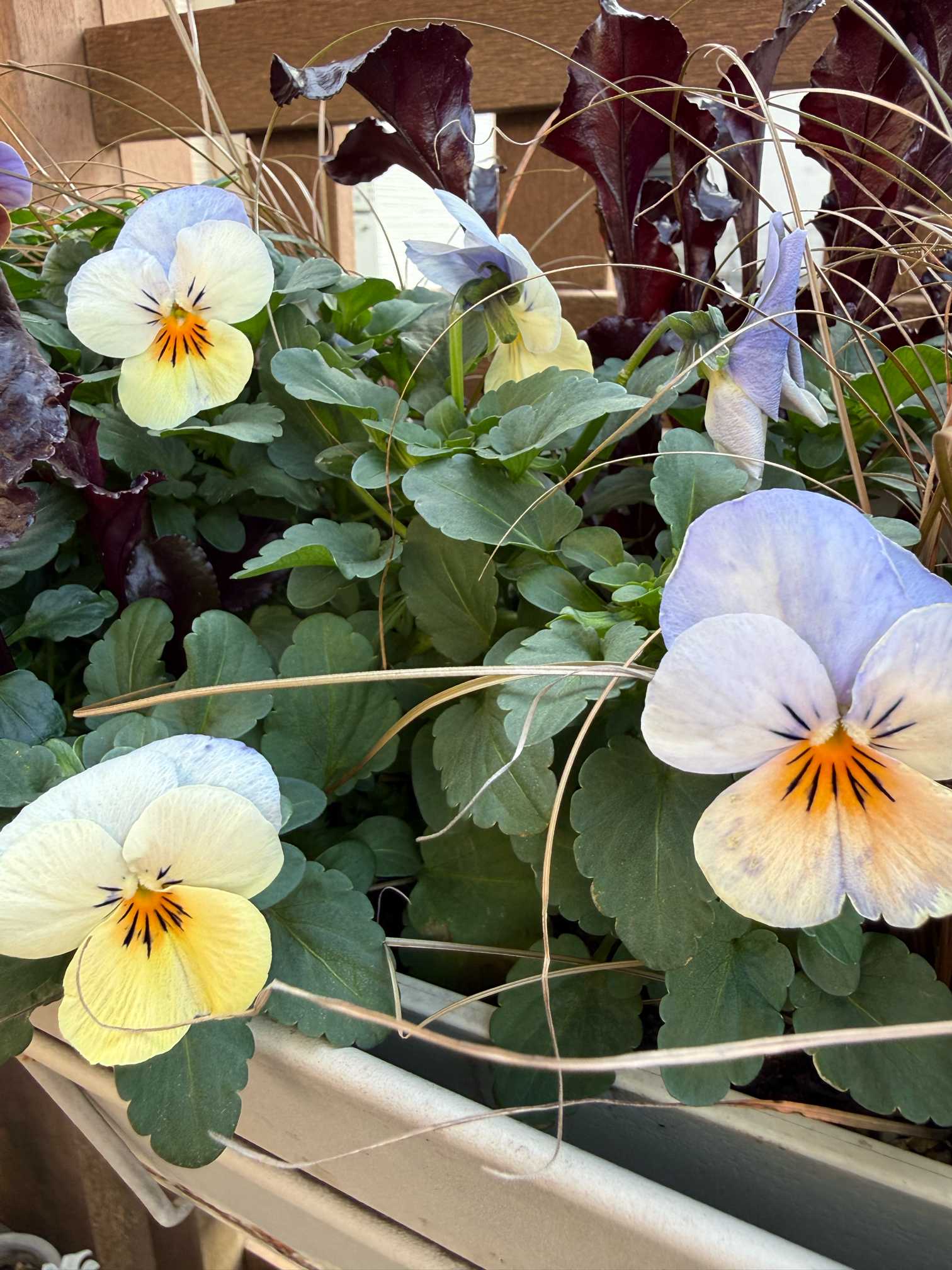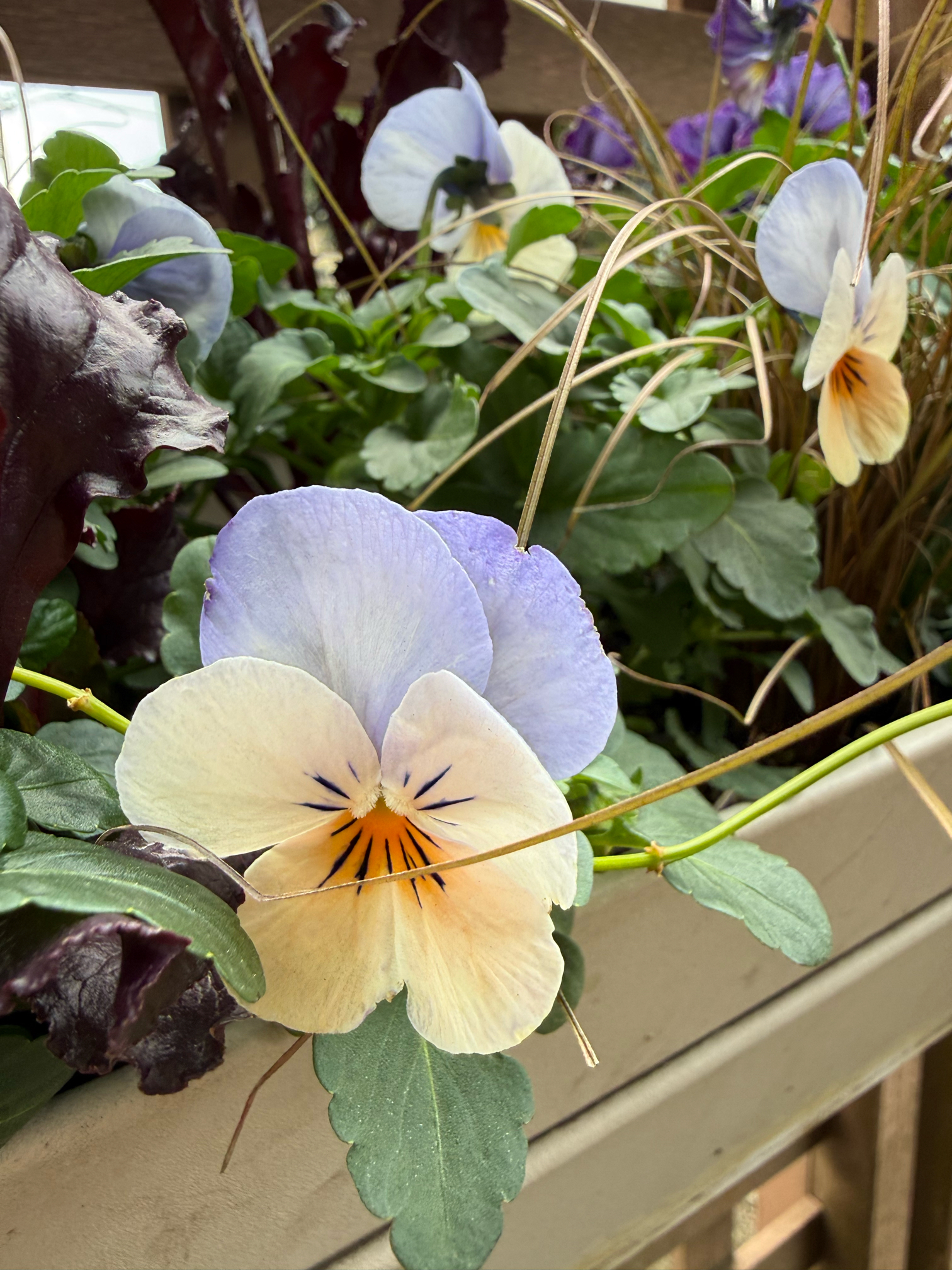 45センチプランターにビオラ3株とリーフの寄せ植え
