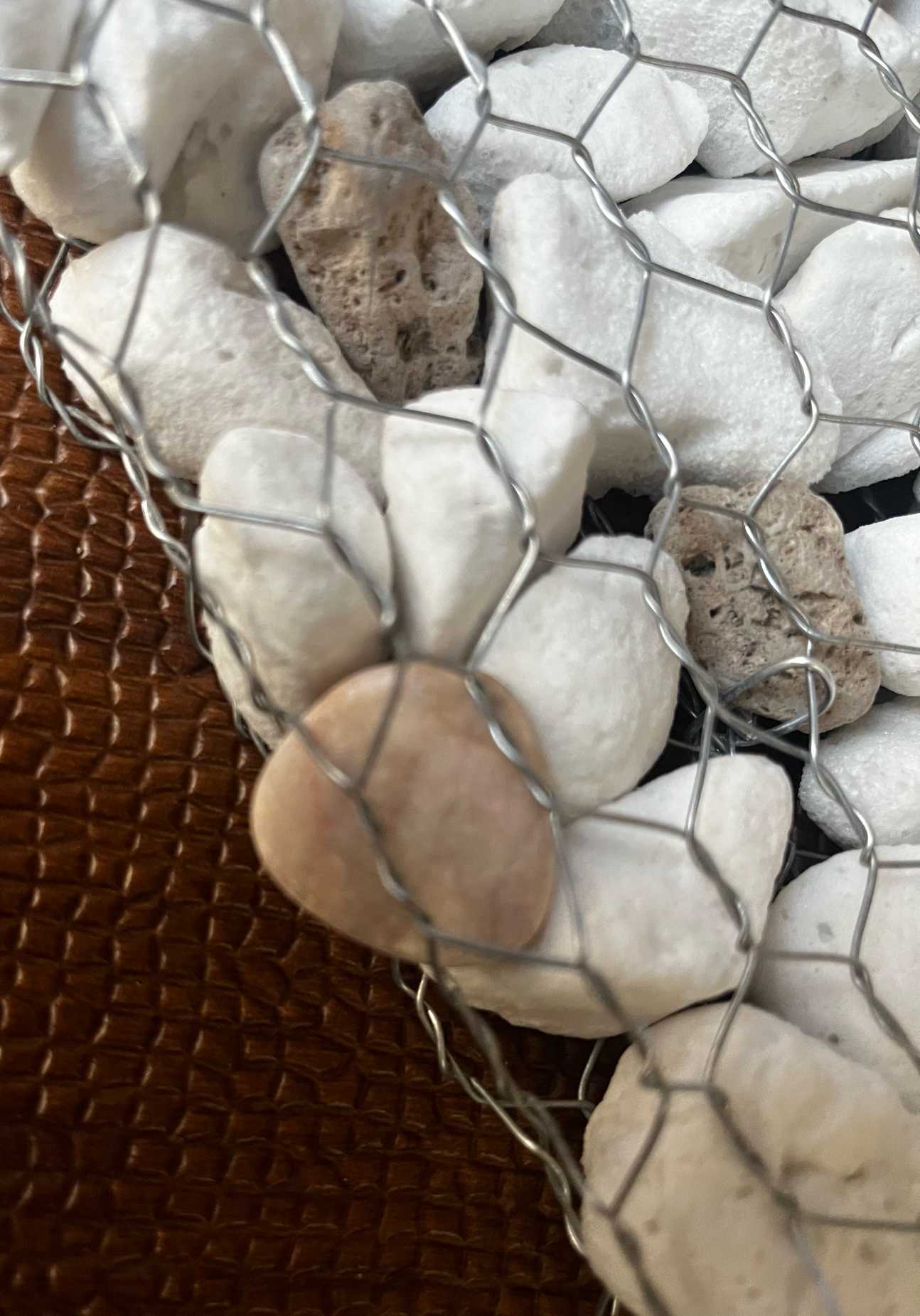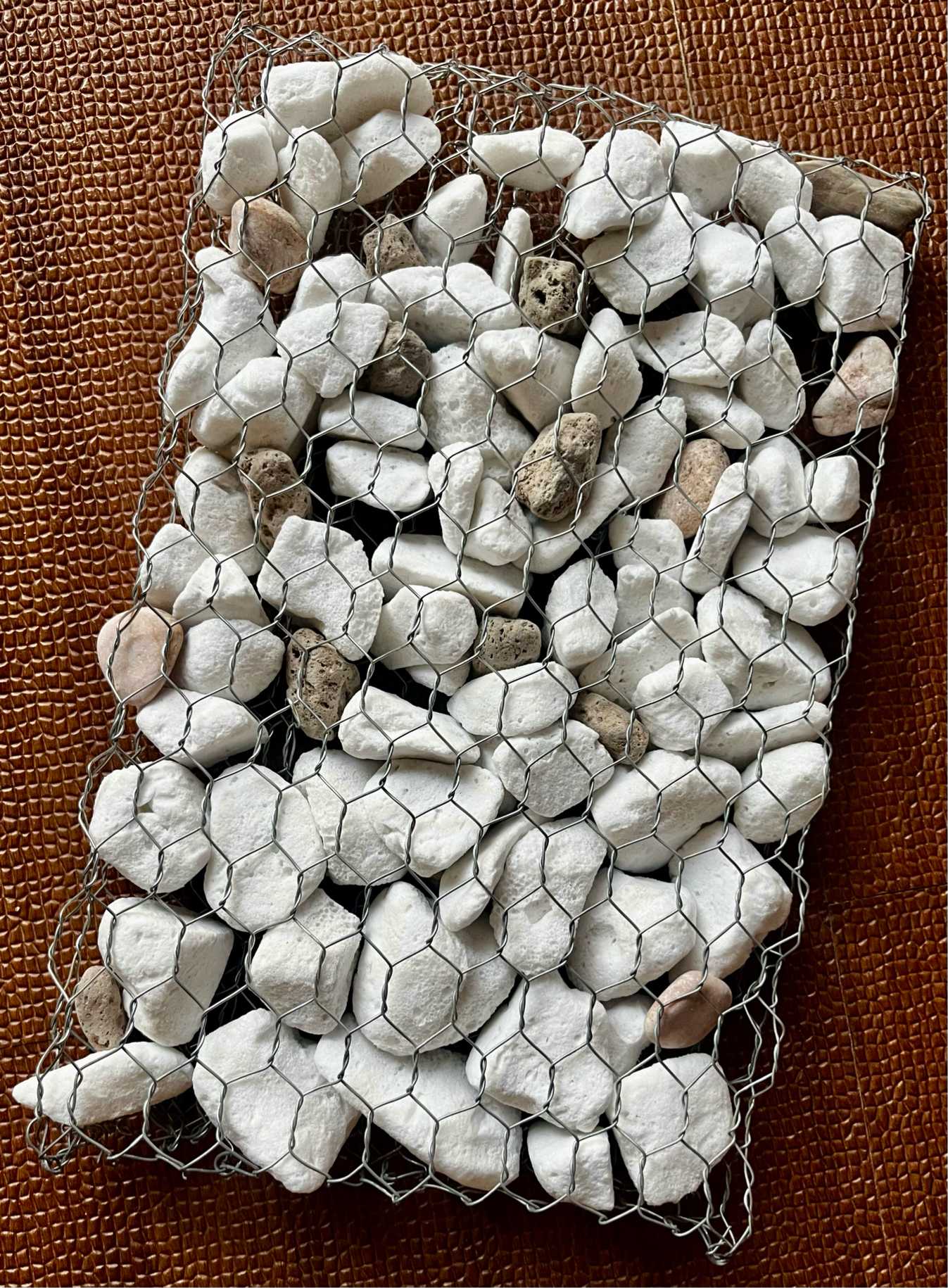 白だけではつまらないから、100均の大きめのものや、ホントの石もいくつか混ぜる。