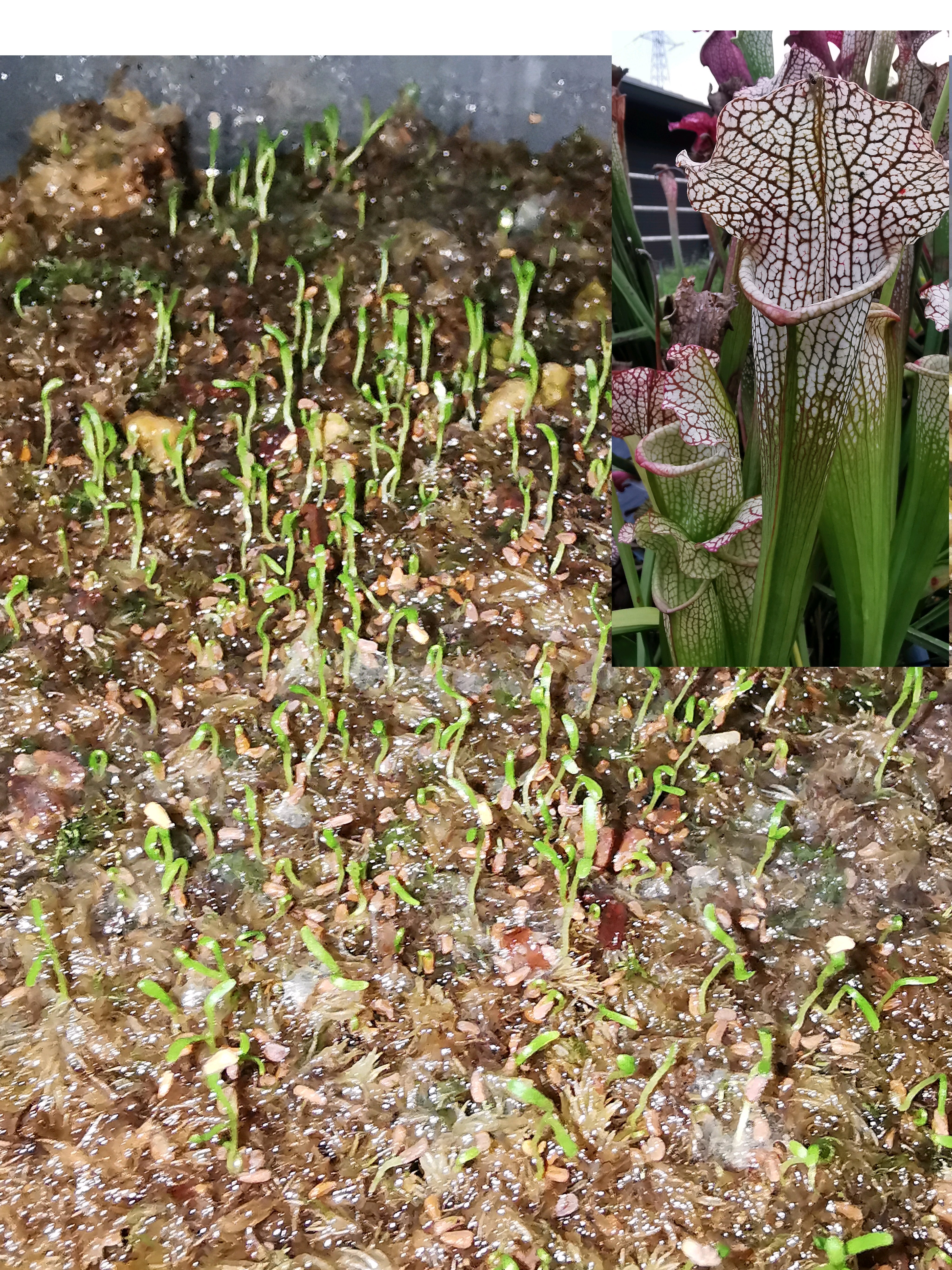 の実生です 種子の数も少なかったから発芽数も少なく見えますがレアなサラセニアです!