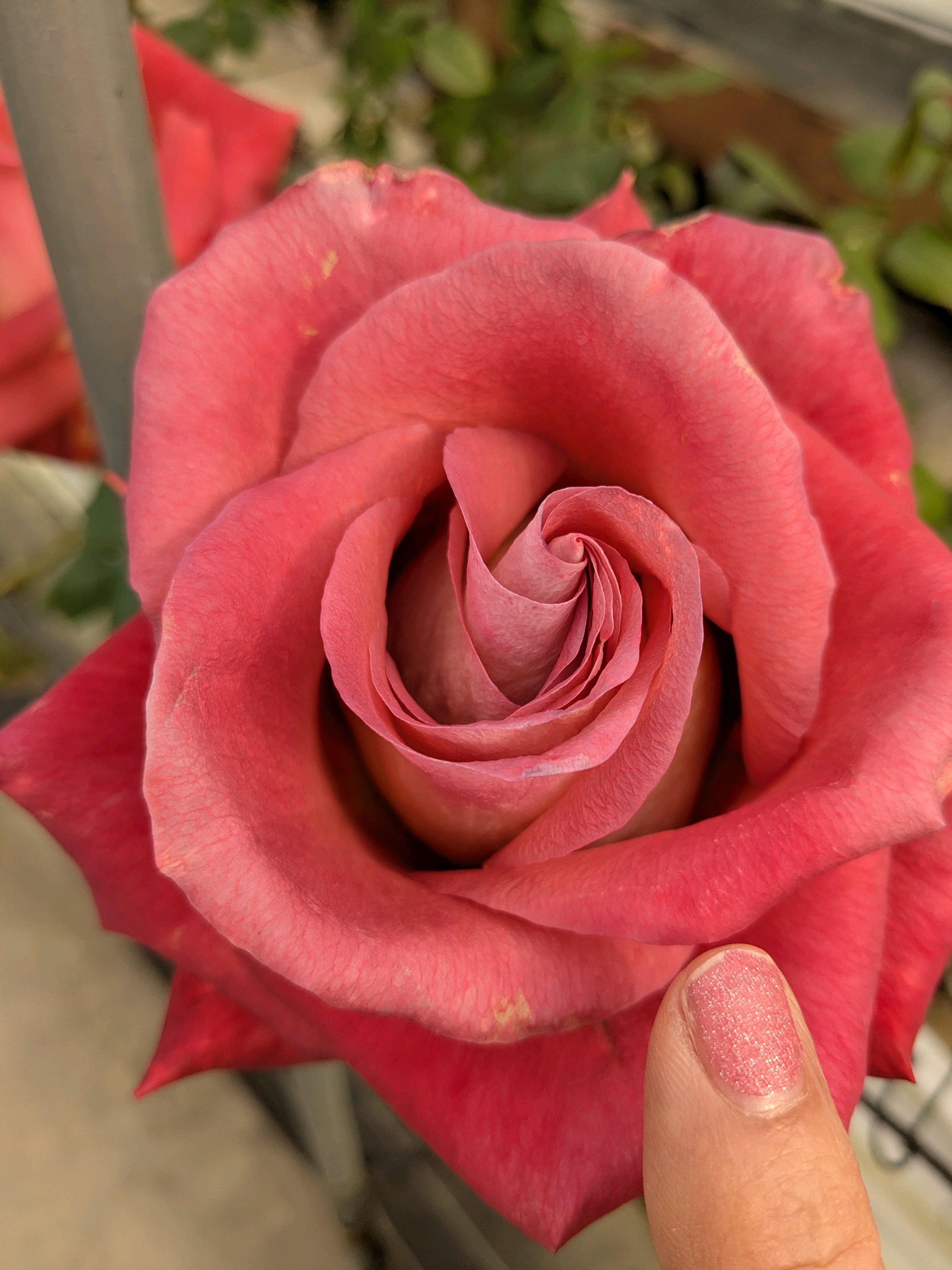 切り花ハウスの中は色とりどりの薔薇 ネイルと同じ色🤗
