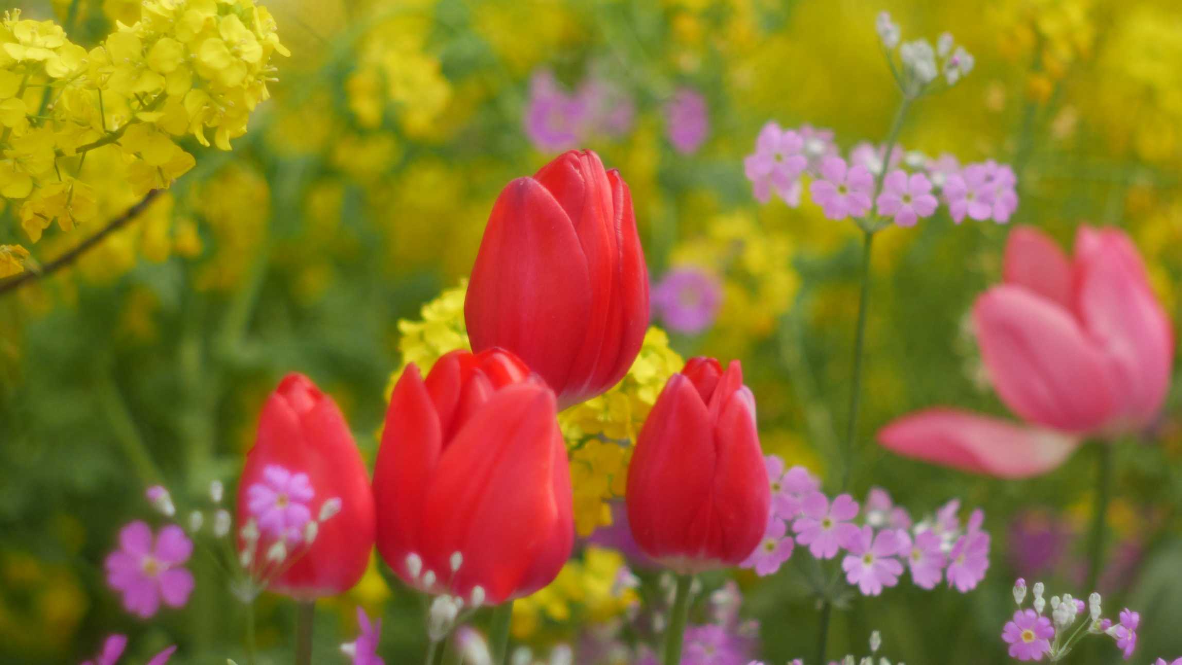 花数は少ないですが、他の花と合わさる事でチューリップ🌷の色が引き立つ感じがします。