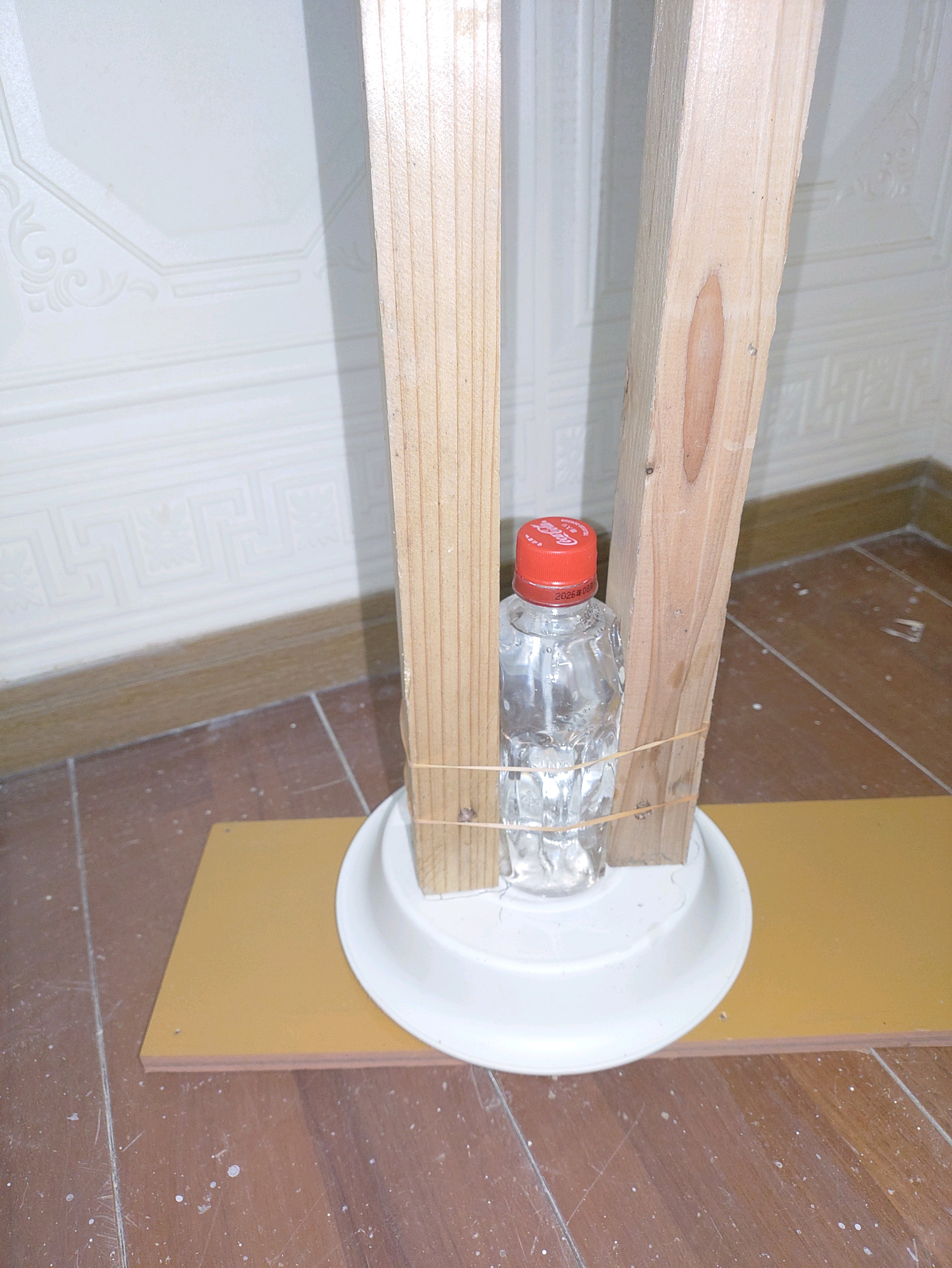 コラムの下になる部分にペットボトルに水を入れて輪ゴムで固定