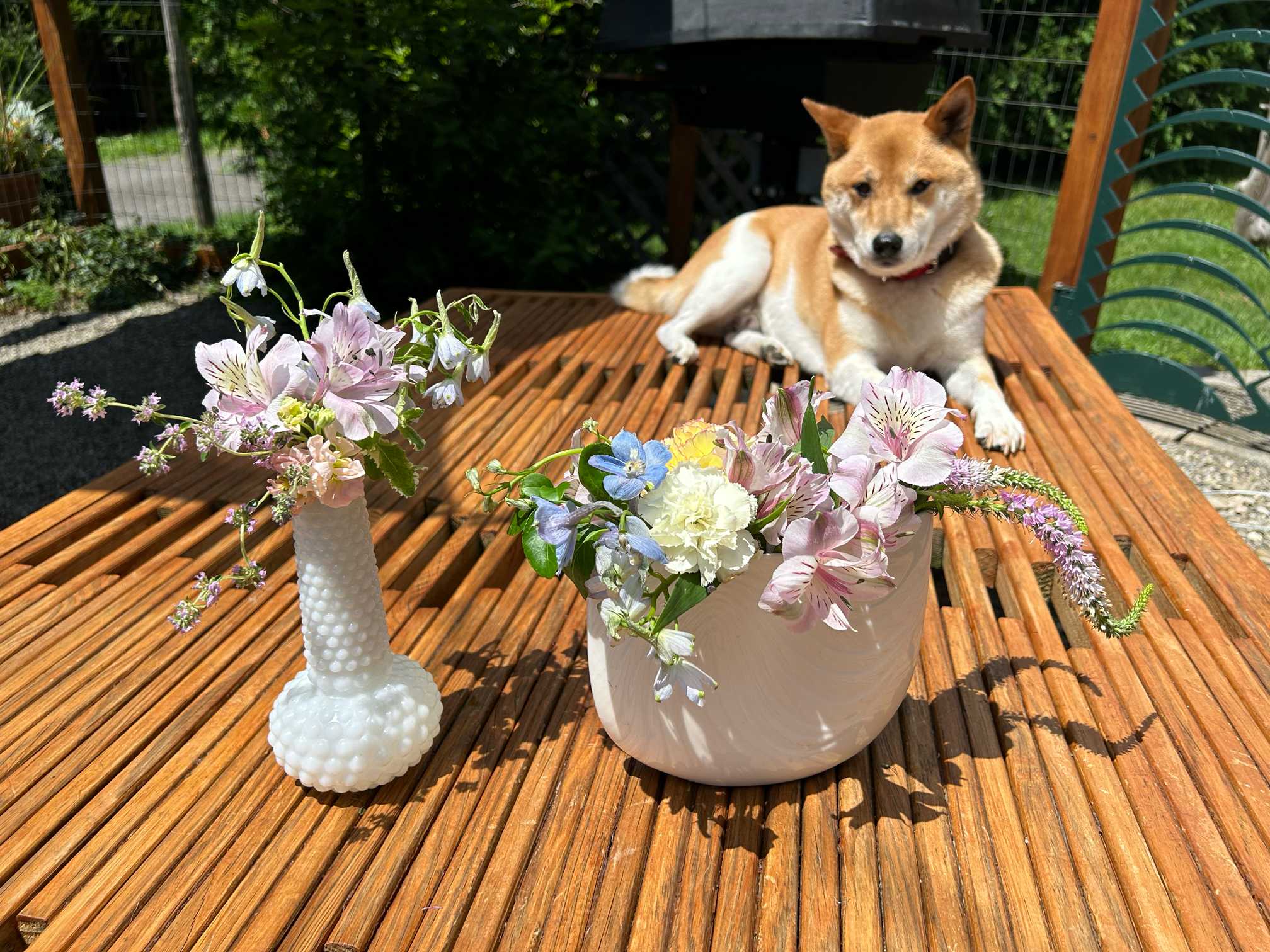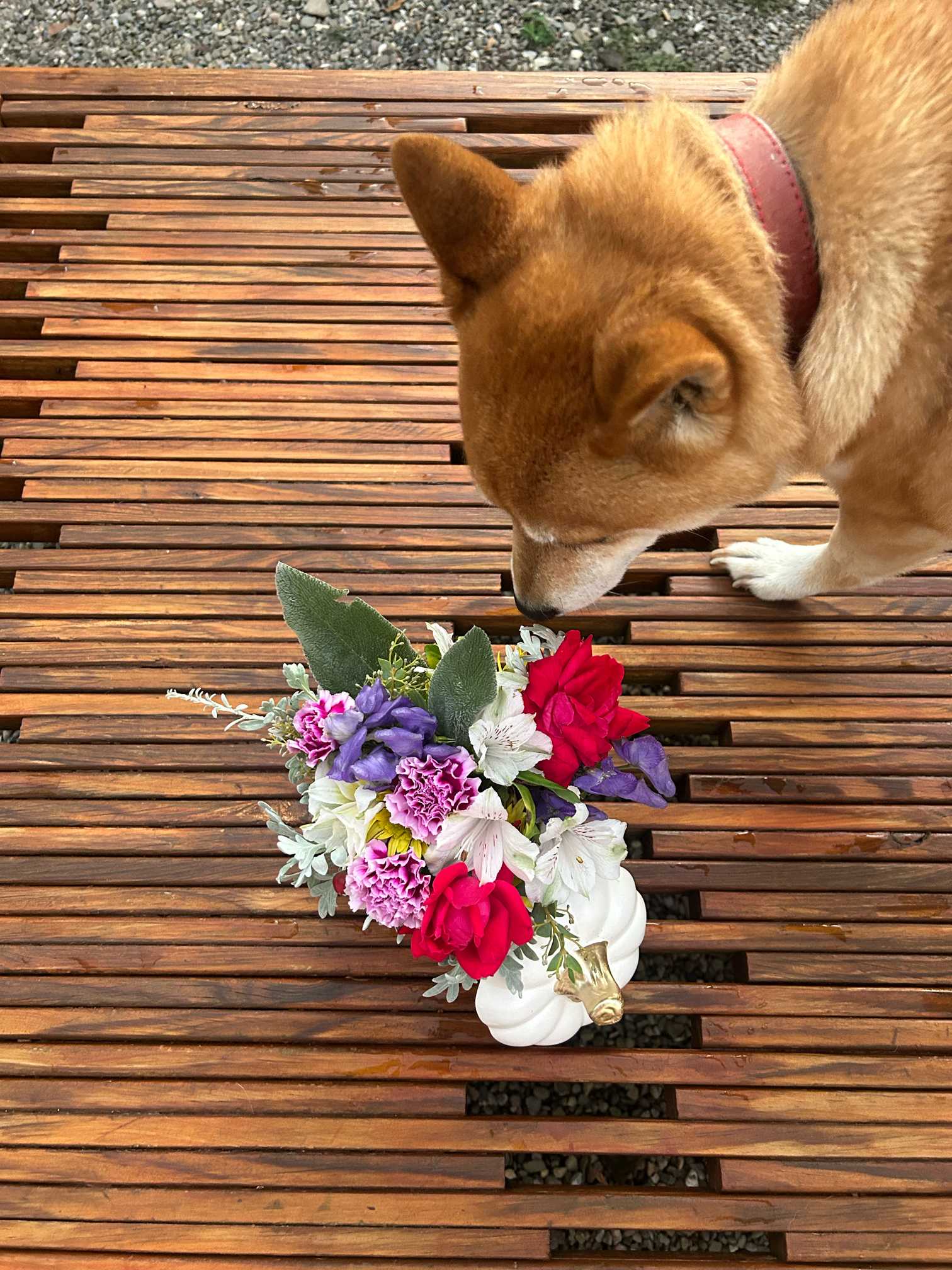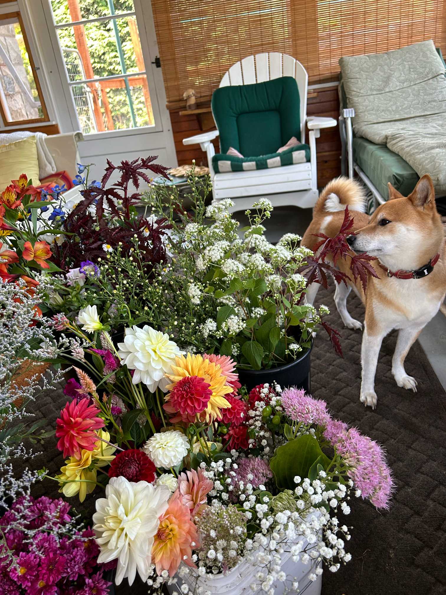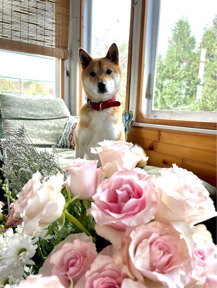 sasukemamaが好きなのはお花を生けること。ぼくはそのママを見守って、出来たお花や花材をチェックしてるよ。