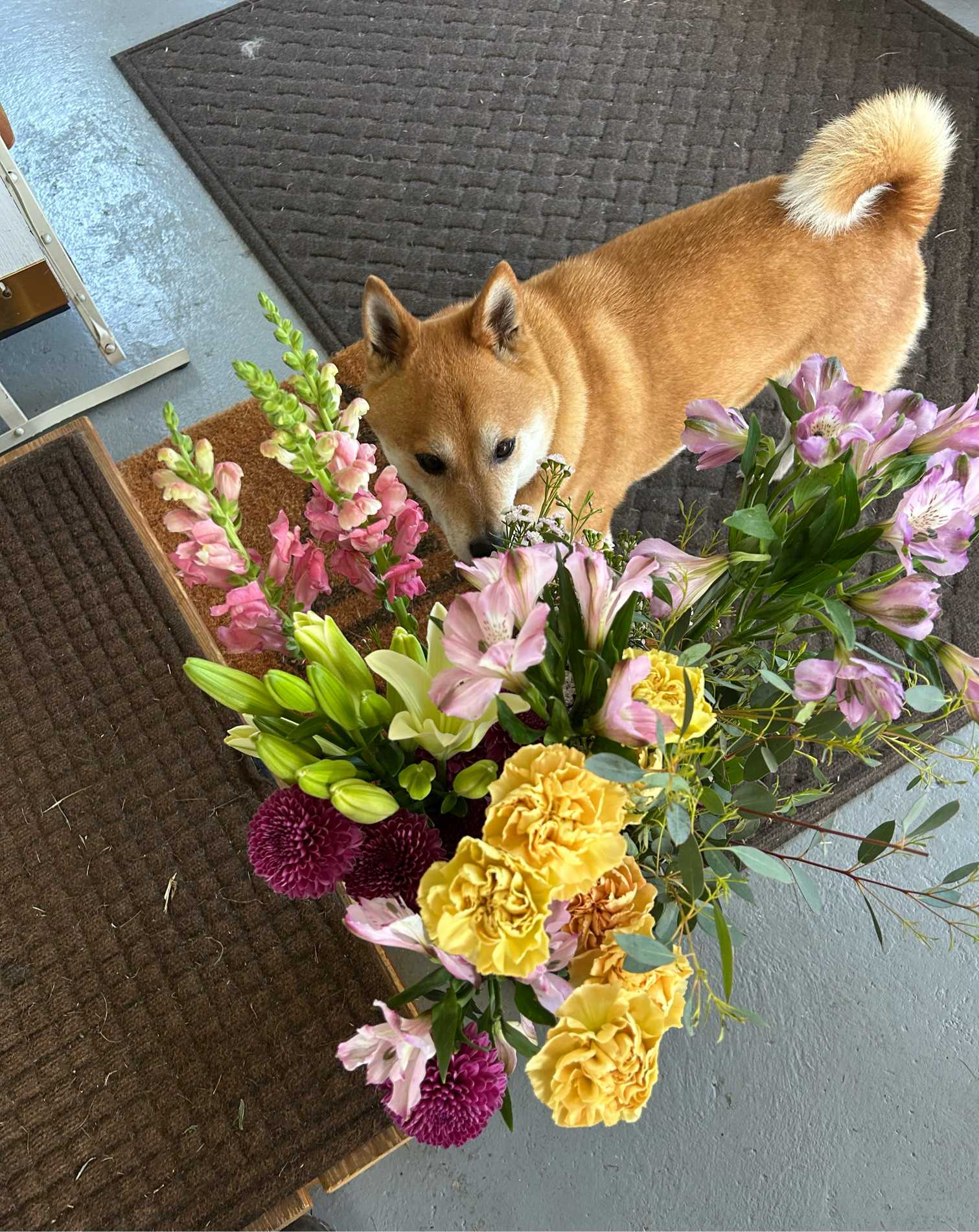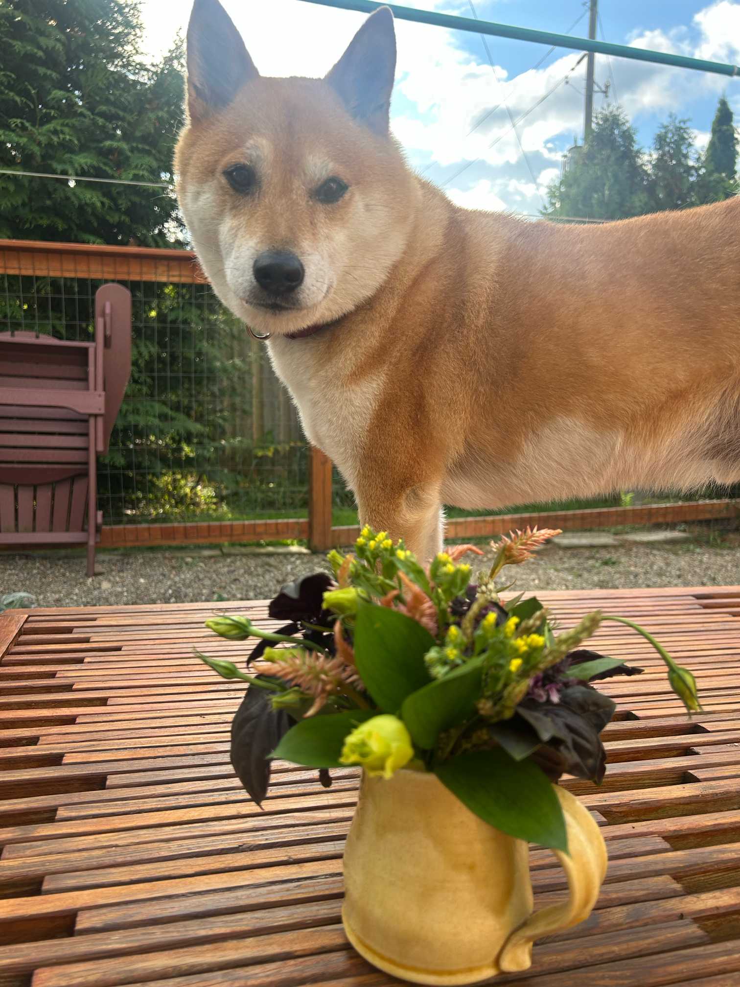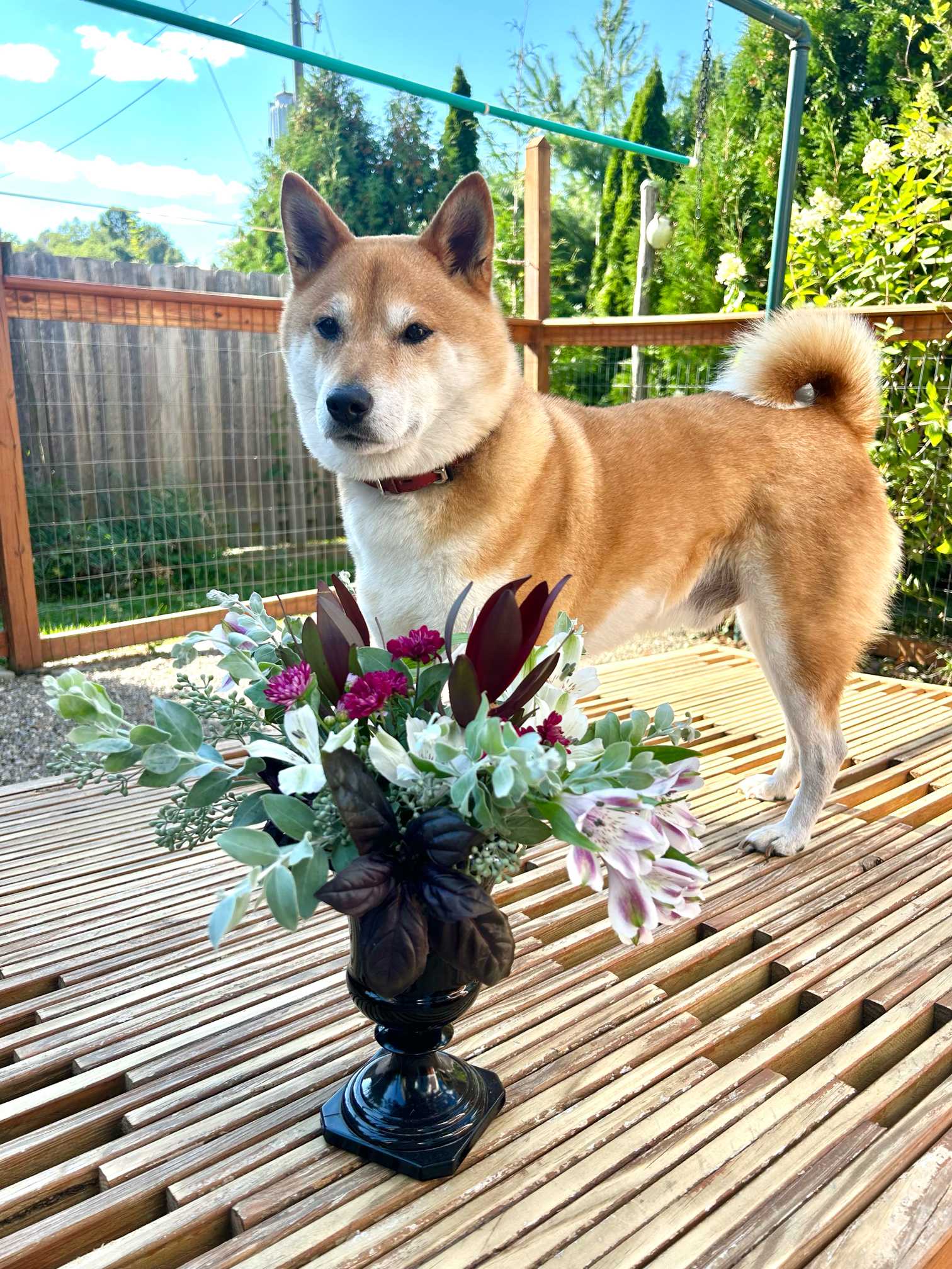 sasukemamaが好きなのはお花を生けること。ぼくはそのママを見守って、出来たお花や花材をチェックしてるよ。