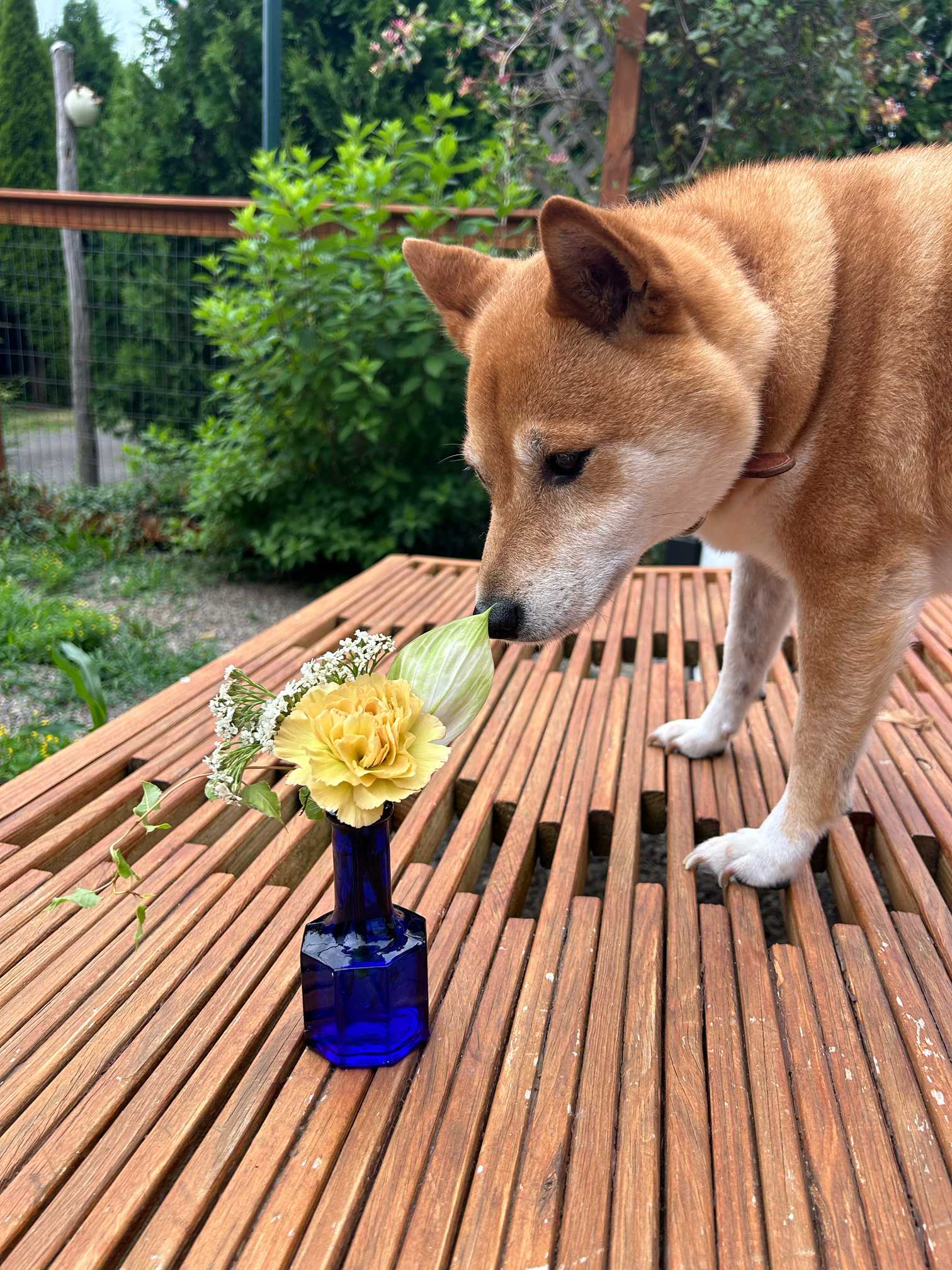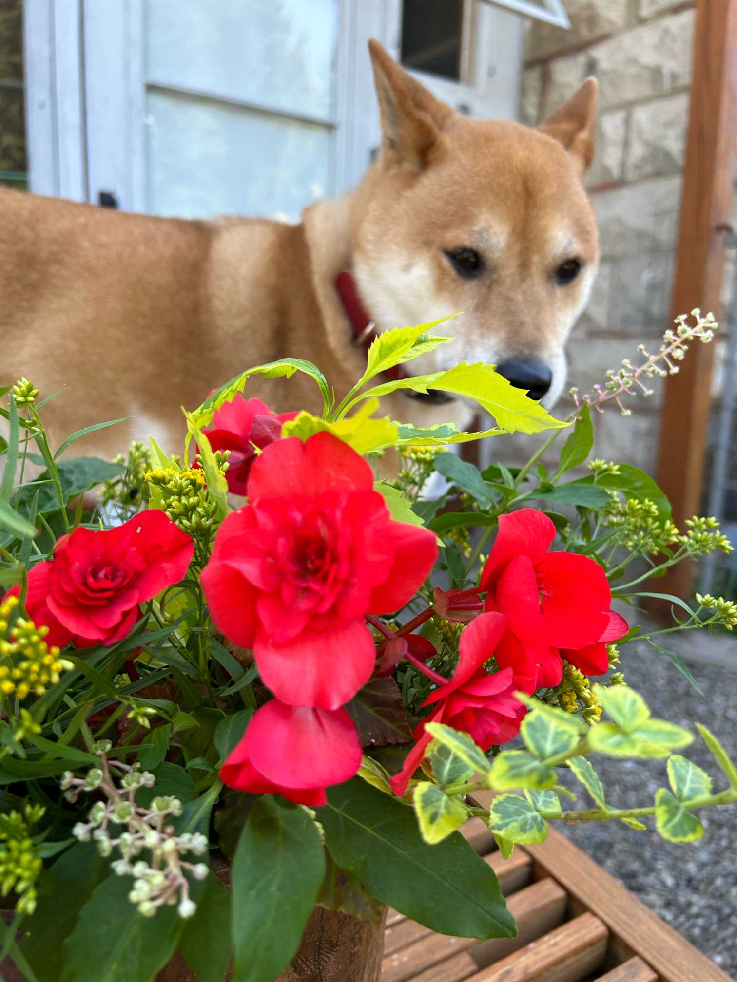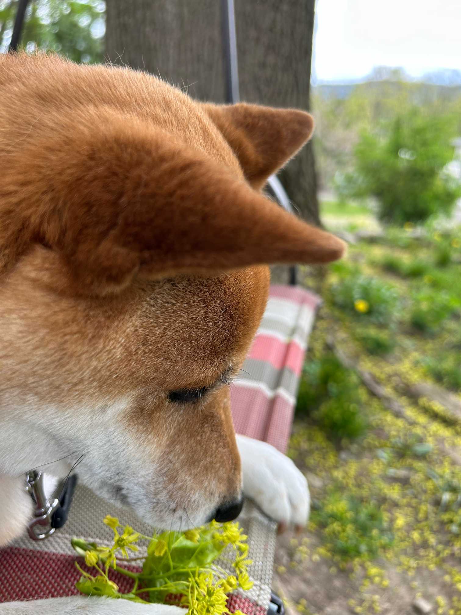 クン活でいつもお花をチェックするサスケ。犬と花の好きな人用、ゆるいみどりのまとめです。説明はありません。サスケのひとり言のみです