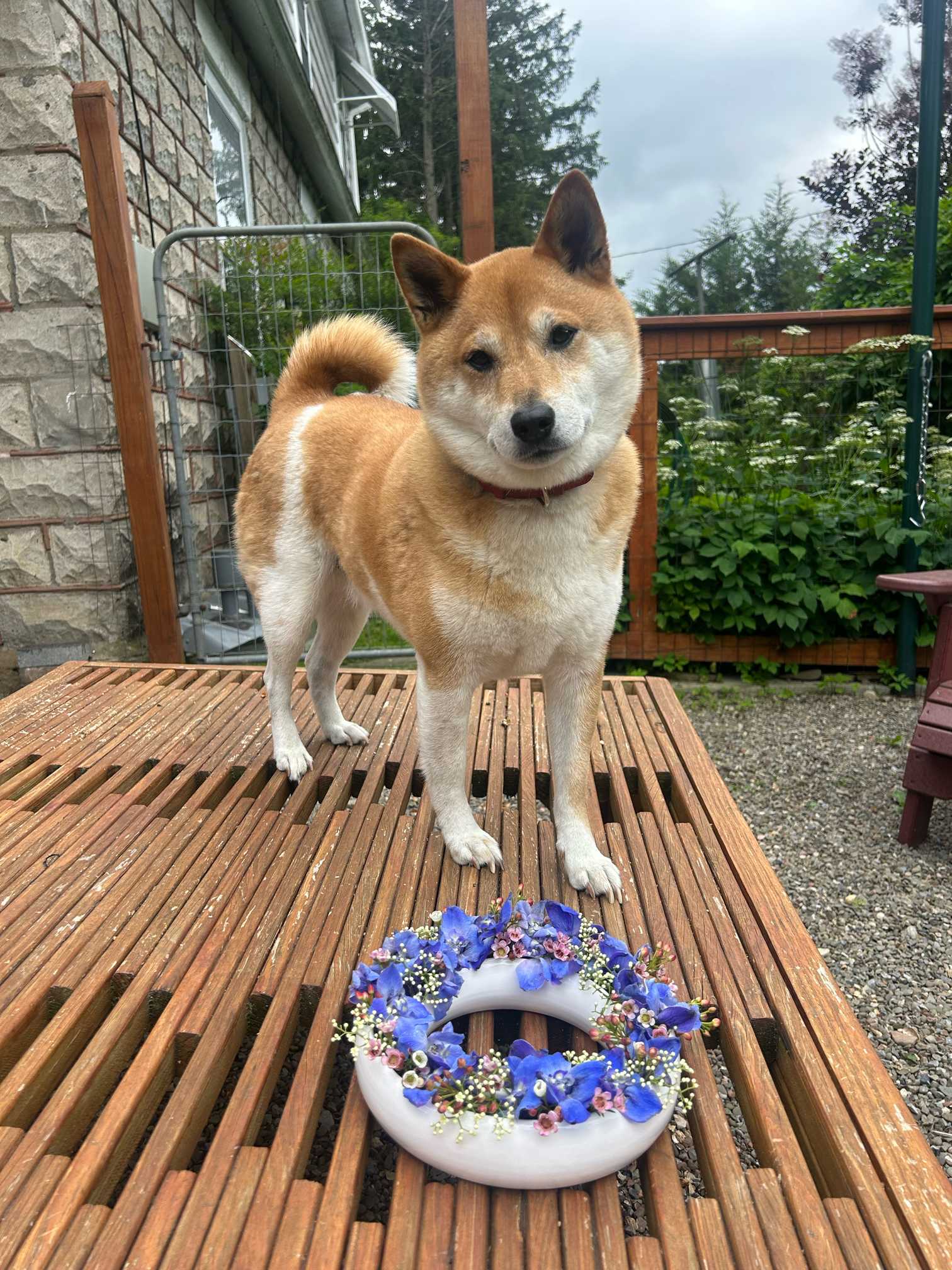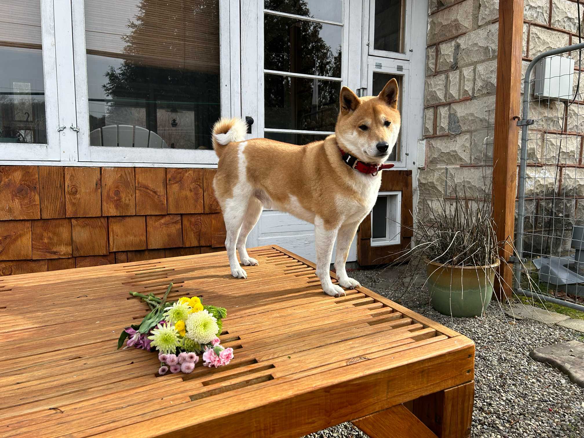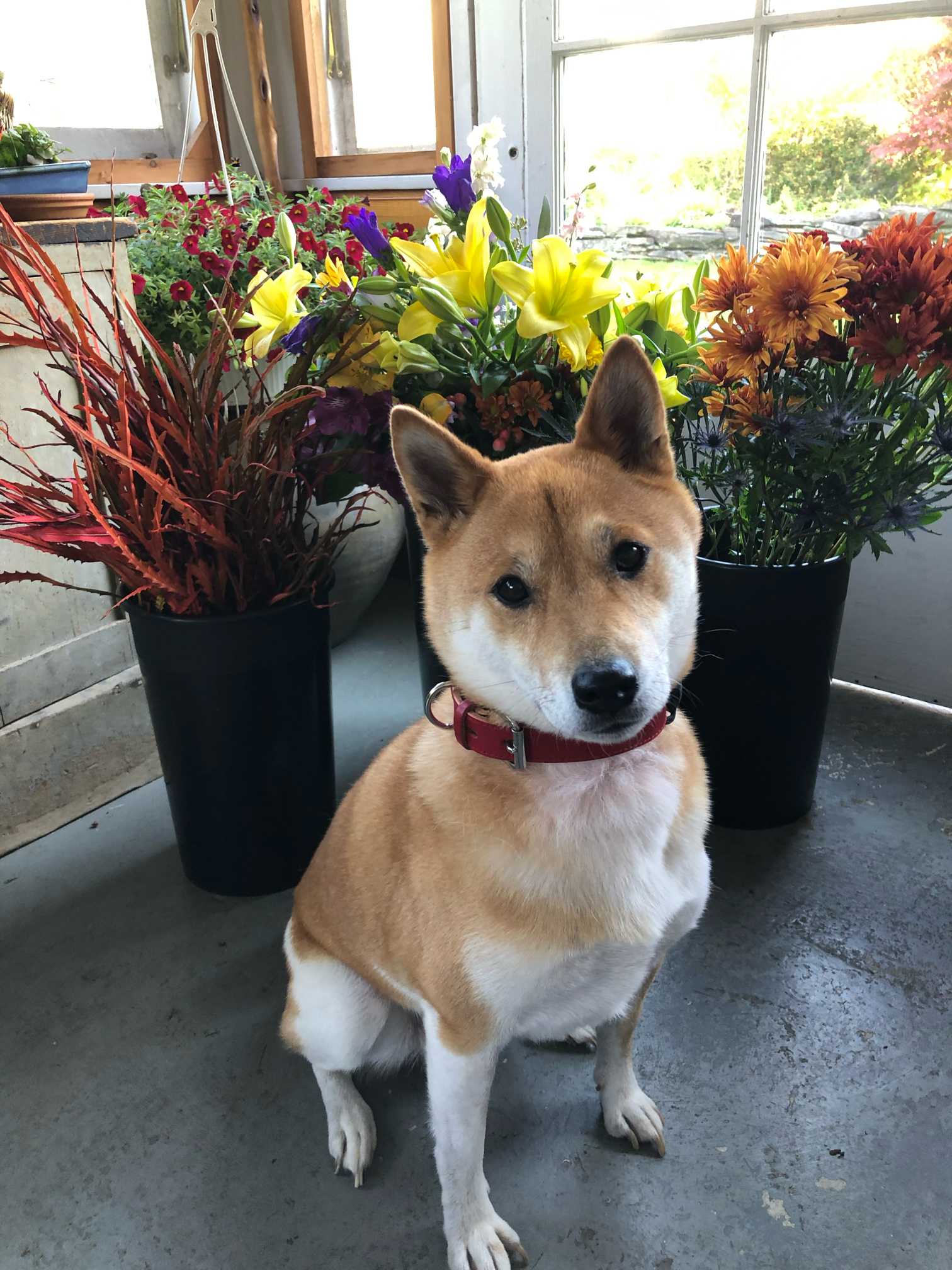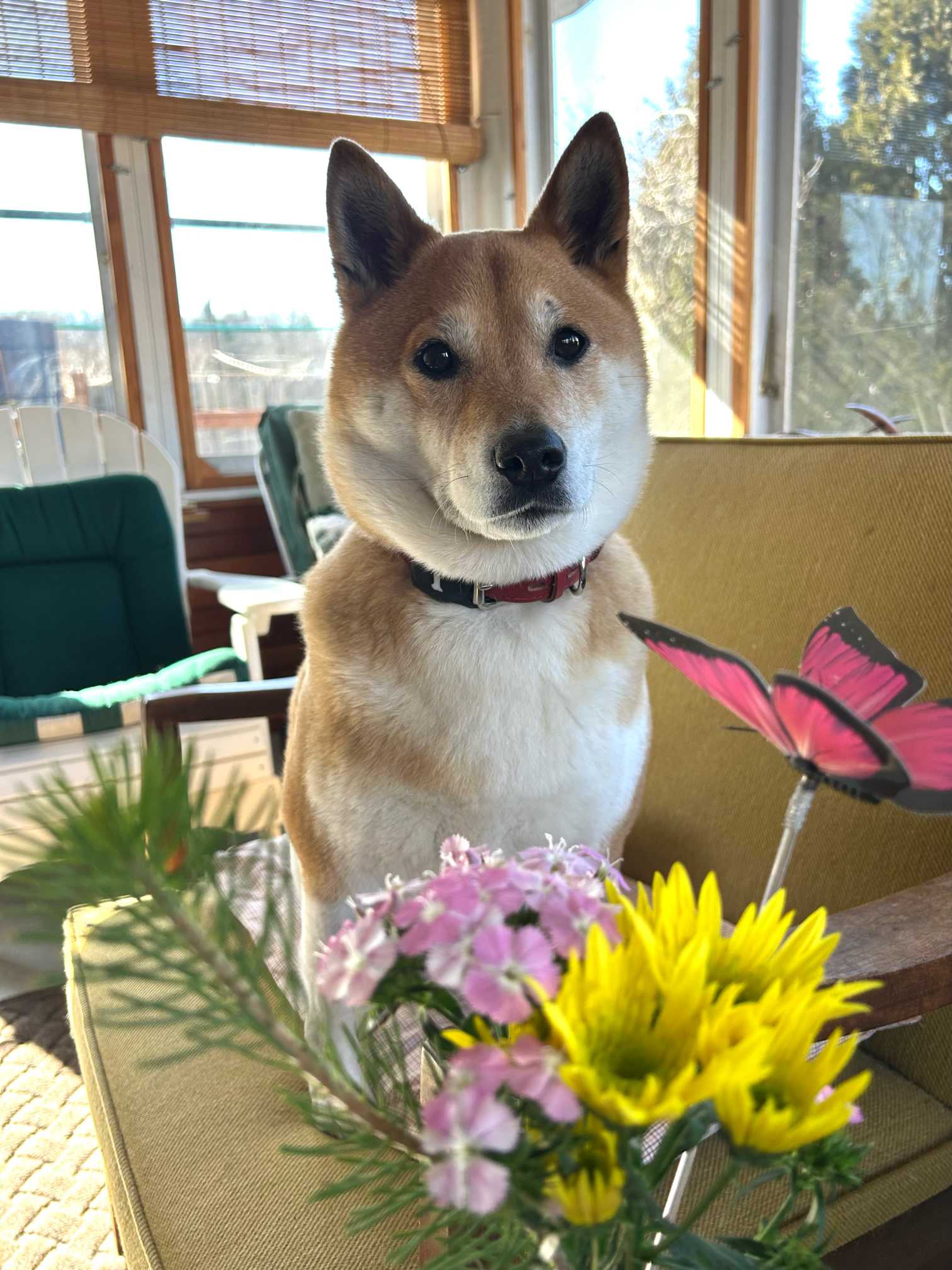 クン活でいつもお花をチェックするサスケ。犬と花の好きな人用、ゆるいみどりのまとめです。説明はありません。サスケのひとり言のみです