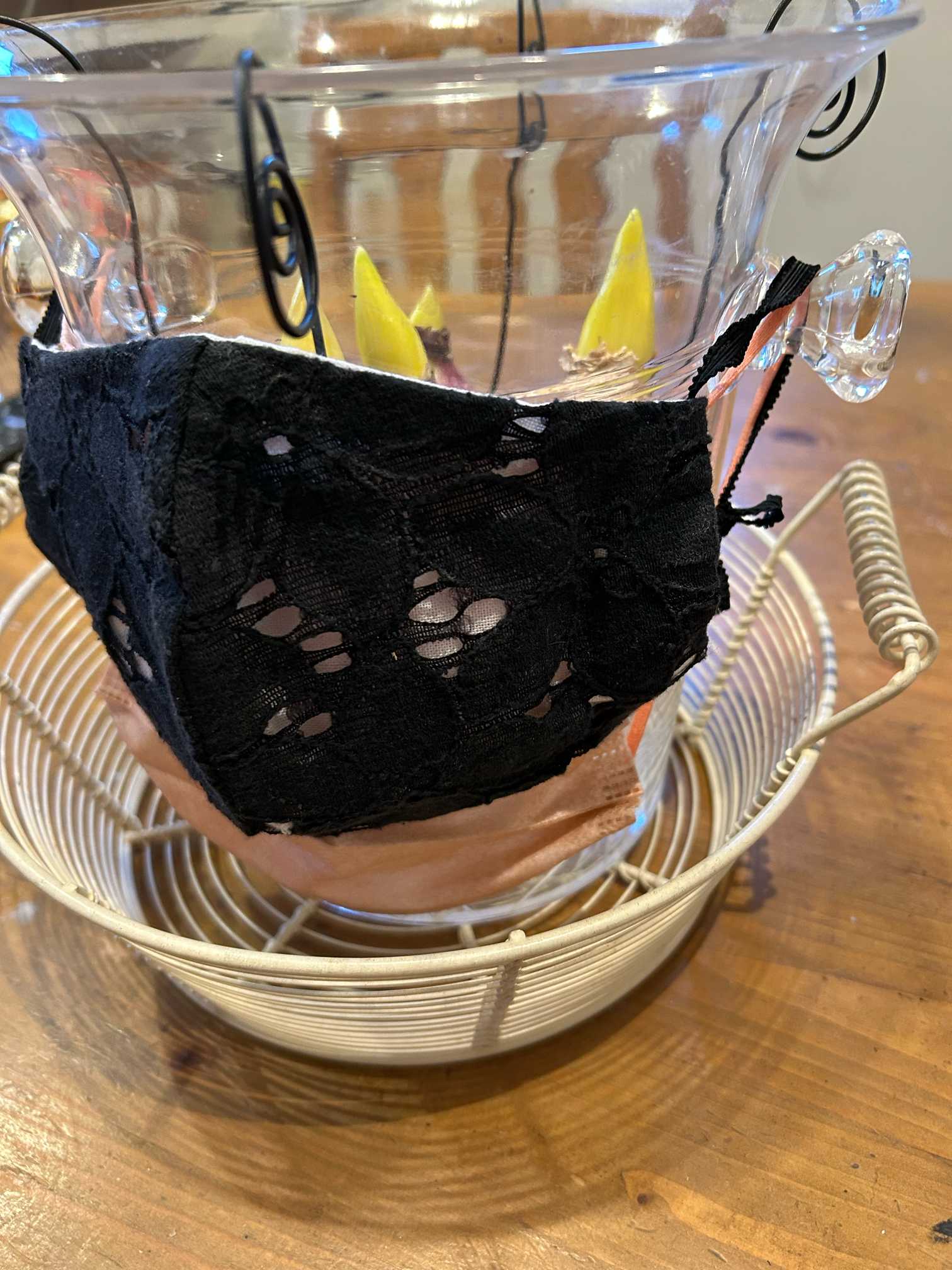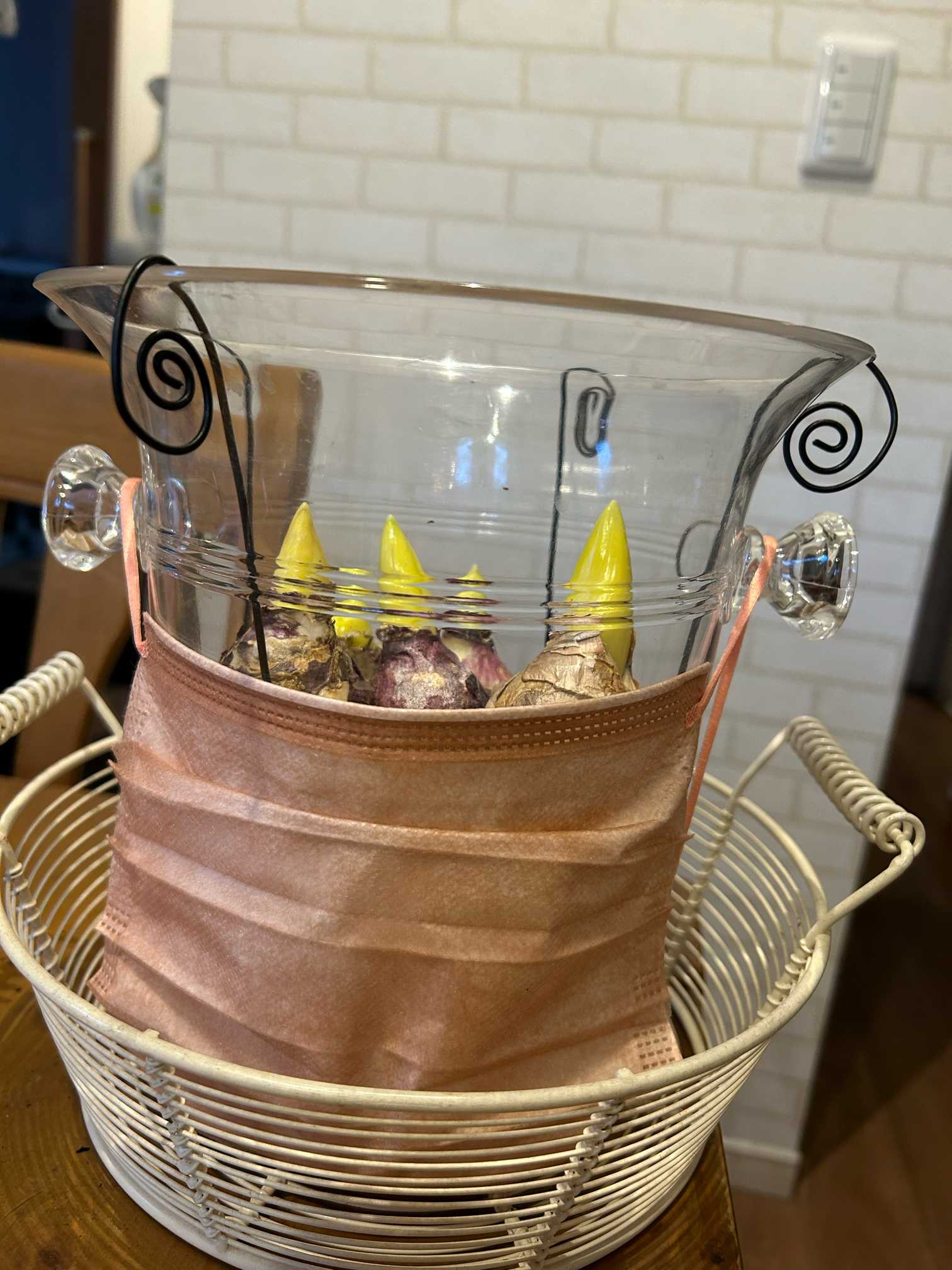 何かで遮ると良いとお聞きしてワインクーラーの取っ手にマスクを着けてあげました😷
