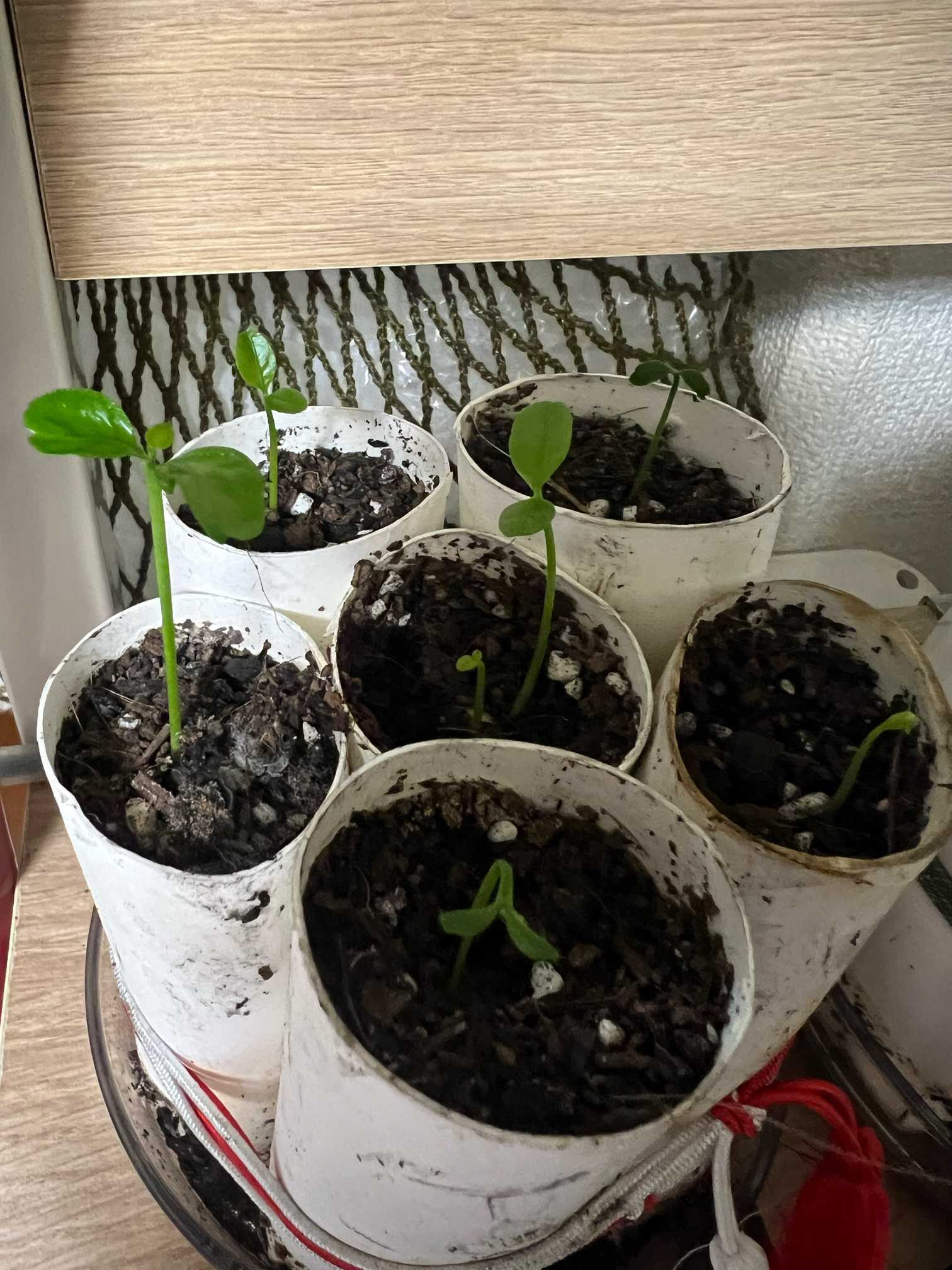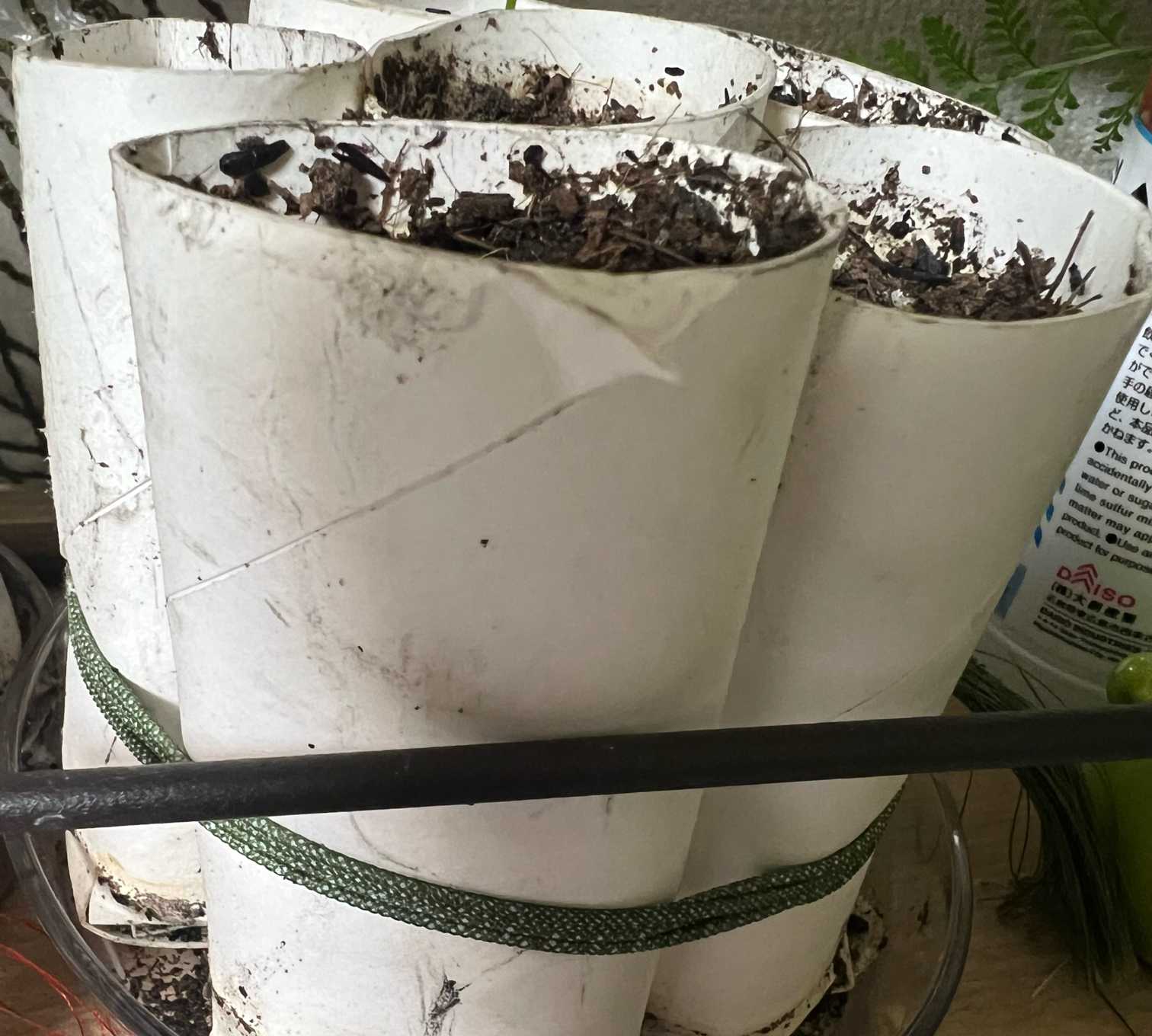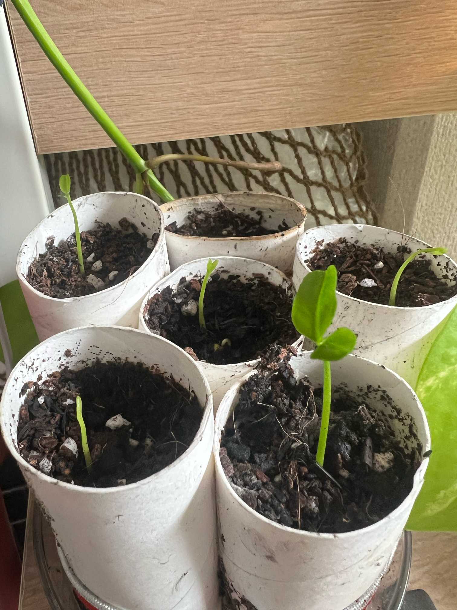 発芽したので、トイレットペーパーの芯を使って植えてみました😆