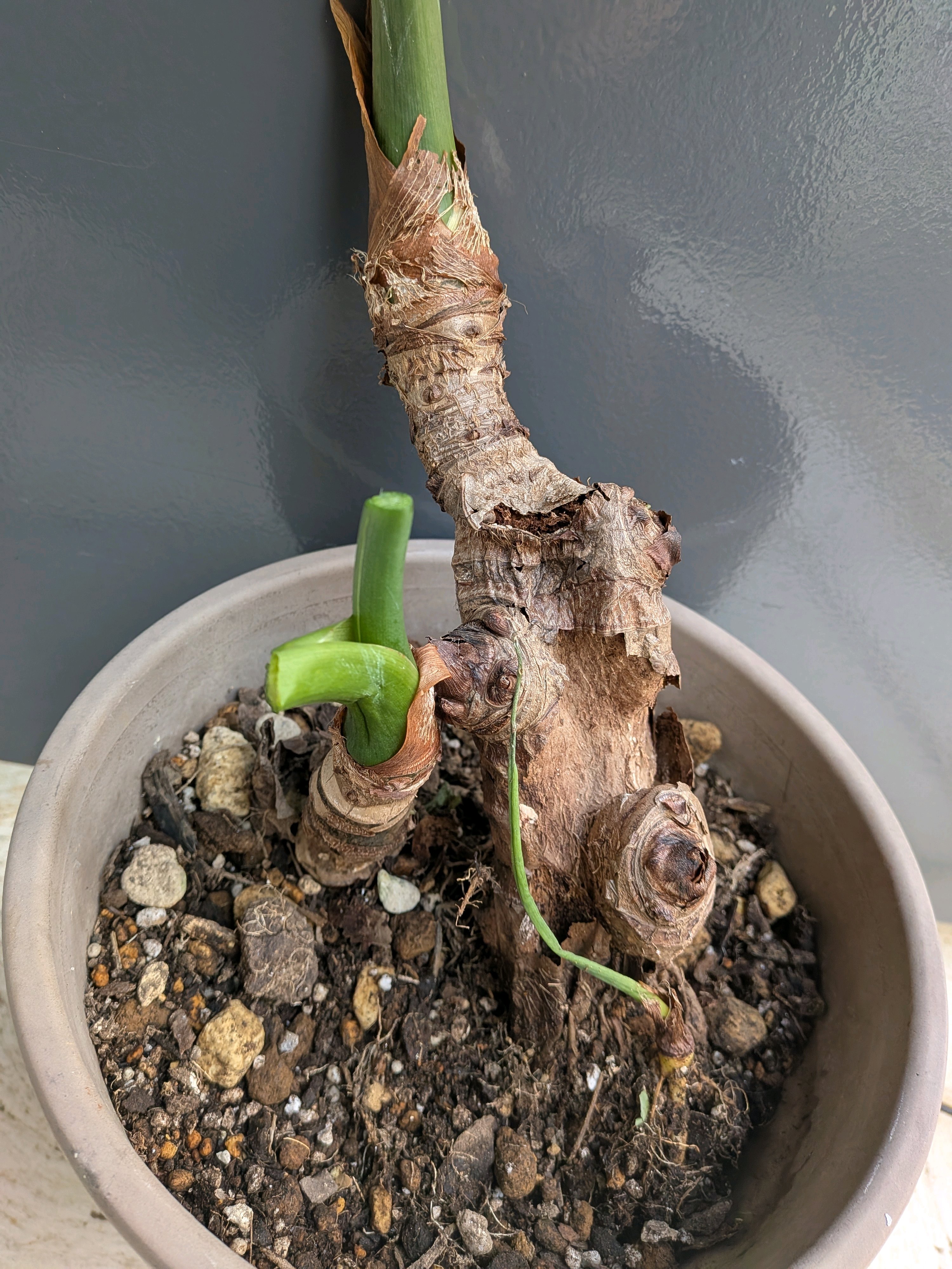 秋 いつまでも水やりをしていたので、イモの部分が腐っていましたが、乾いて復活。