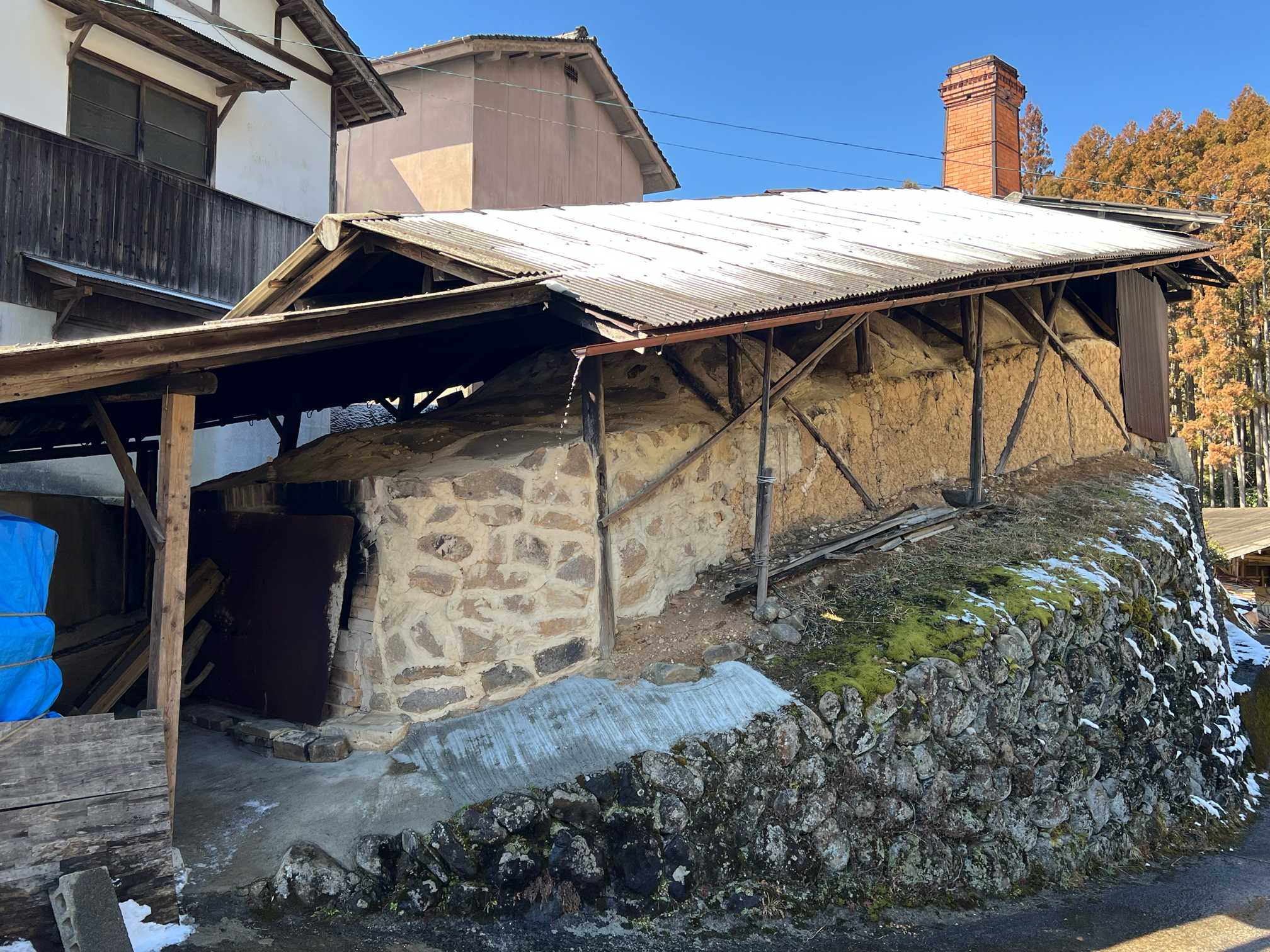 土を叩いているところ。音と登り窯の木を焚べる匂いがたまりません