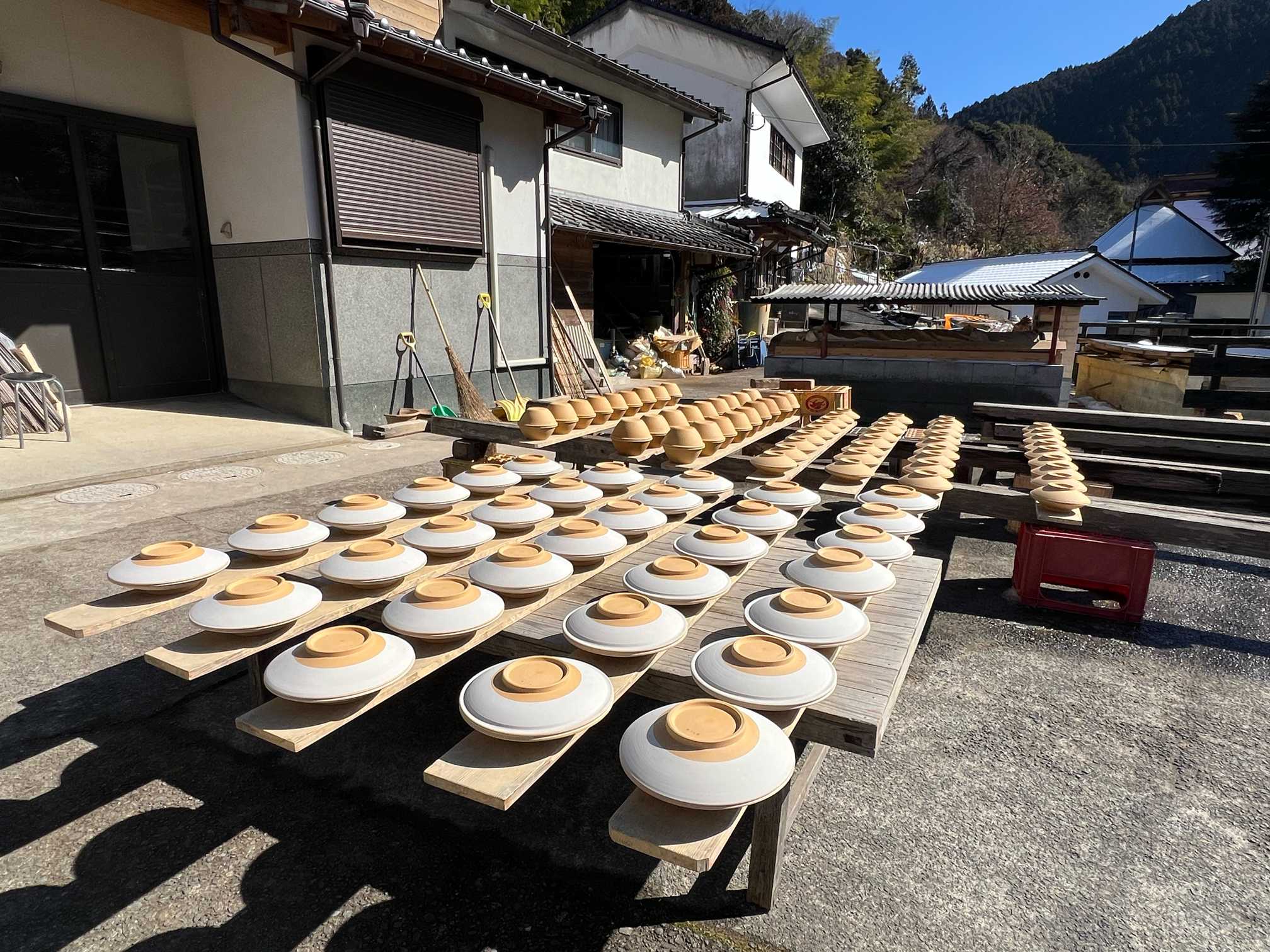 翌日は福岡の仲良しと小鹿田(おんた)焼の里へ。バーナード・リーチも愛した窯元は薄化粧を施し私たちを迎えてくれました。やっぱ焼き物LOVE❤️