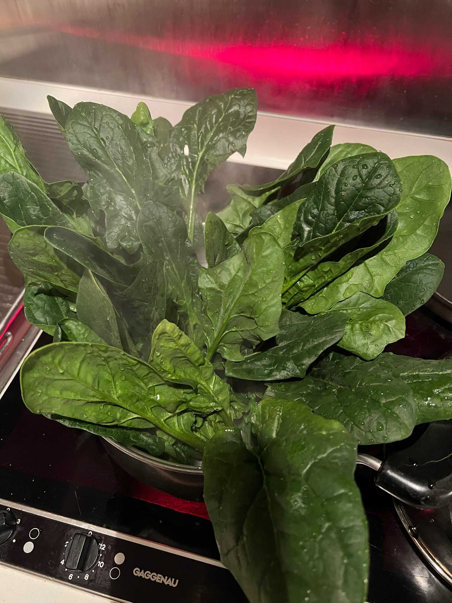 元気いっぱいのほうれん草を100円で購入。食い意地と2人連れで帰宅後そっこー茹でました