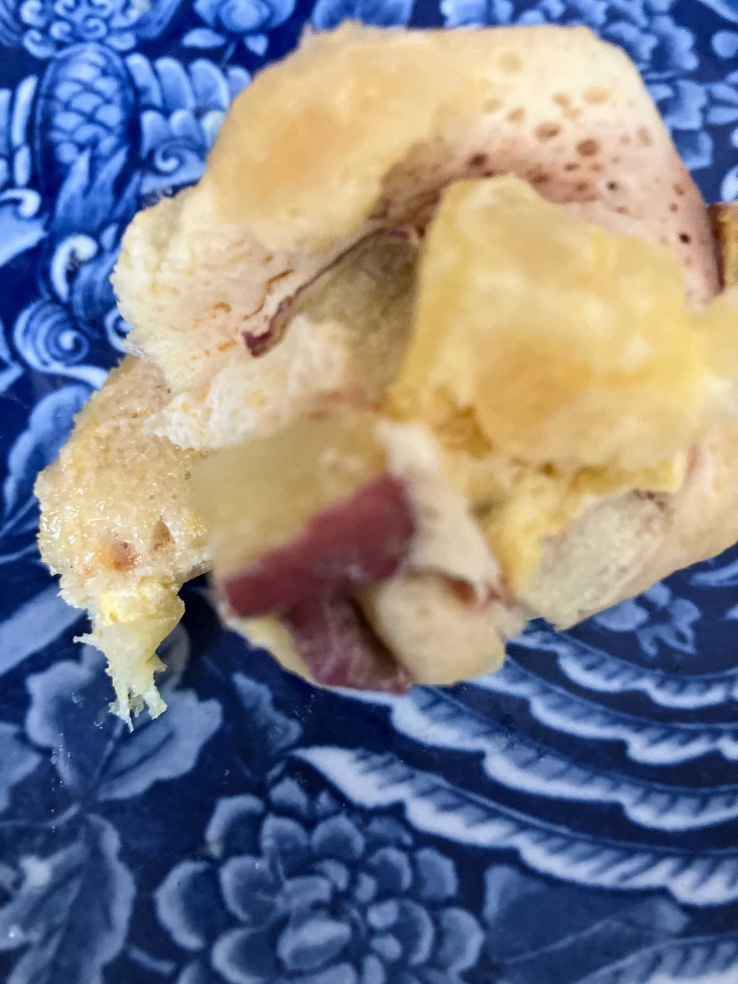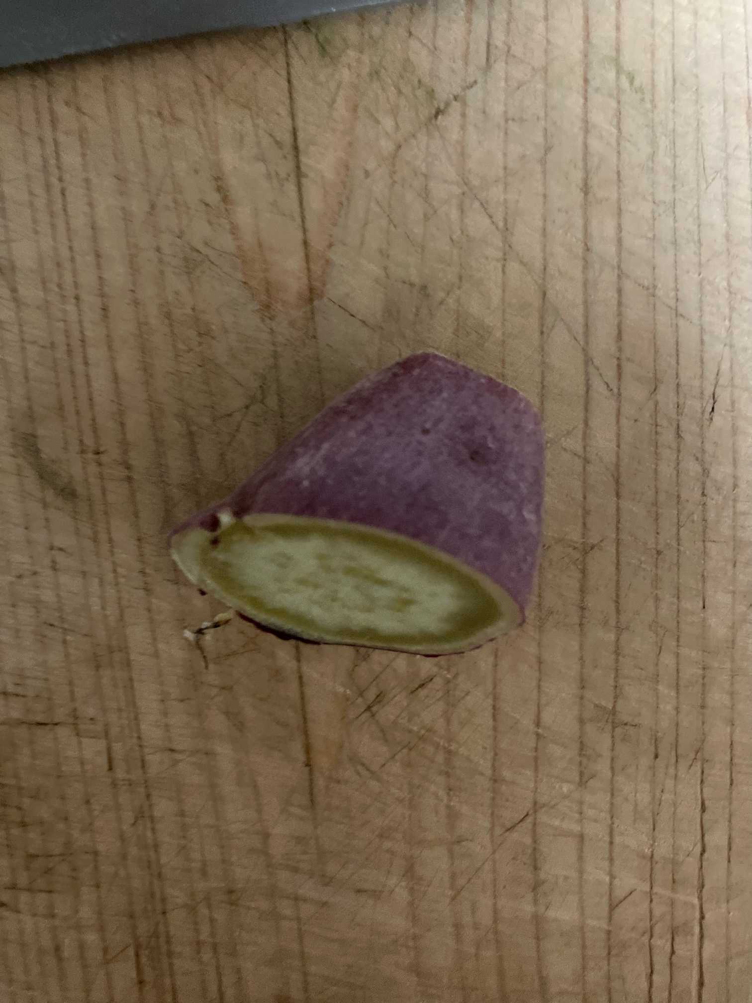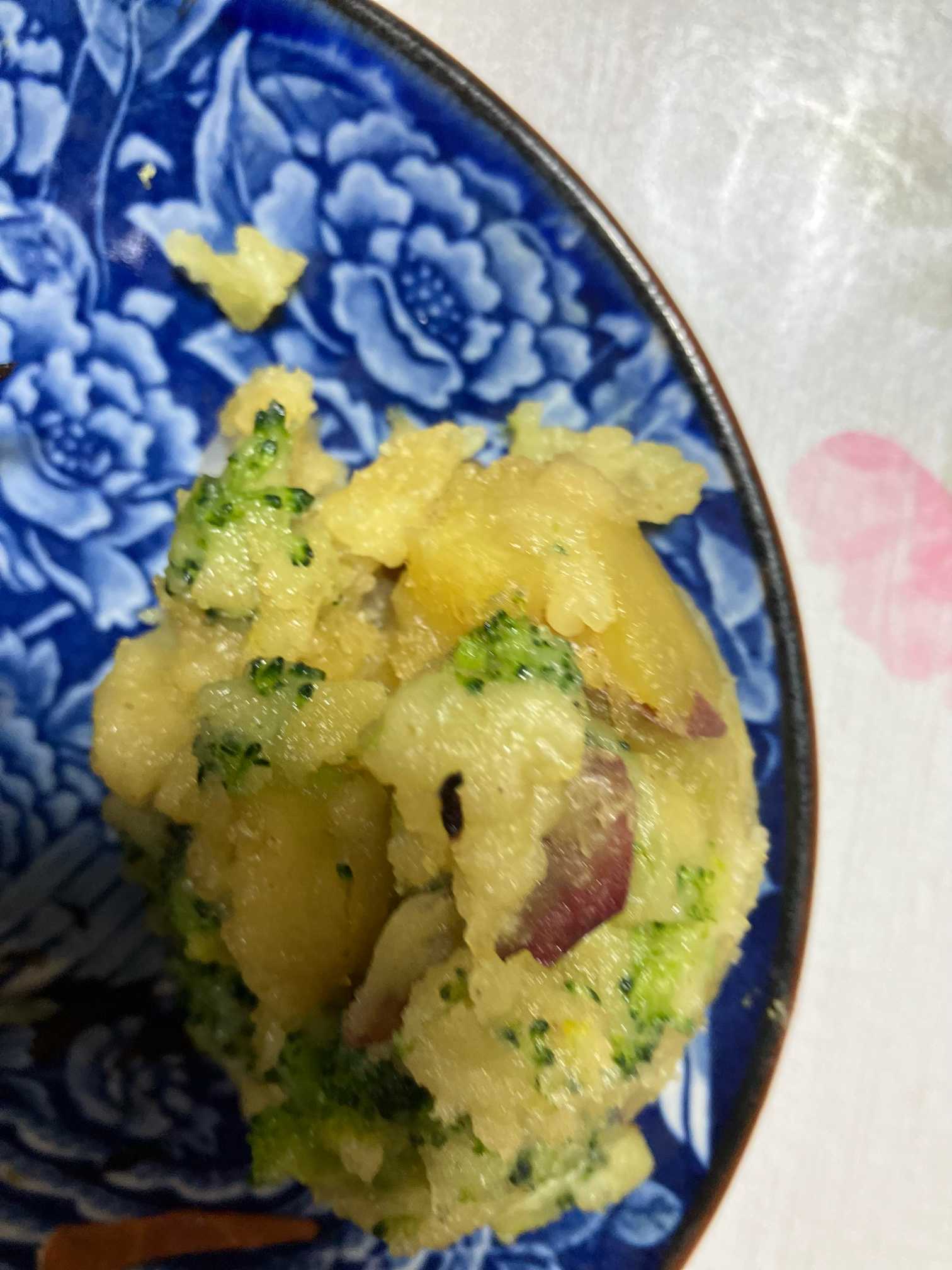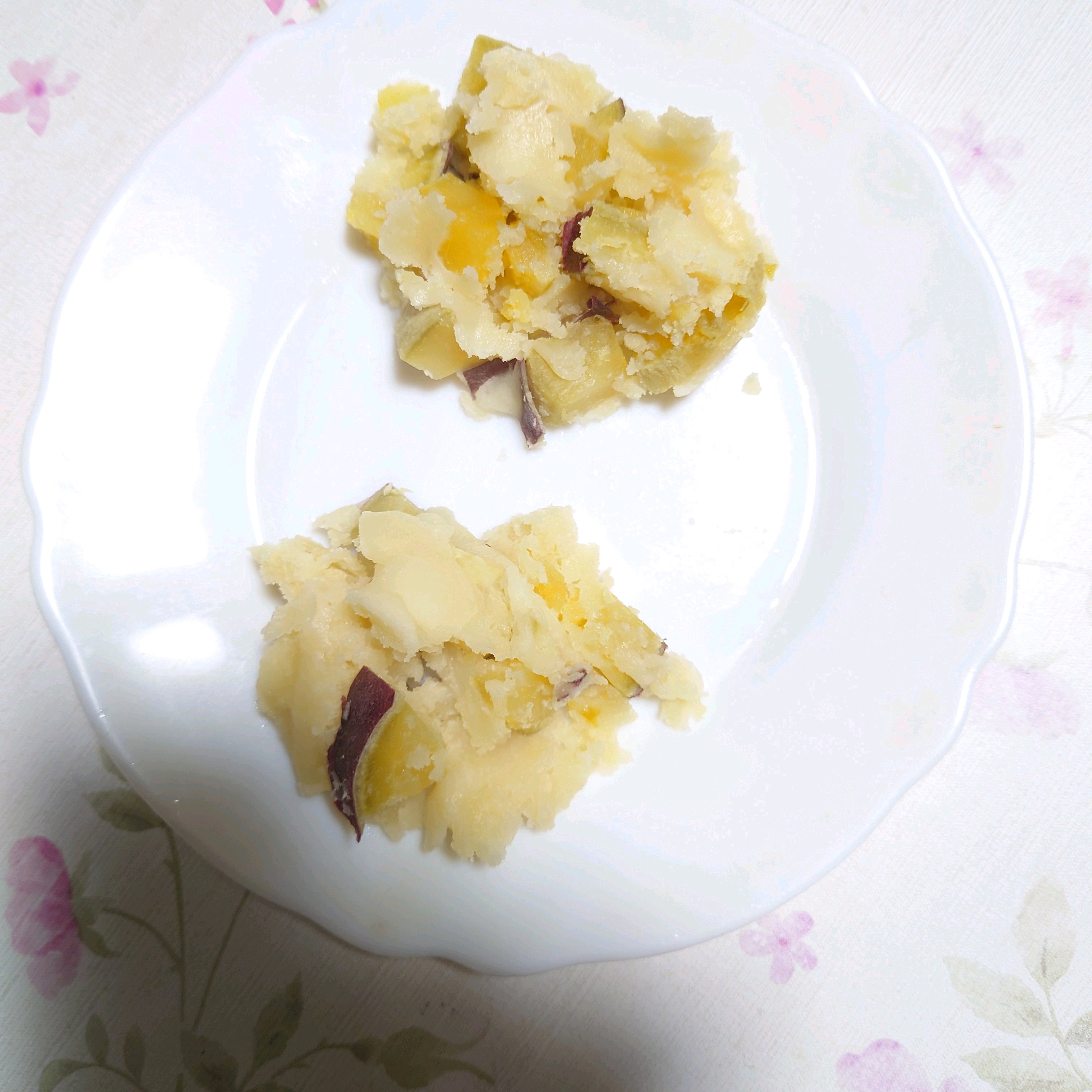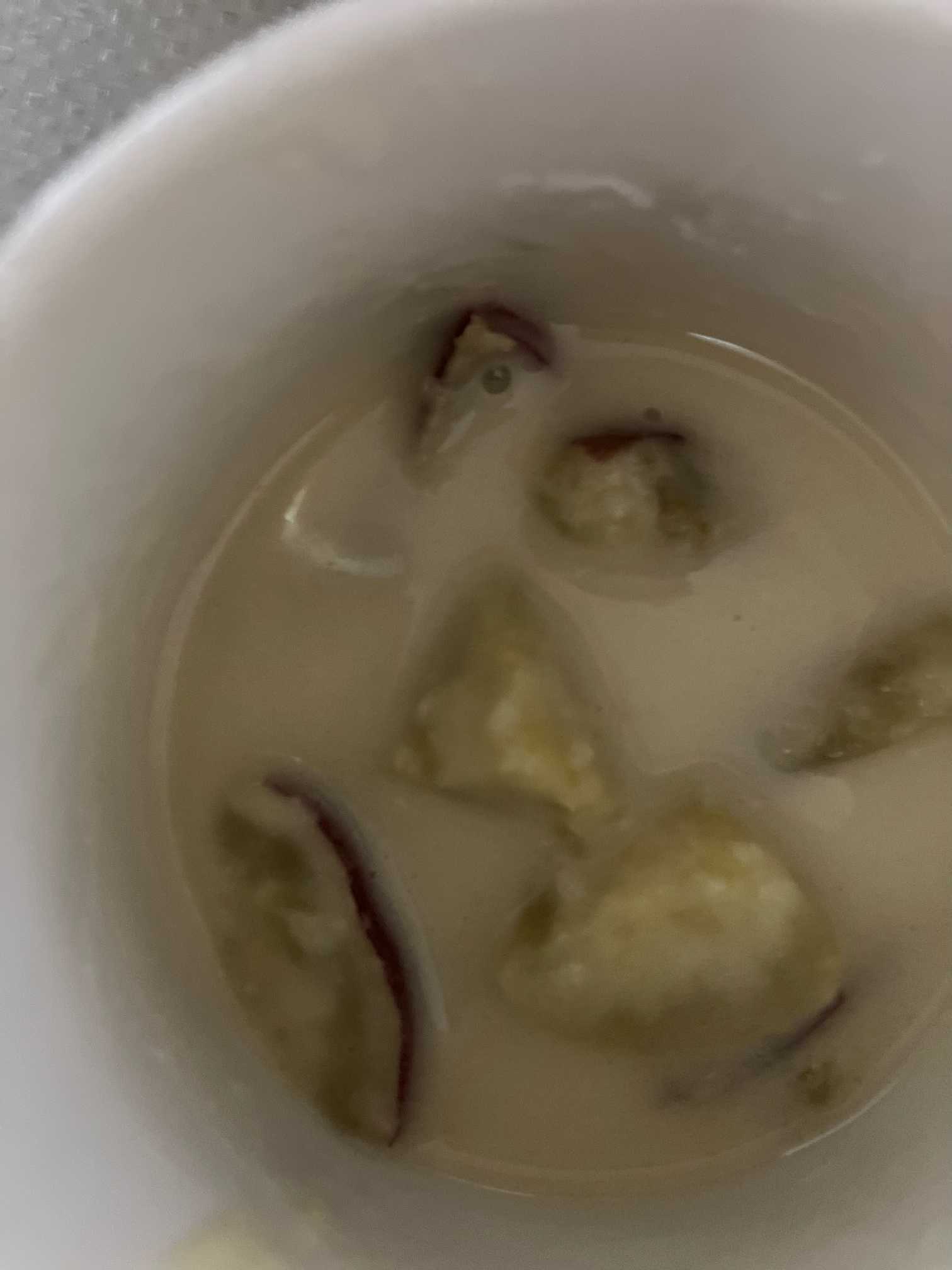 グラタン皿に てんぷら粉 さつまいも はっさくママレードの汁を入れて 混ぜます