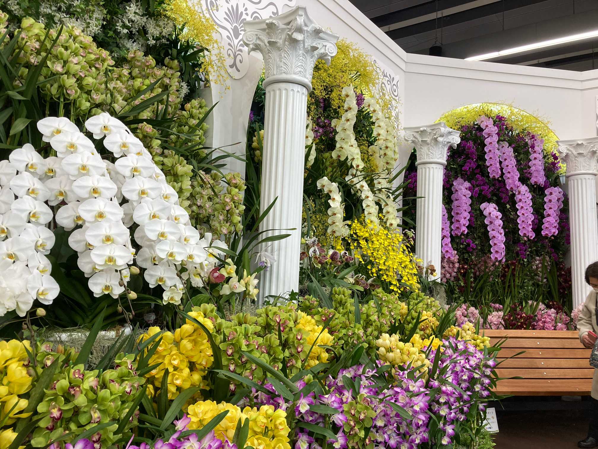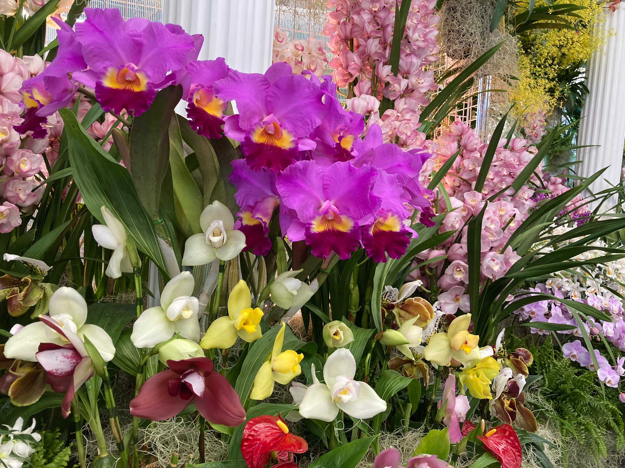 頭の上や通路を埋め尽くすランの色と甘い香りは!