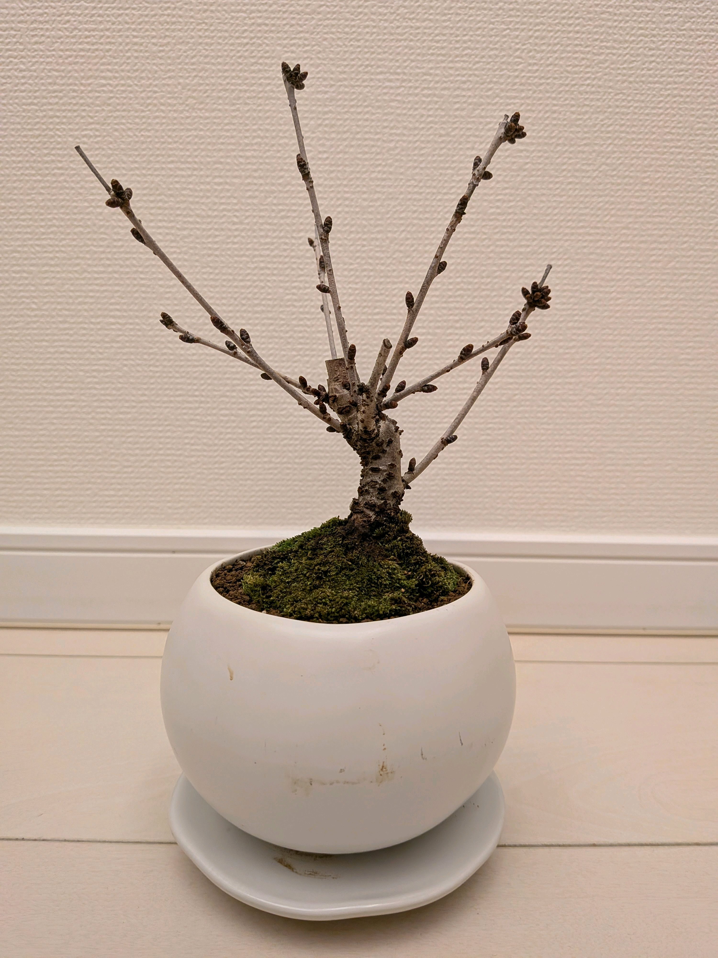 昨年春にご近所さんから頂いた桜の鉢植え。キレイに設えてあるステキな鉢です
