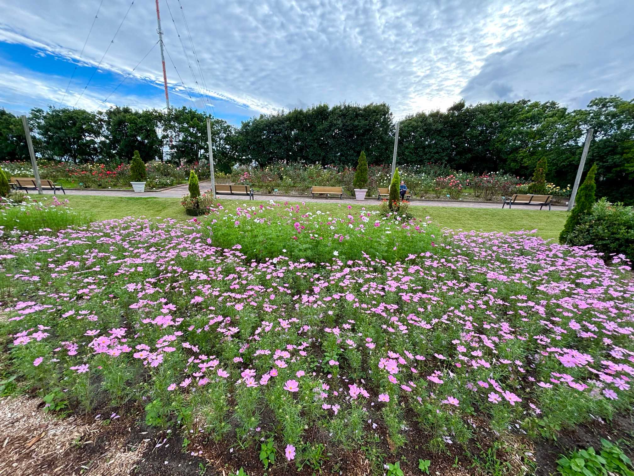 秋バラとコスモス