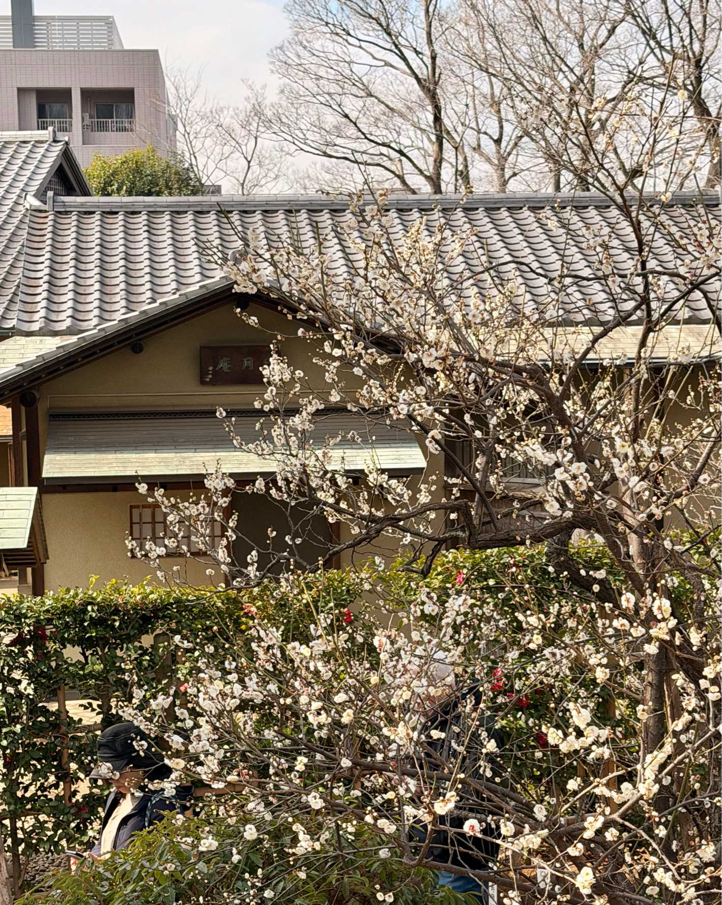 覗いてみると皆さん外に向かって座り、お茶をすすっていました😊建物と梅が良いコラボでした