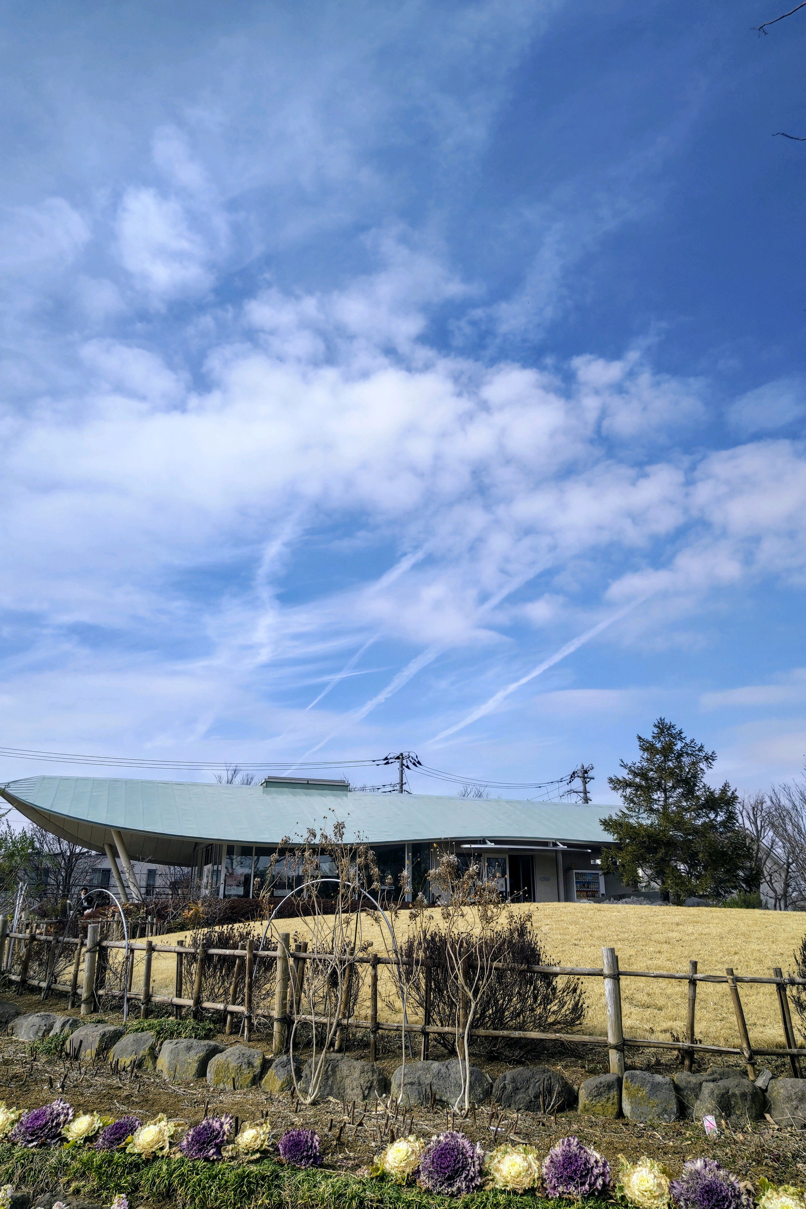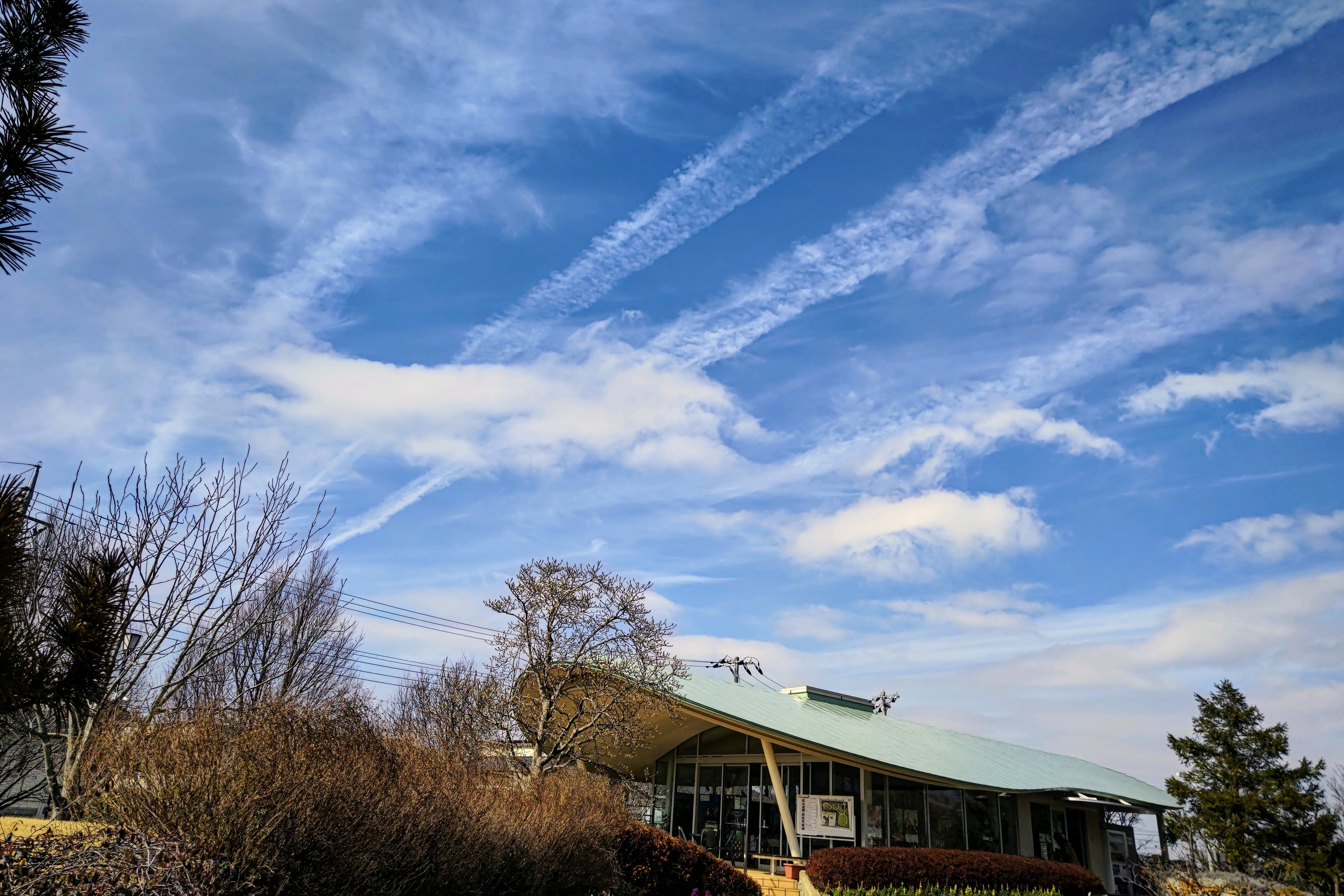 マグノリアハウスの上に飛行機雲✈️