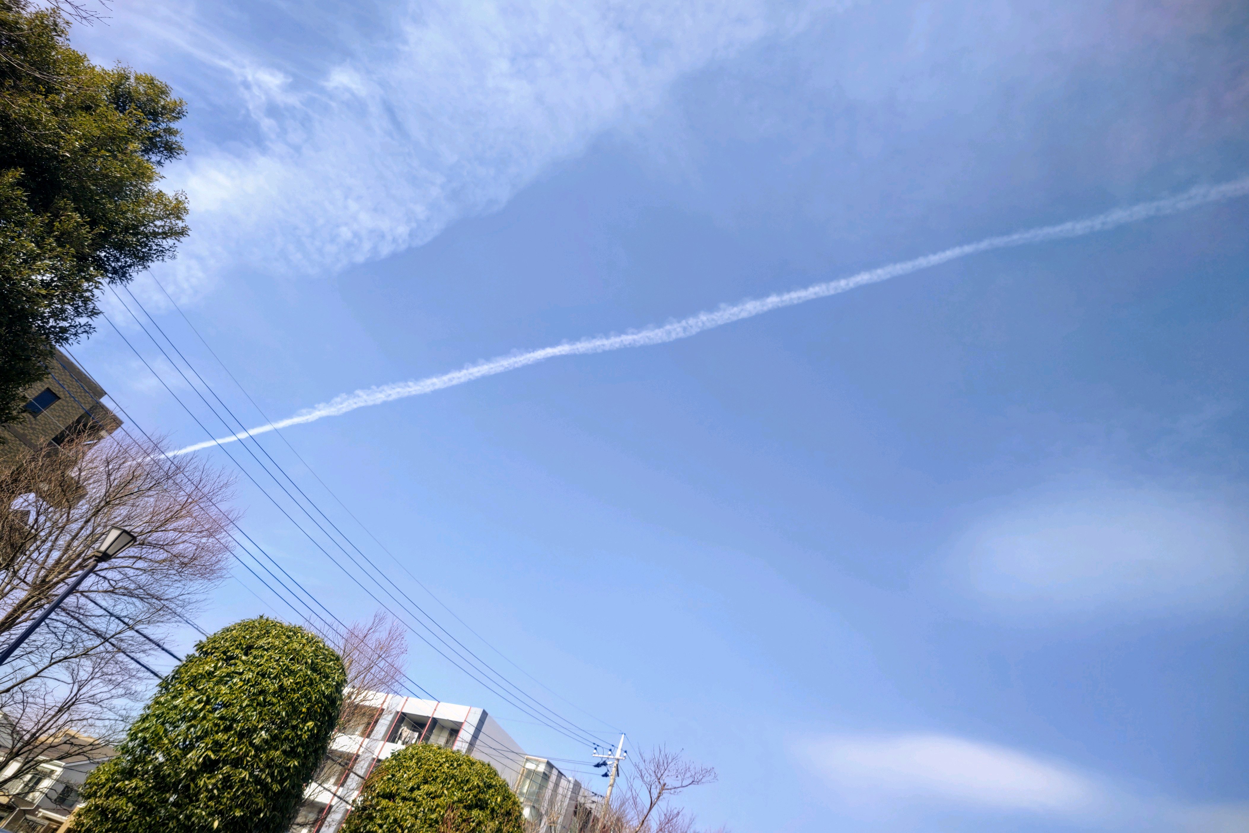くっきりとした真っ直ぐな飛行機雲✈️