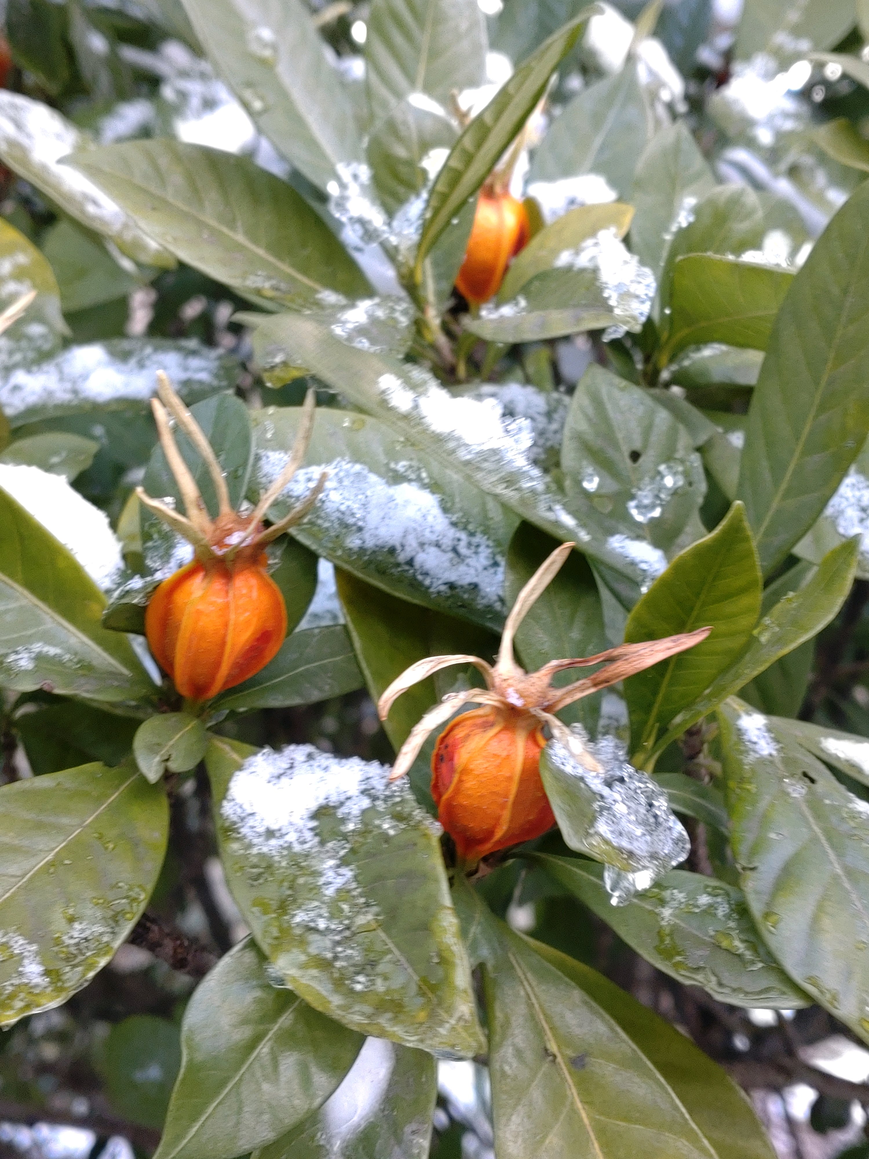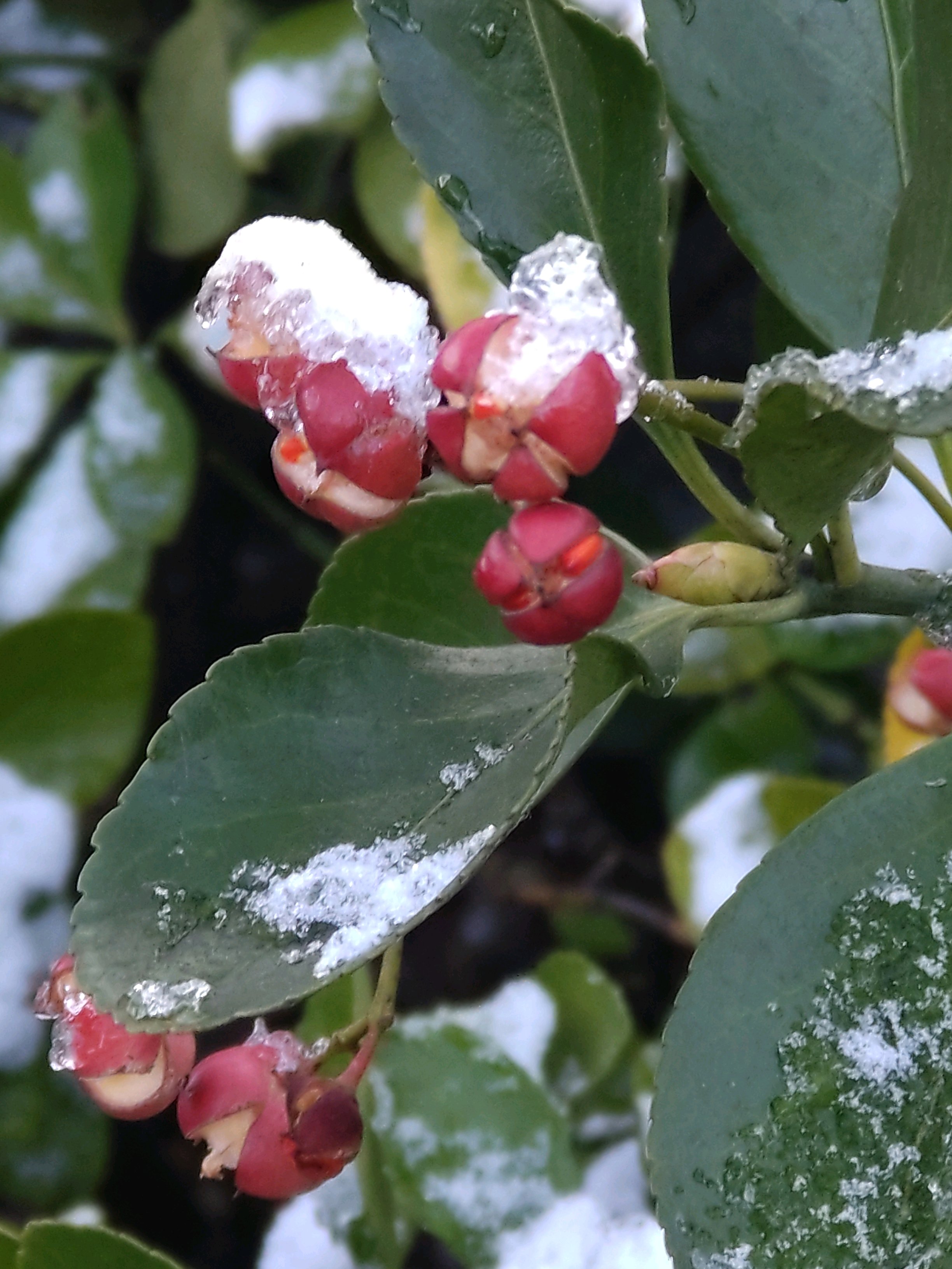 ナンテンの実にも雪