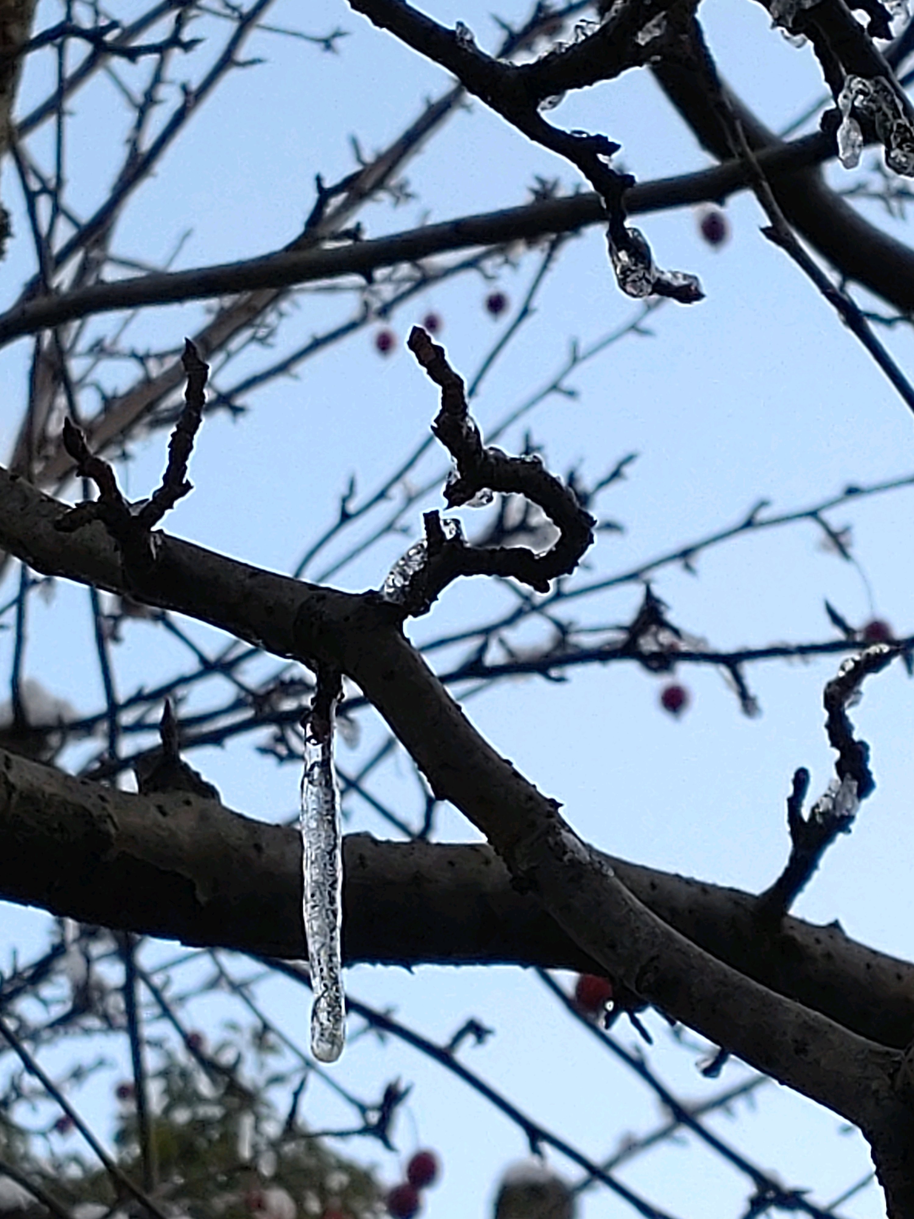 ヒメリンゴの木にツララ?