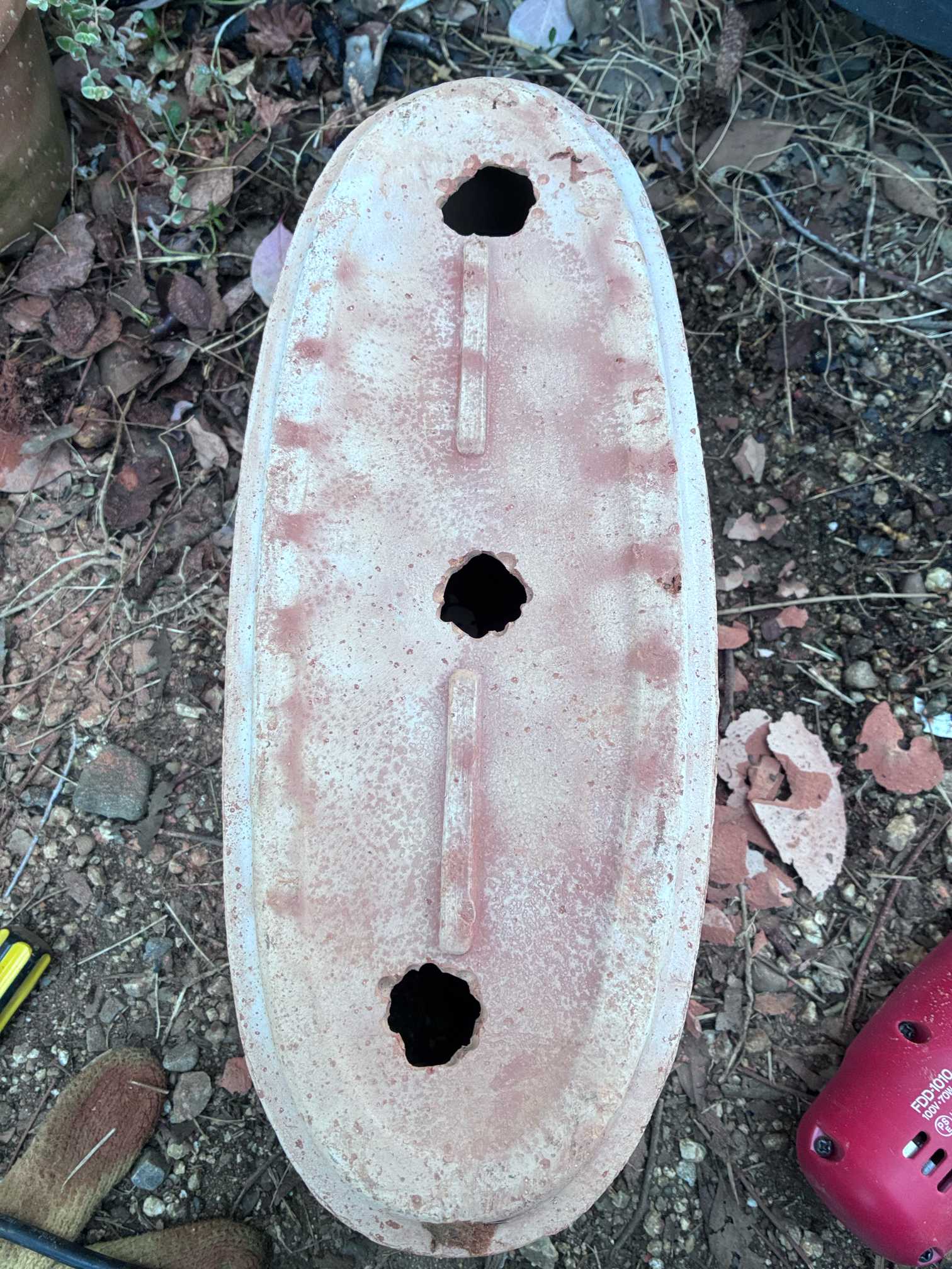 今度は丸いテラコッタの鉢です。HCでフェアをしていて、このオシャレなテラコッタ鉢が298円だったのでわ〜い👍と思って手に取ったら、穴が無かったんです。