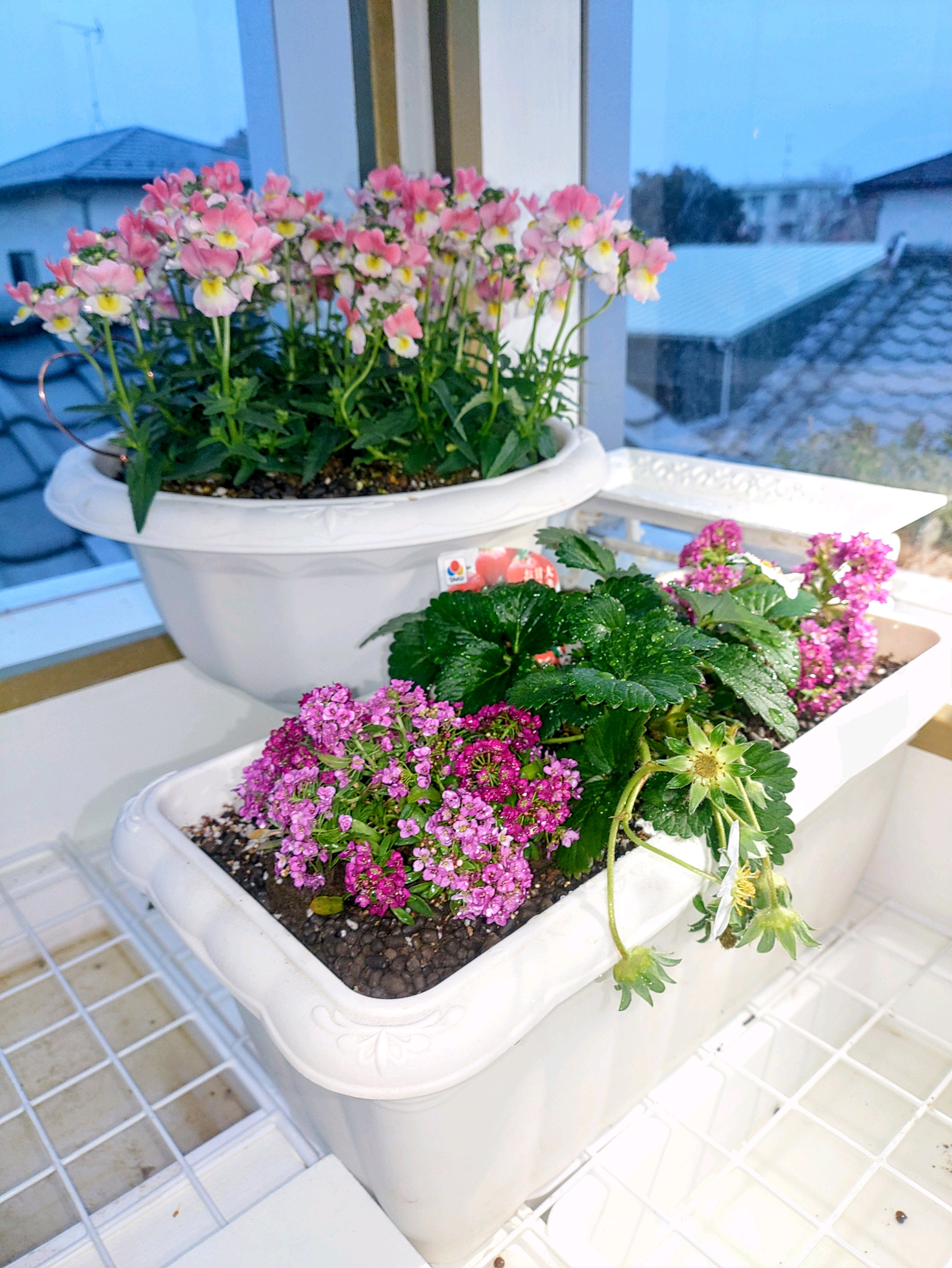 冬越しした苗は 花芽分化をしてるので 室内にて気温(温度)日照にて開花させて 苺🍓を実らせようかと思いまして 定植