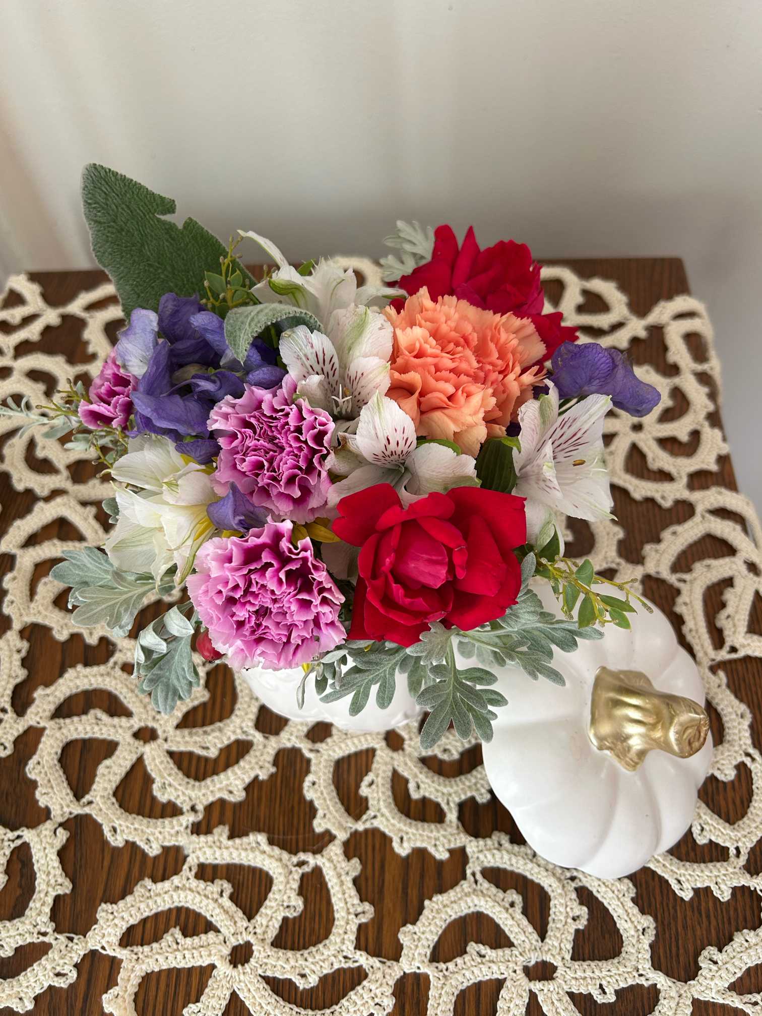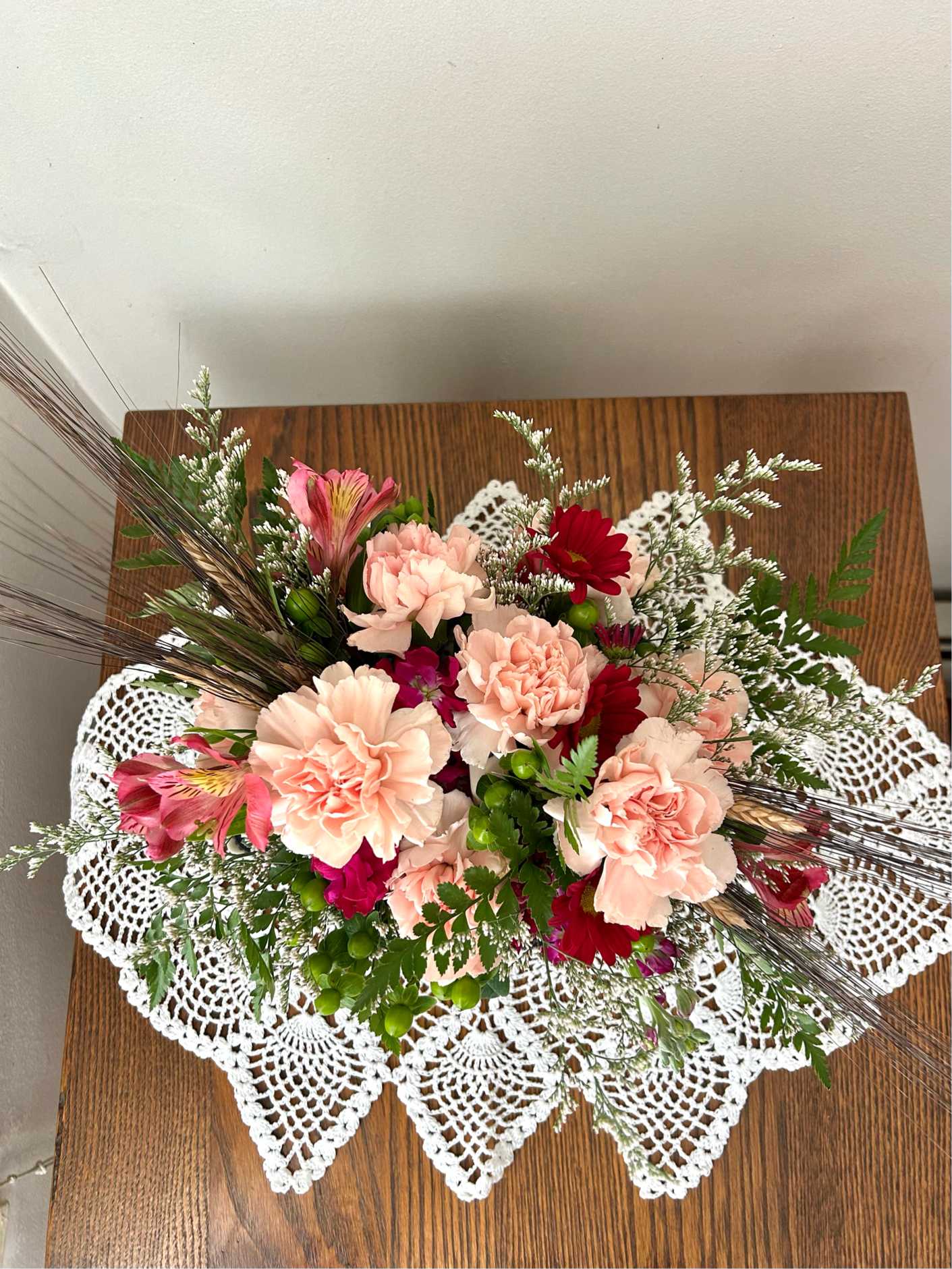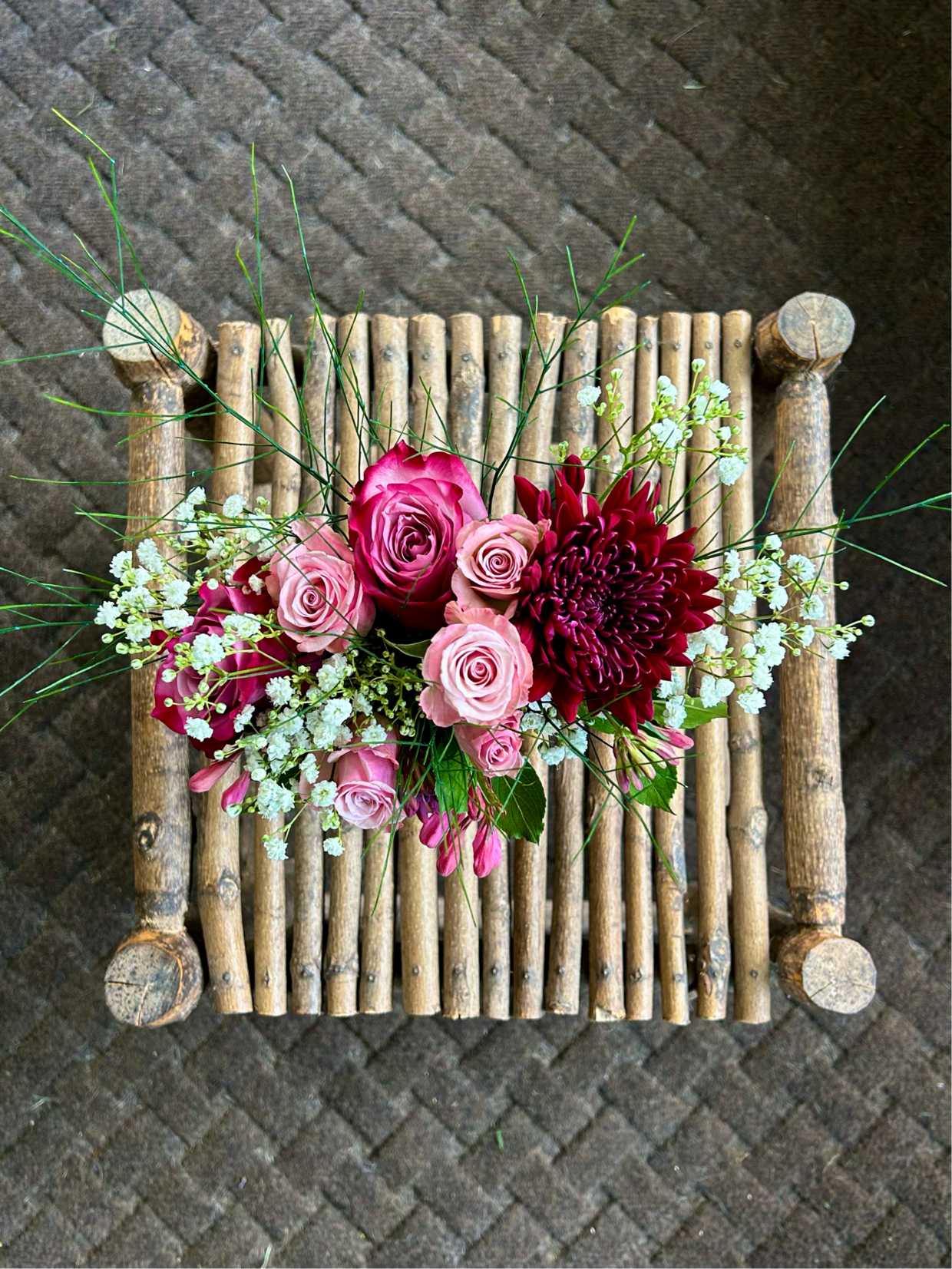 見えないところにお花を入れると、奥行きがでるので、見えなくても無駄な花ではないんです。
