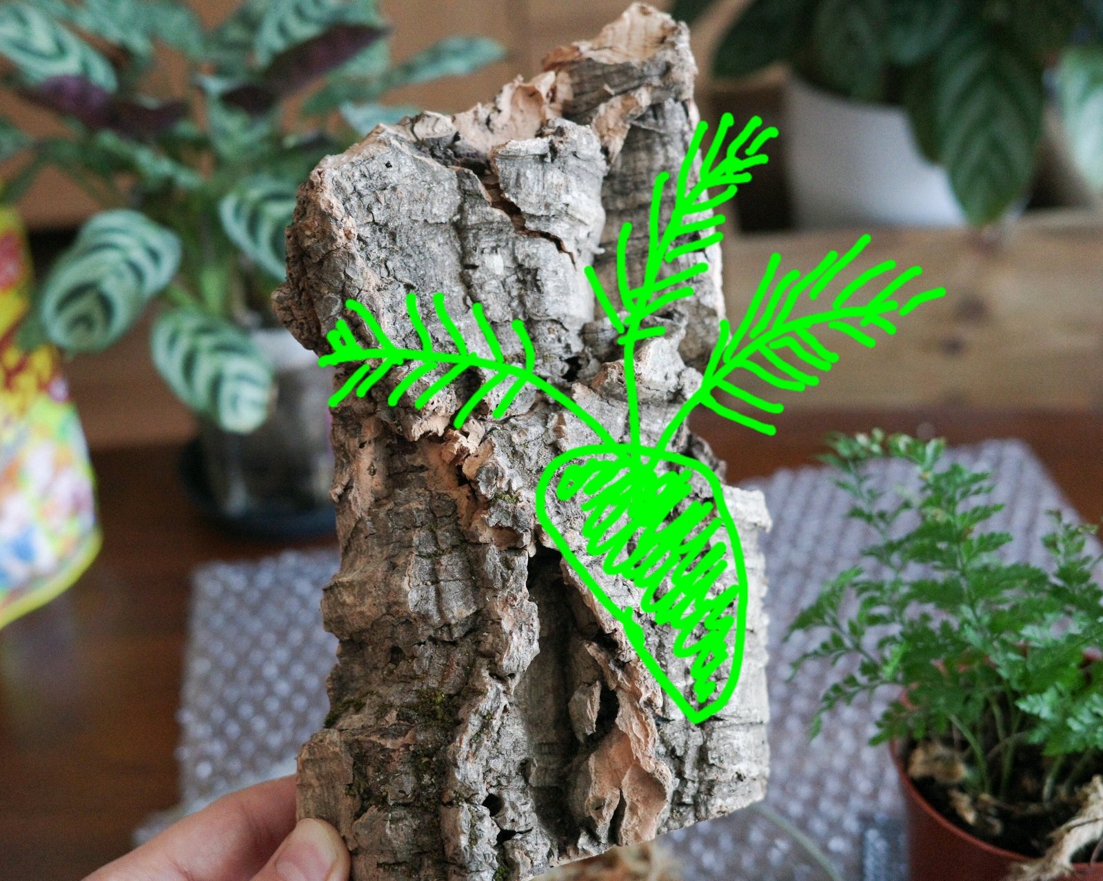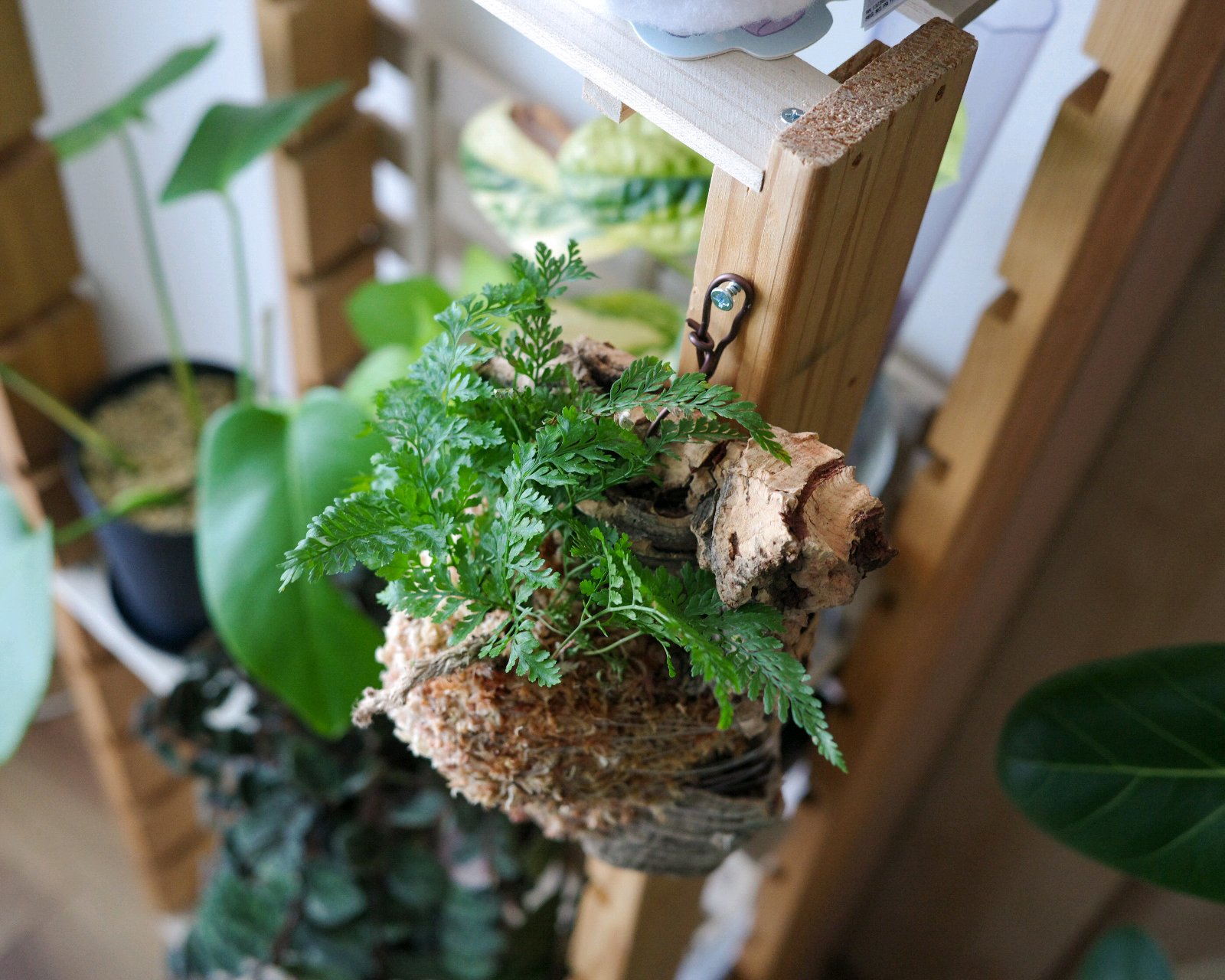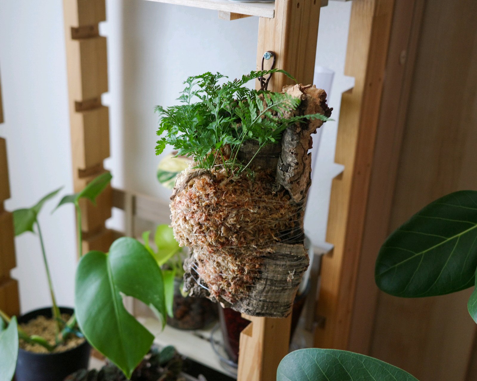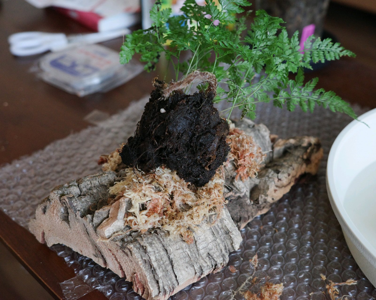 弱ってきたダイソー産トキワシノブを、水苔でコルクに板付にして養生になるのか。2026年2月21日