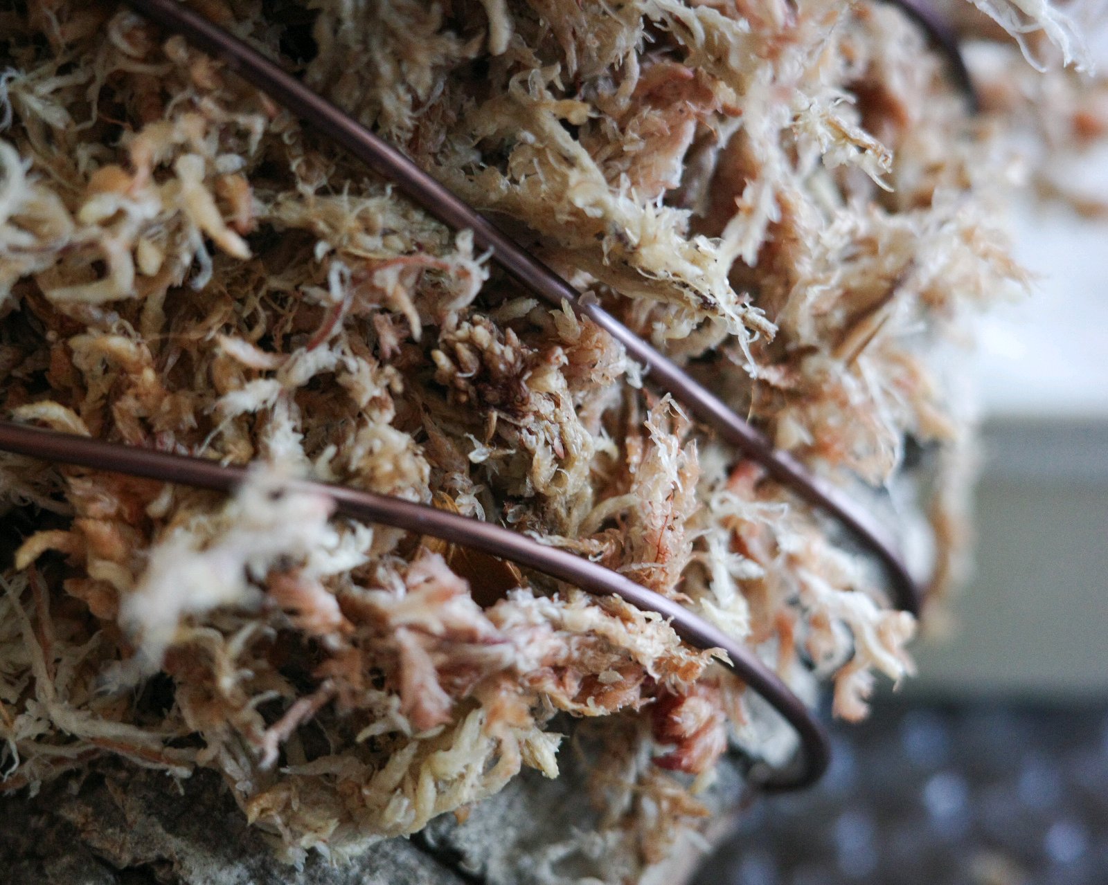 竹ひごではみ出た水苔を押し込んだり、たるんだ糸にぐいっと挟ませたり、ツンツンと整えてみます。