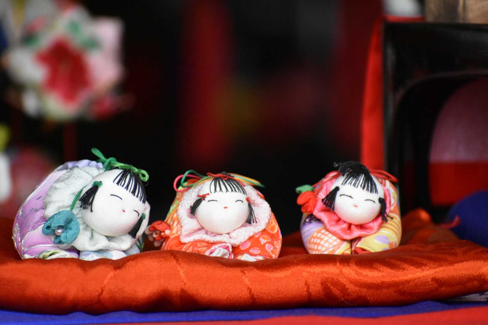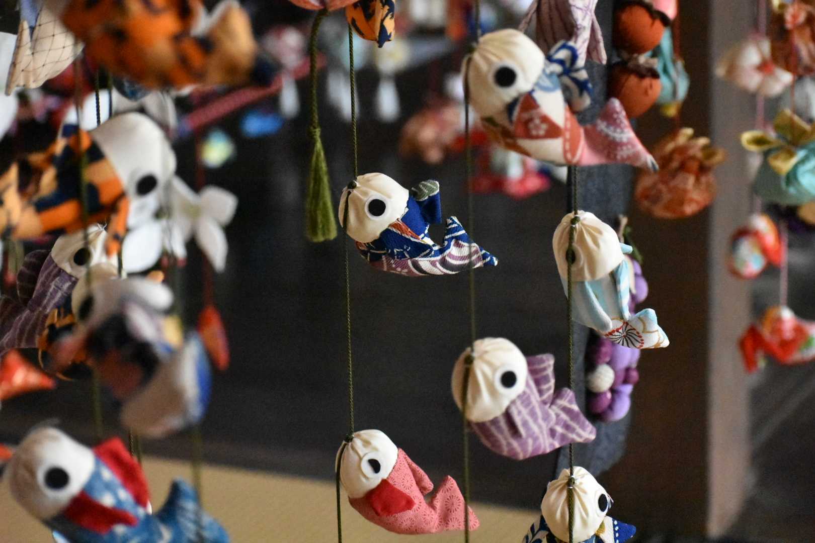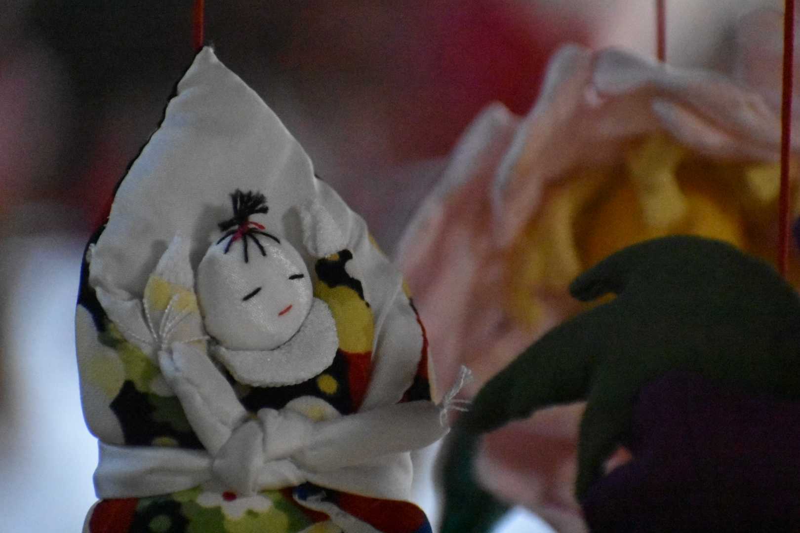 華やかな吊るし雛たちが風に揺られ