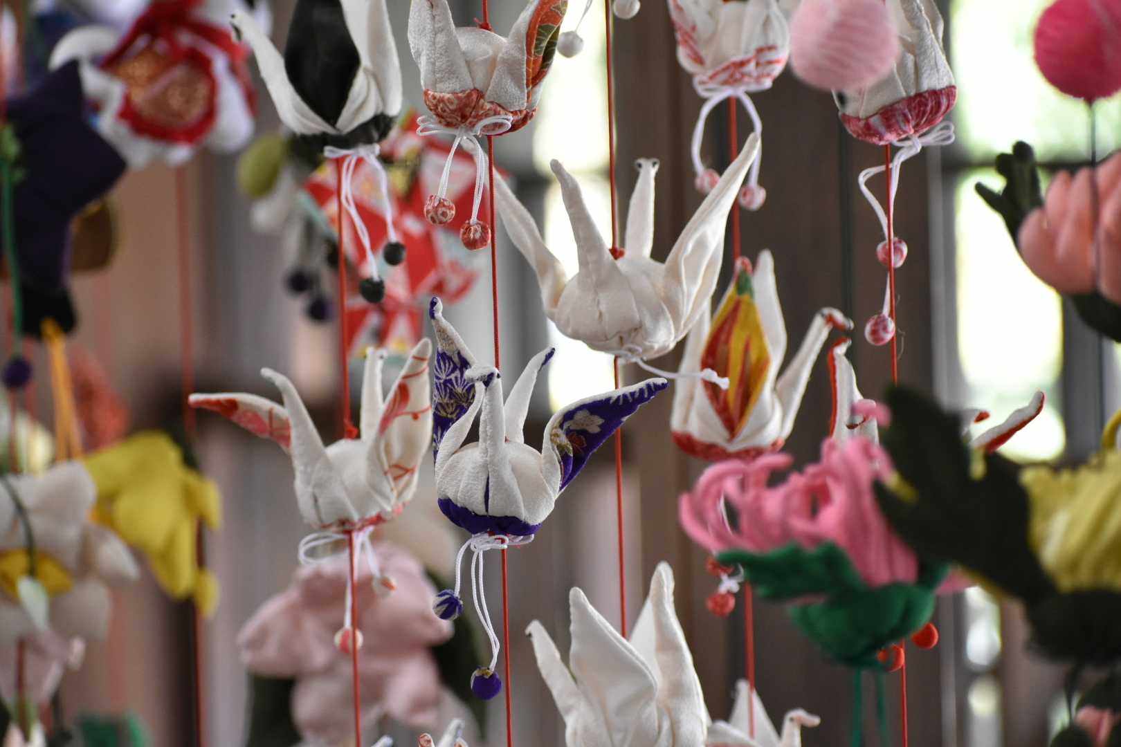 春感じる庭園で吊るし雛巡り