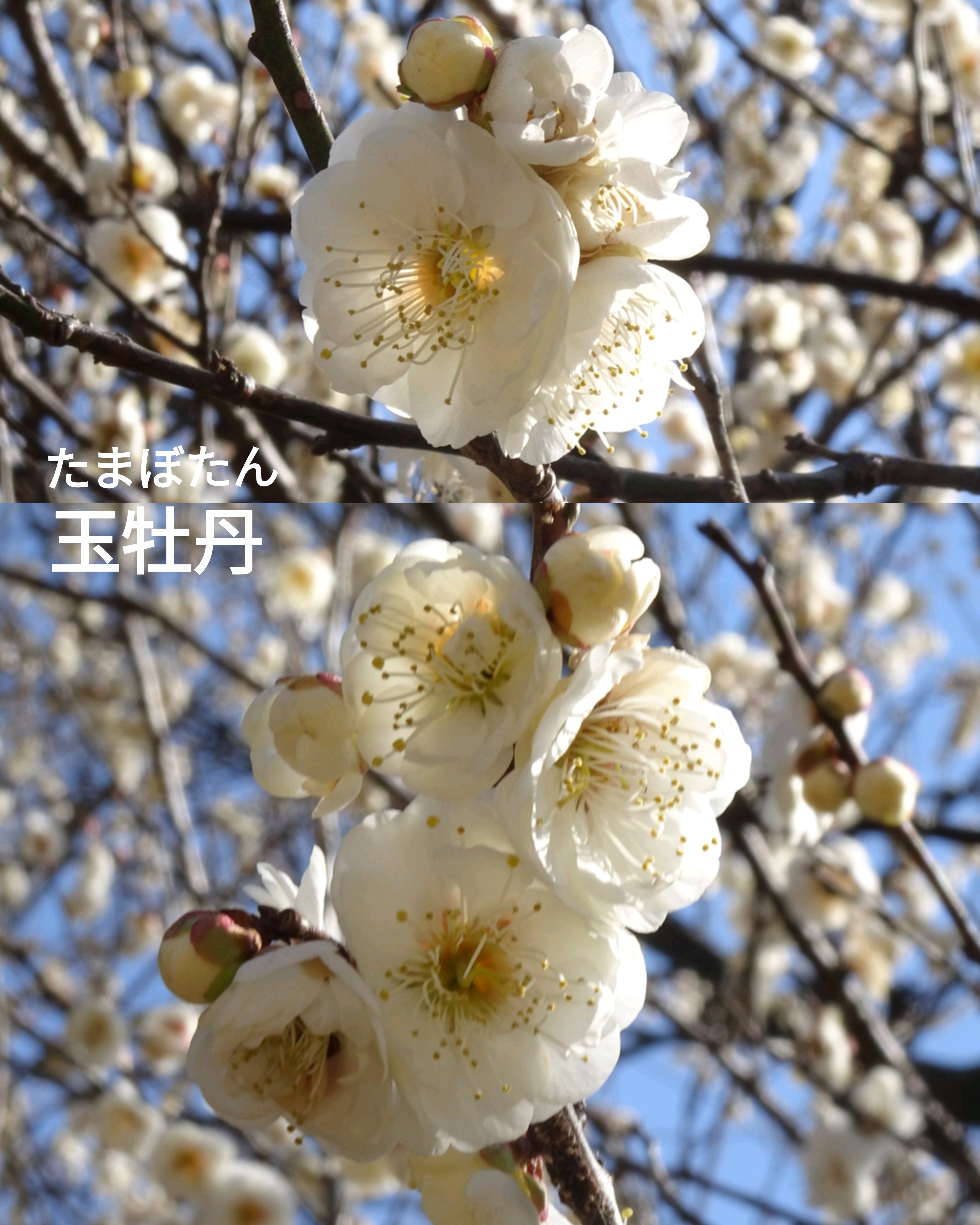 牡丹が名前に付く梅の花は大輪八重咲きで華やかです