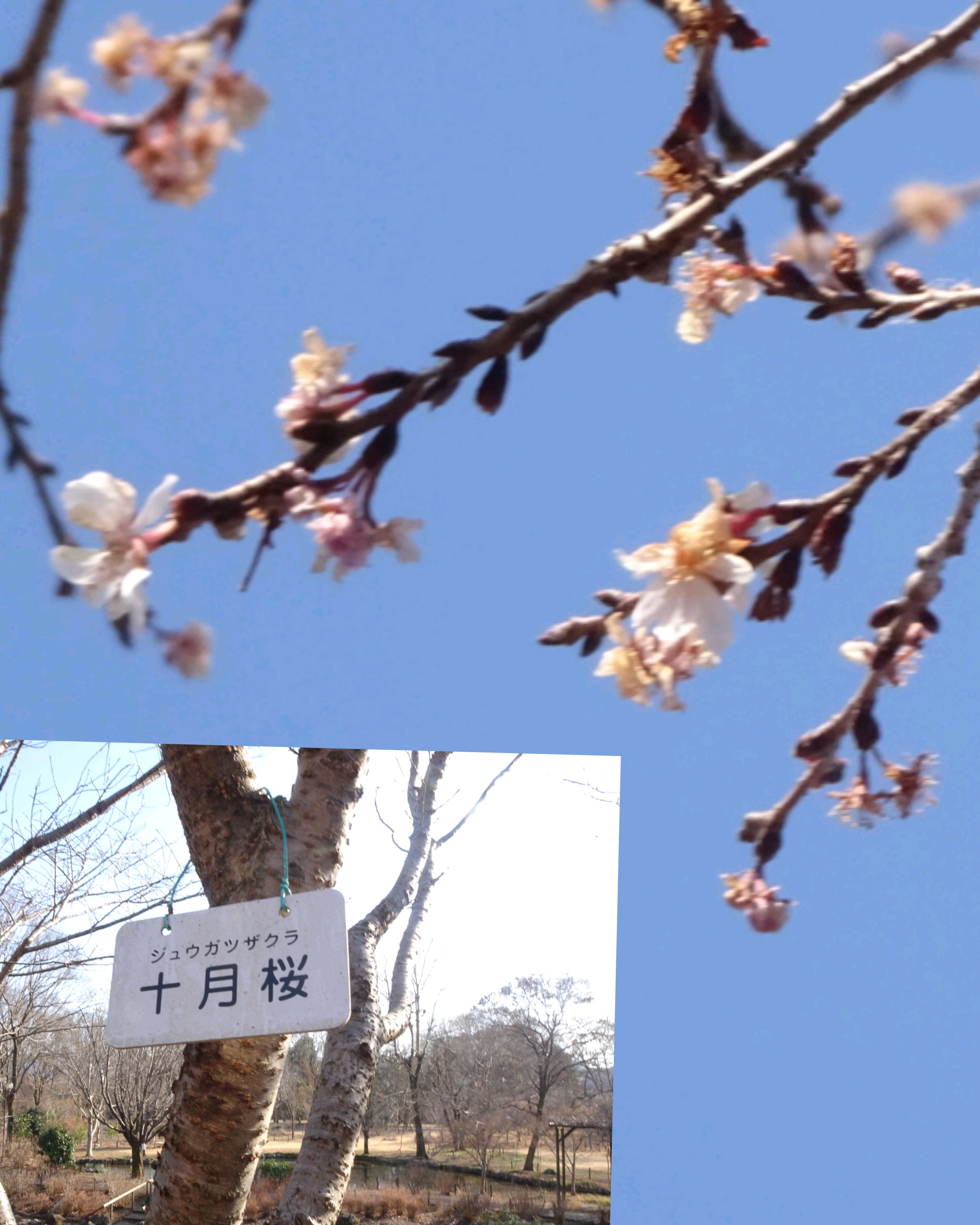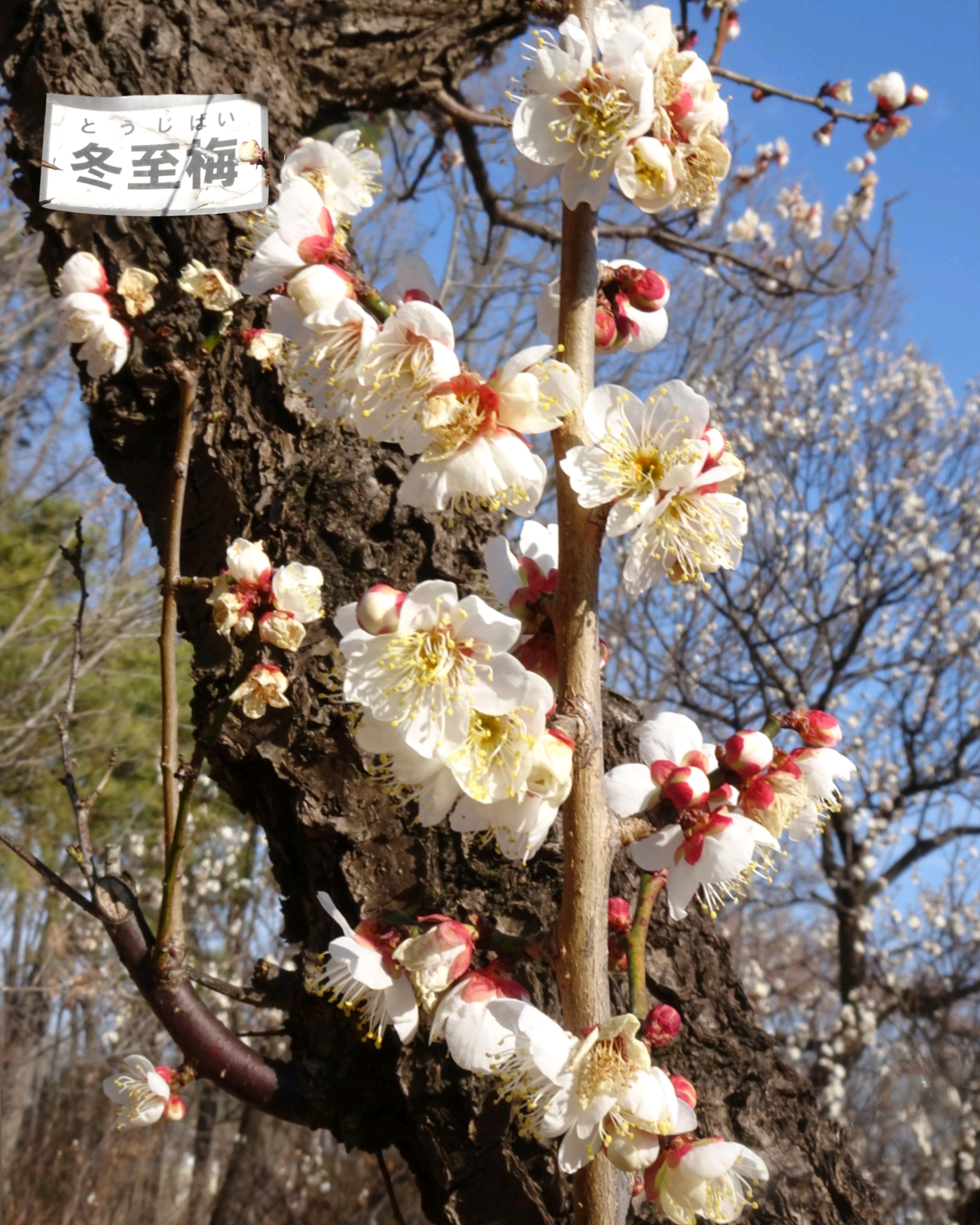 臥竜梅の斜め前には、十月桜と冬至梅が交互に植えてありました