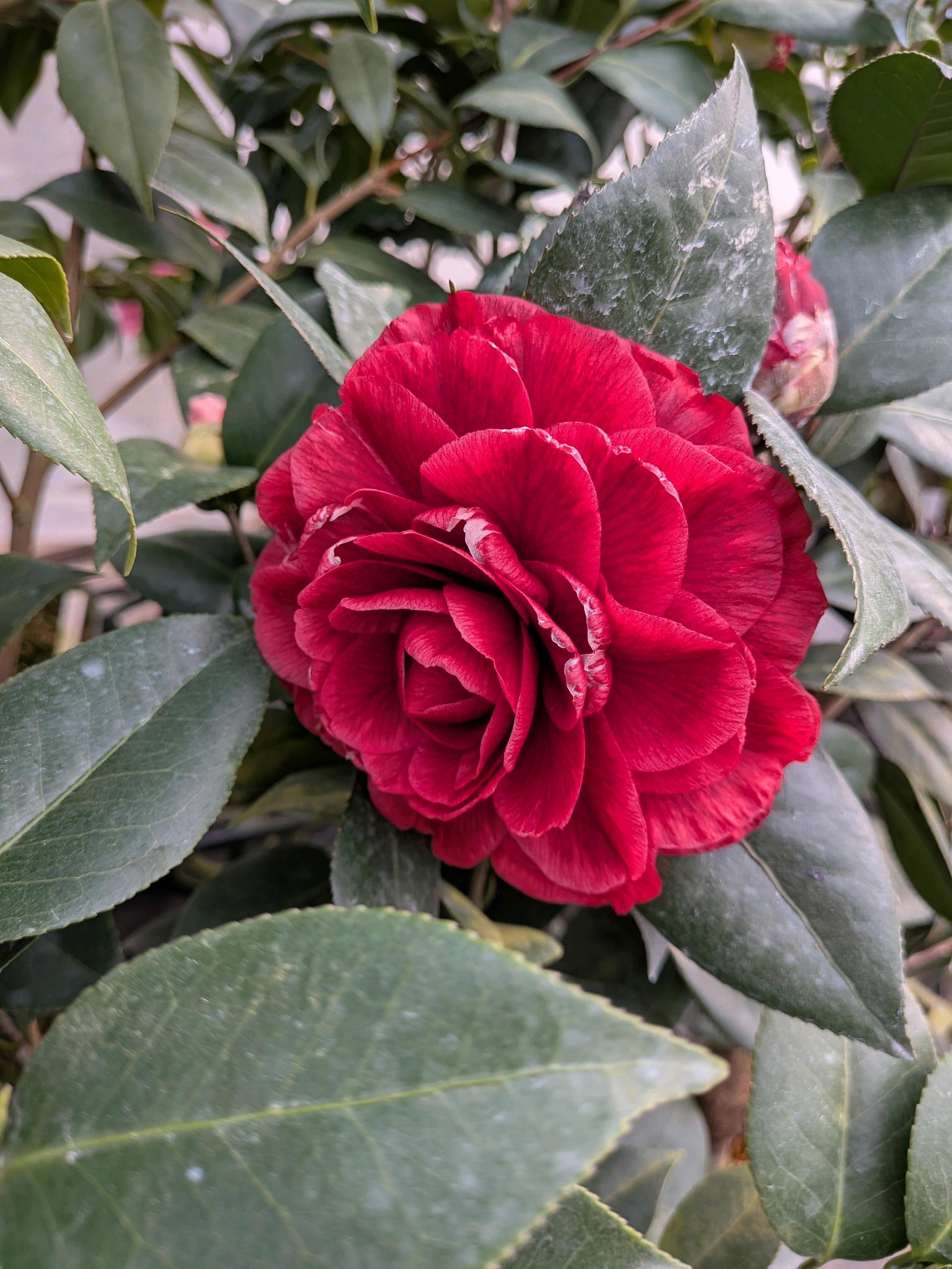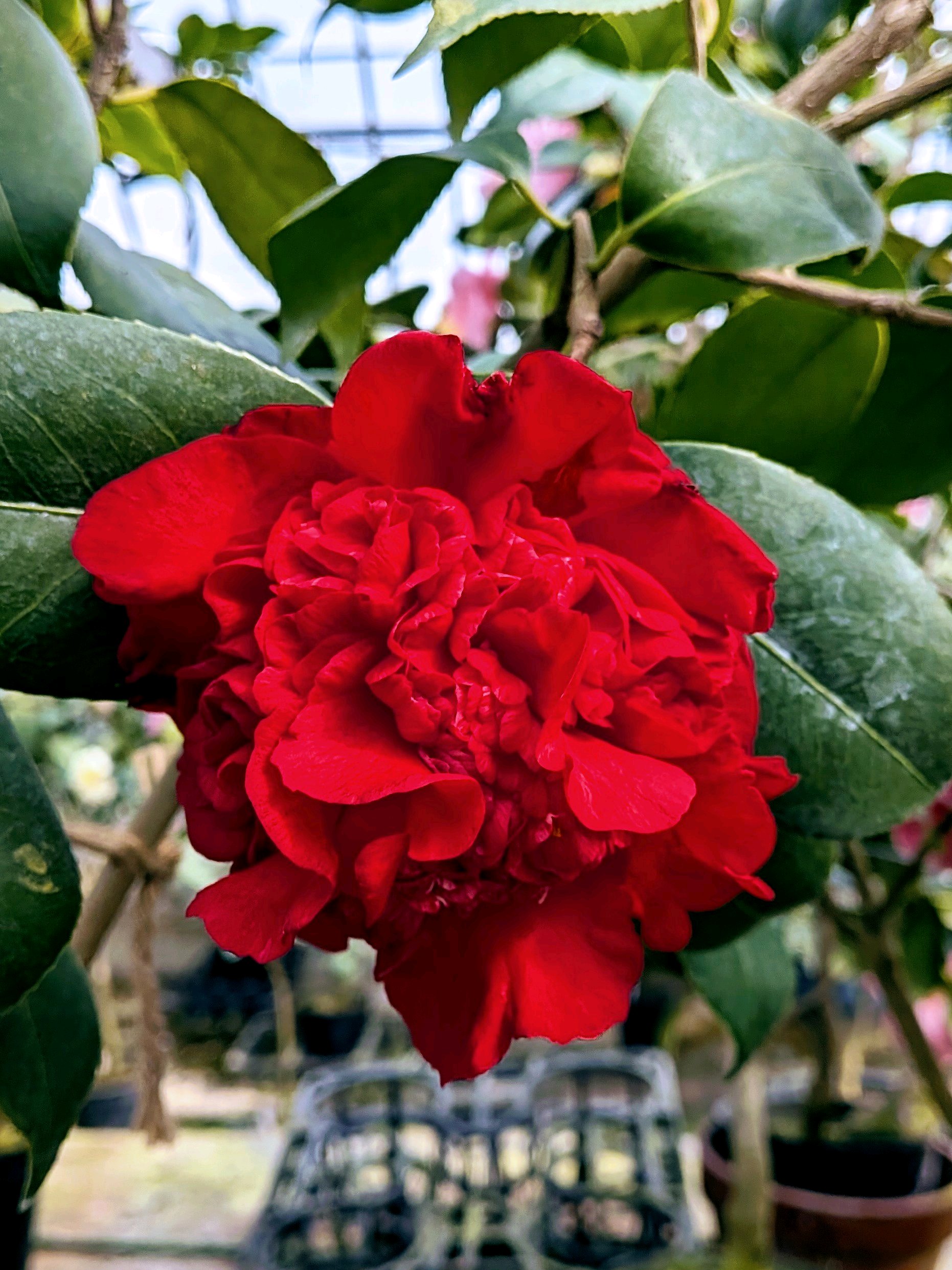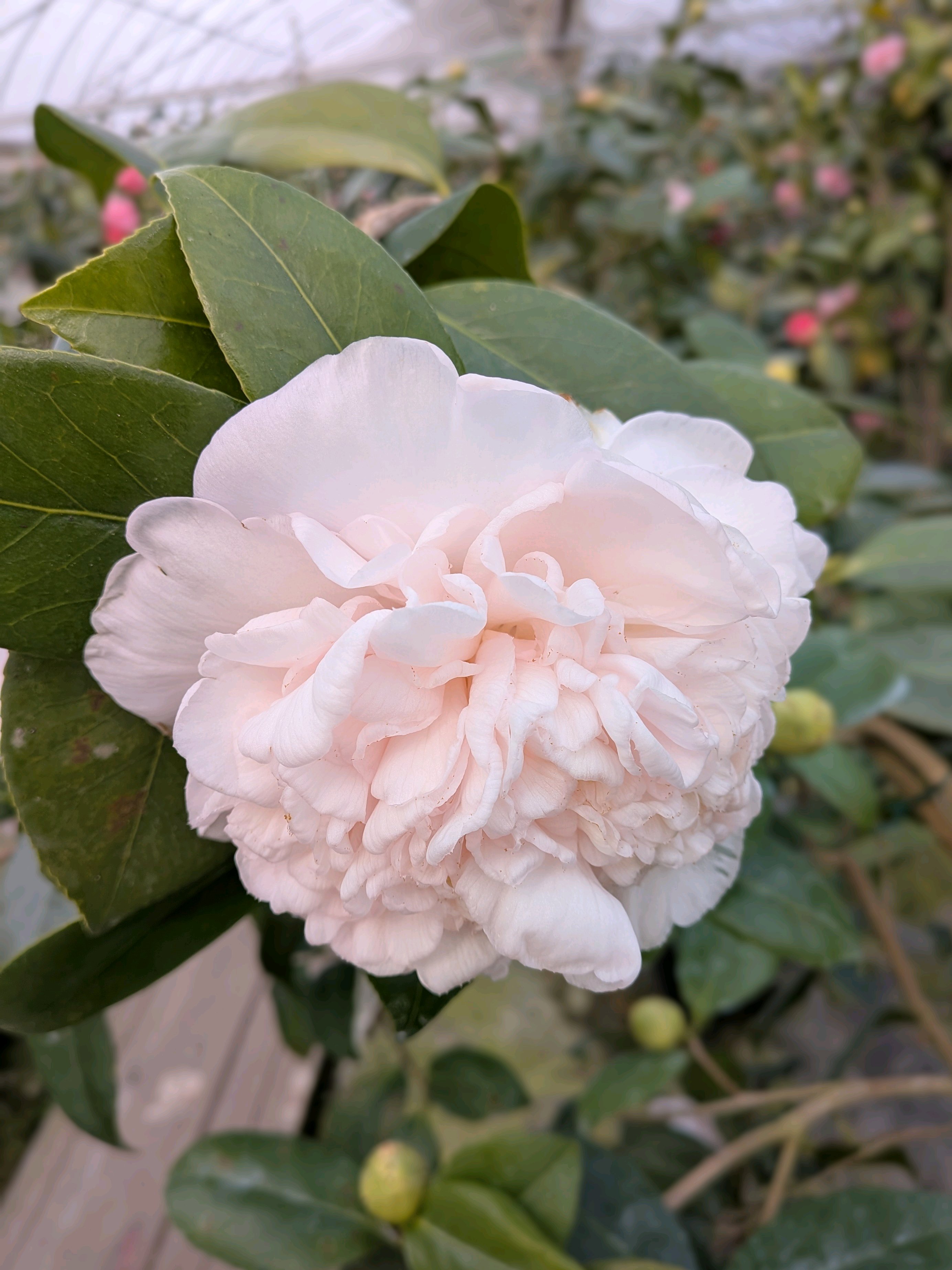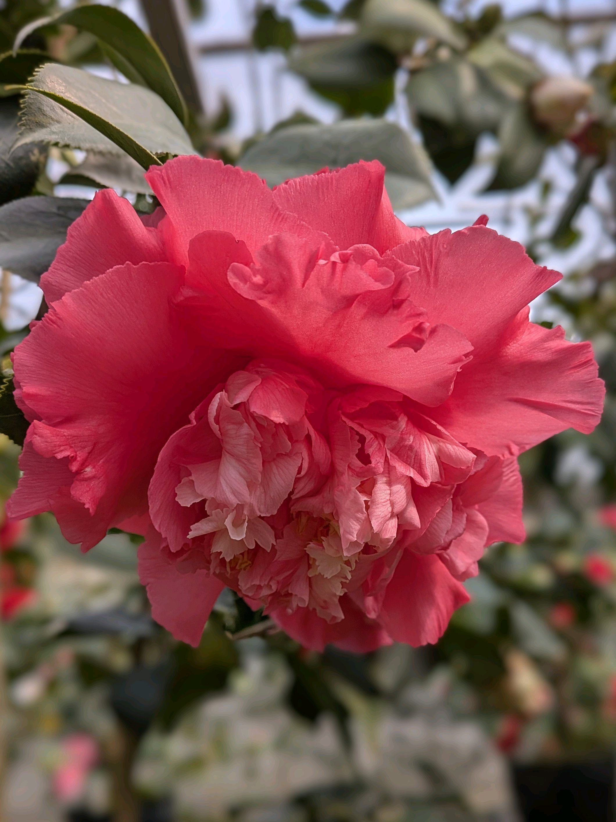 椿の花びらは かっちりした固いイメージでしたが、大輪のバラや芍薬、または八重咲き風鈴仏桑華のような、豪華絢爛で柔らかそうな花びらに目を見張りました。