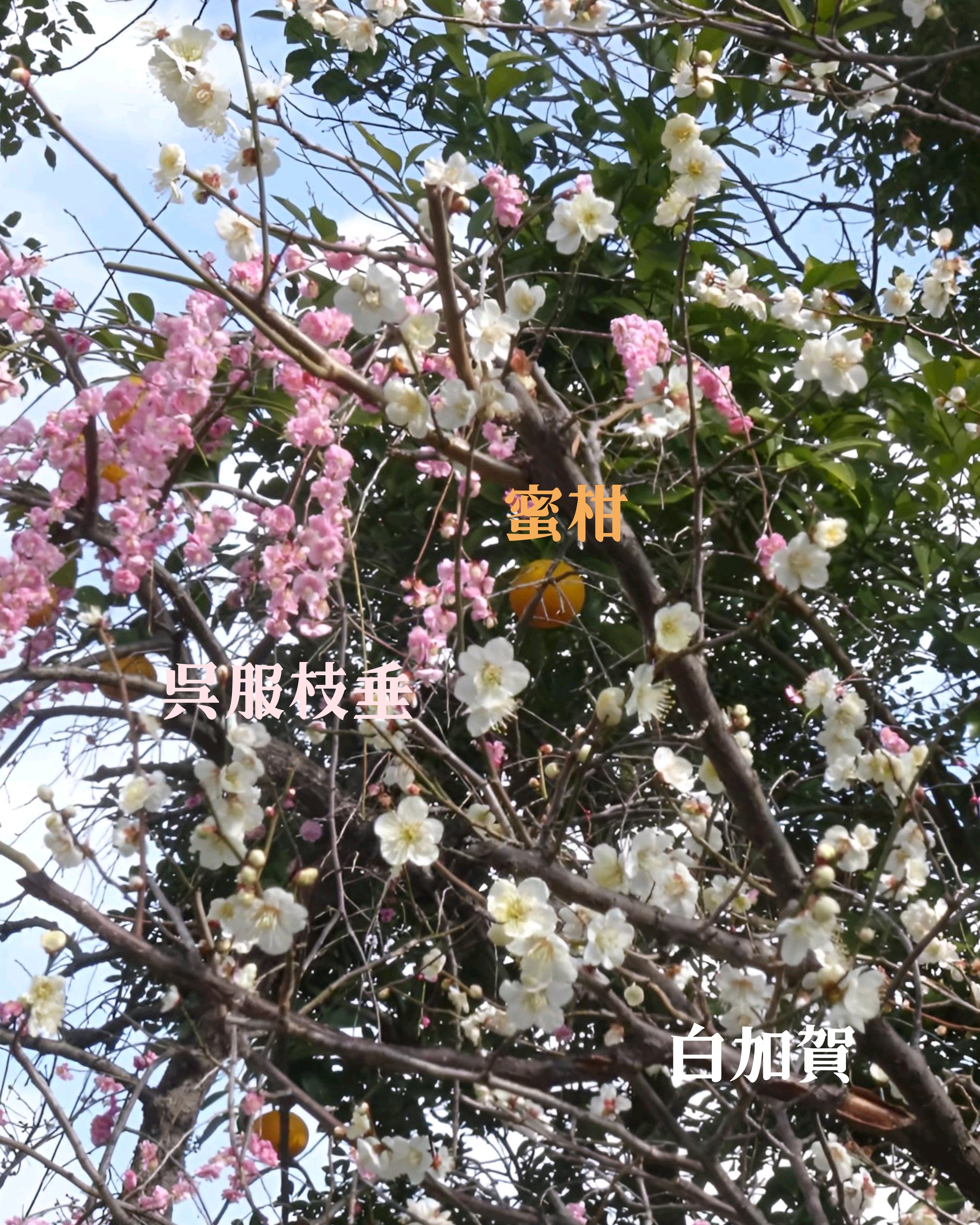 呉服枝垂と白加賀と蜜柑がコラボしてました☺️🩷🍊🤍