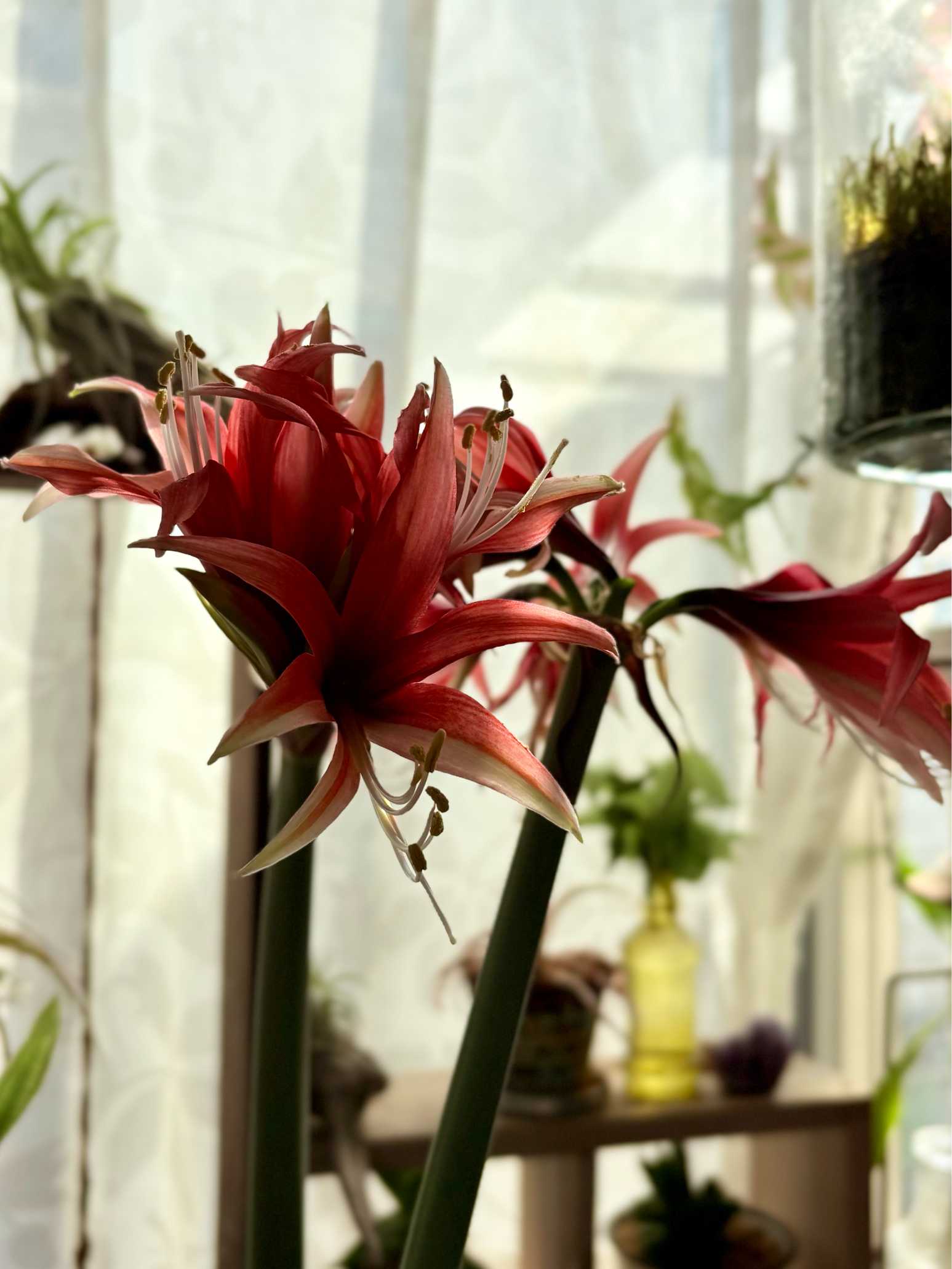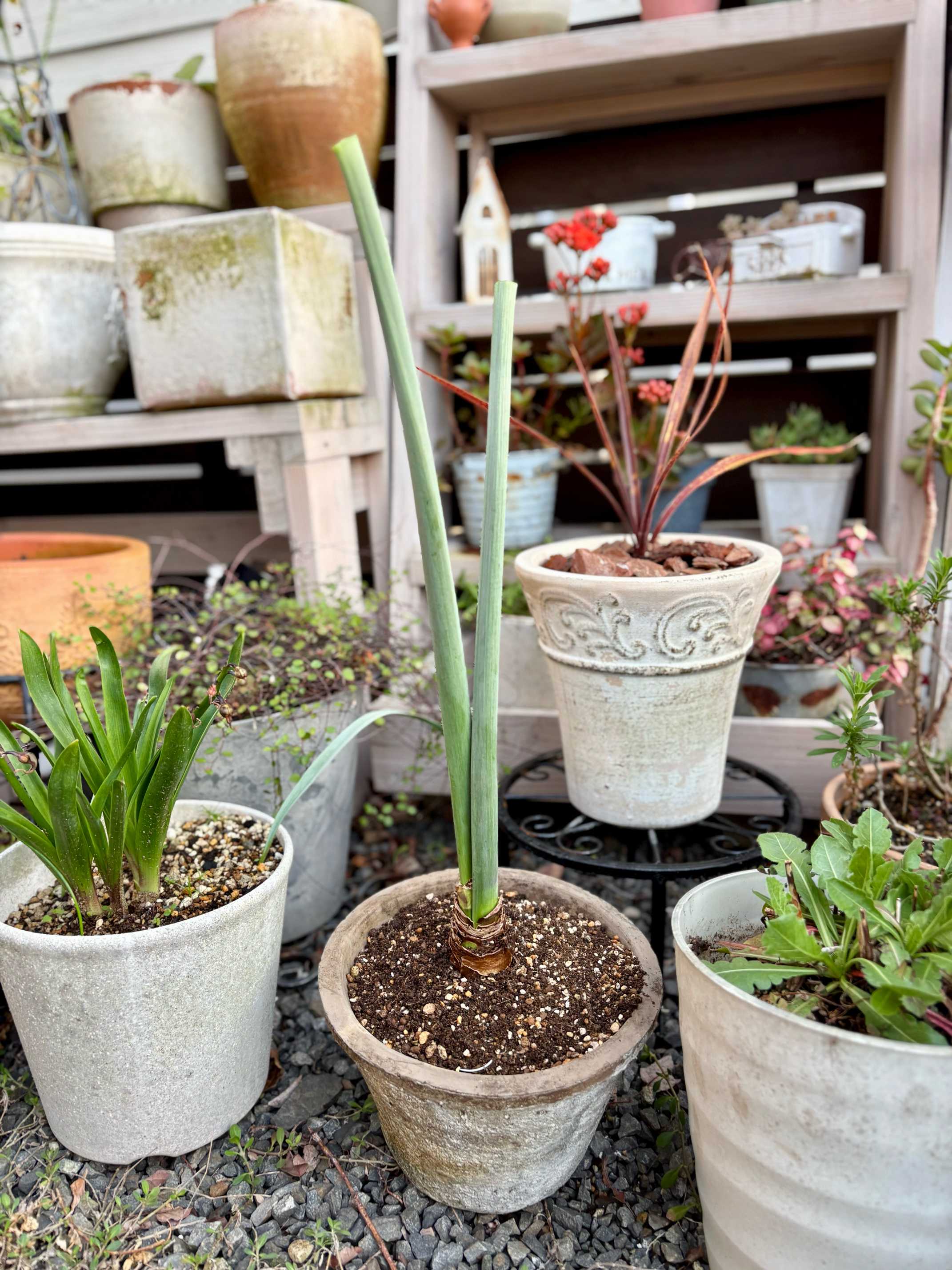 水なしで開花するのは初年度だけで、2年目以降はふつうのアマリリスと同じように土植えにして栄養がつけば咲くこともあるそうです。