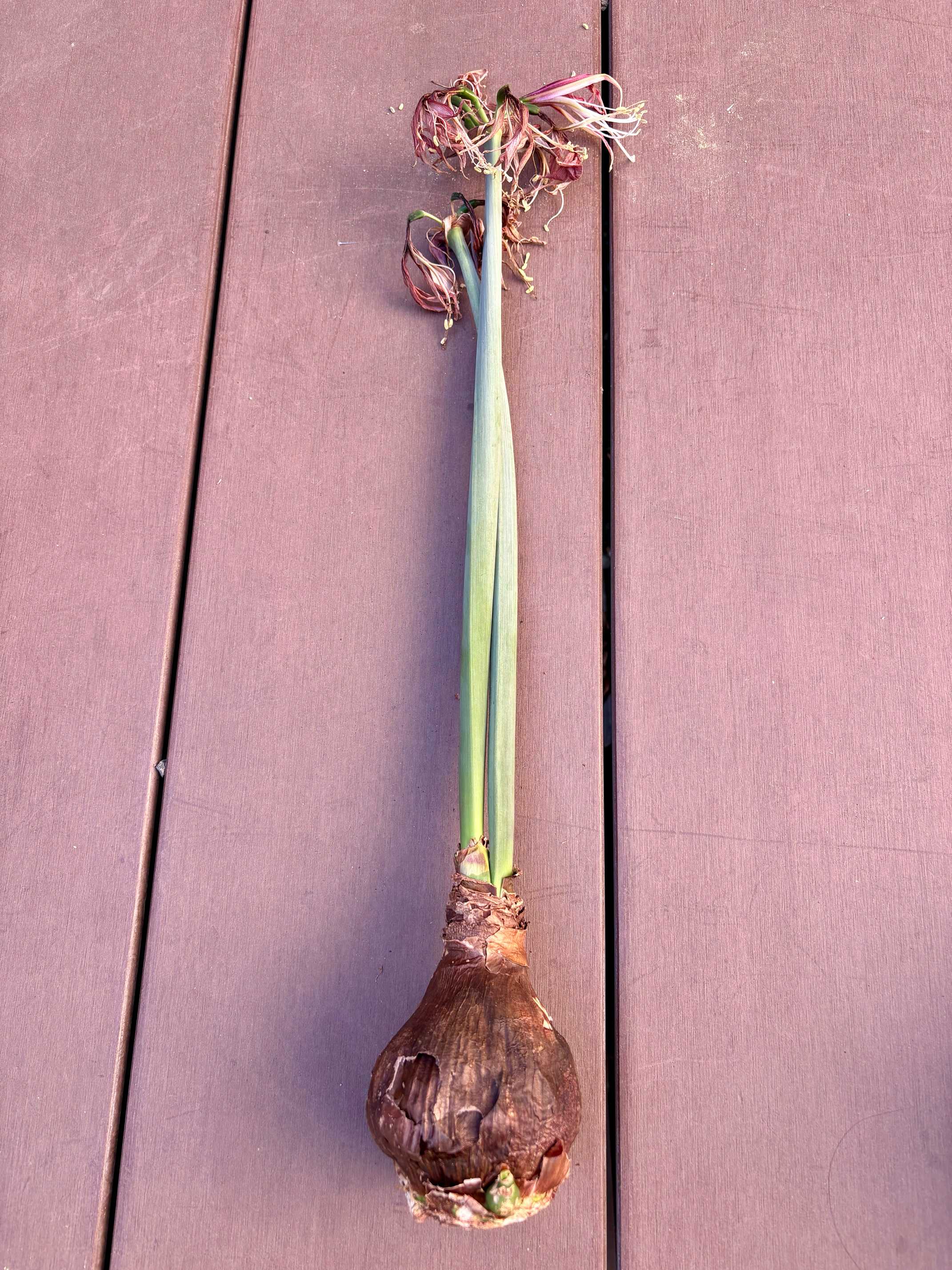 このあたりから球根は力つきてきたのか、べこべこになってました。