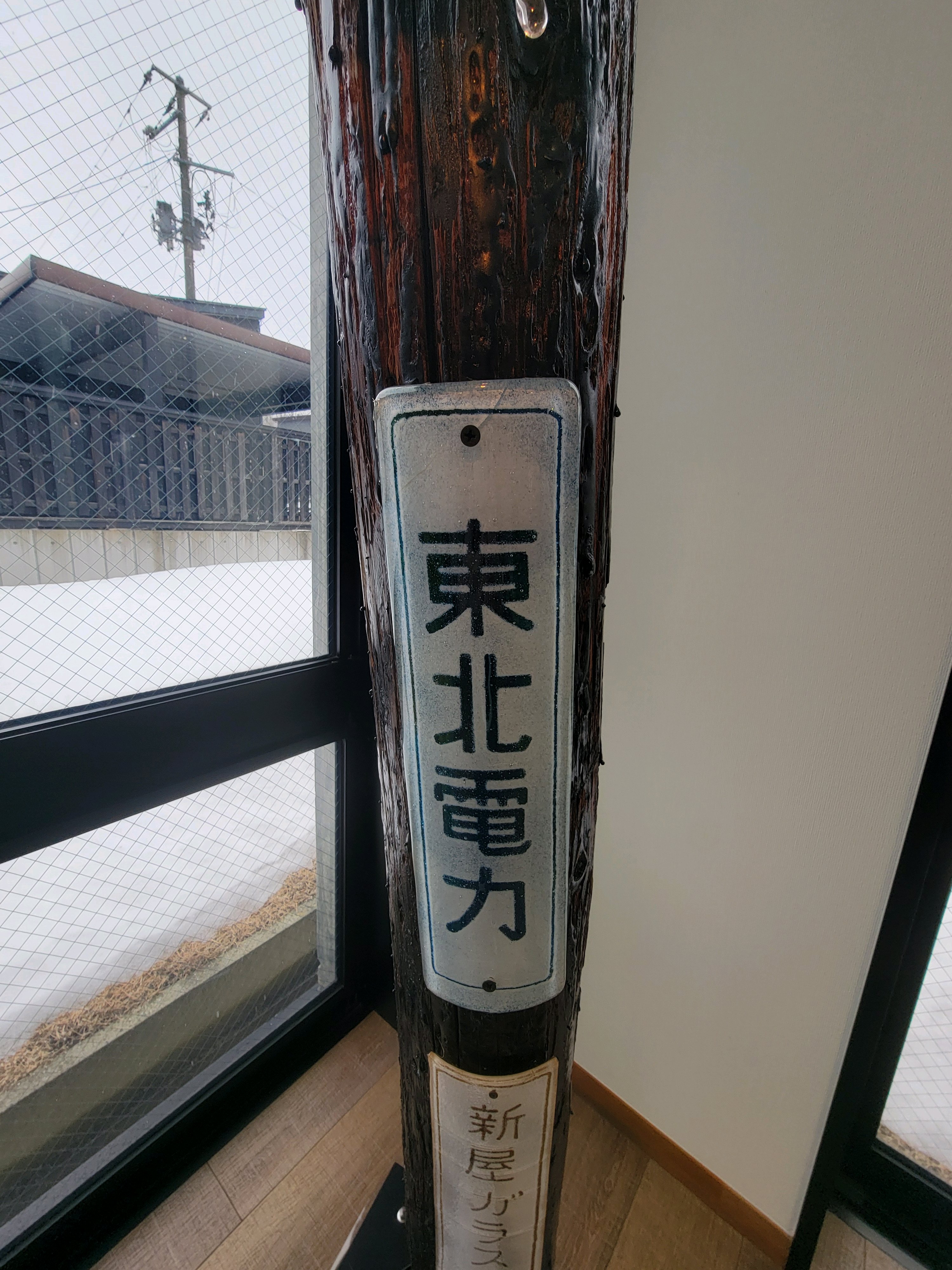 誘いを受けて当時のスタッフ間で、共同制作した作品を展示 したいという話になり、皆で協力して制作したのがこの電柱 作品です。