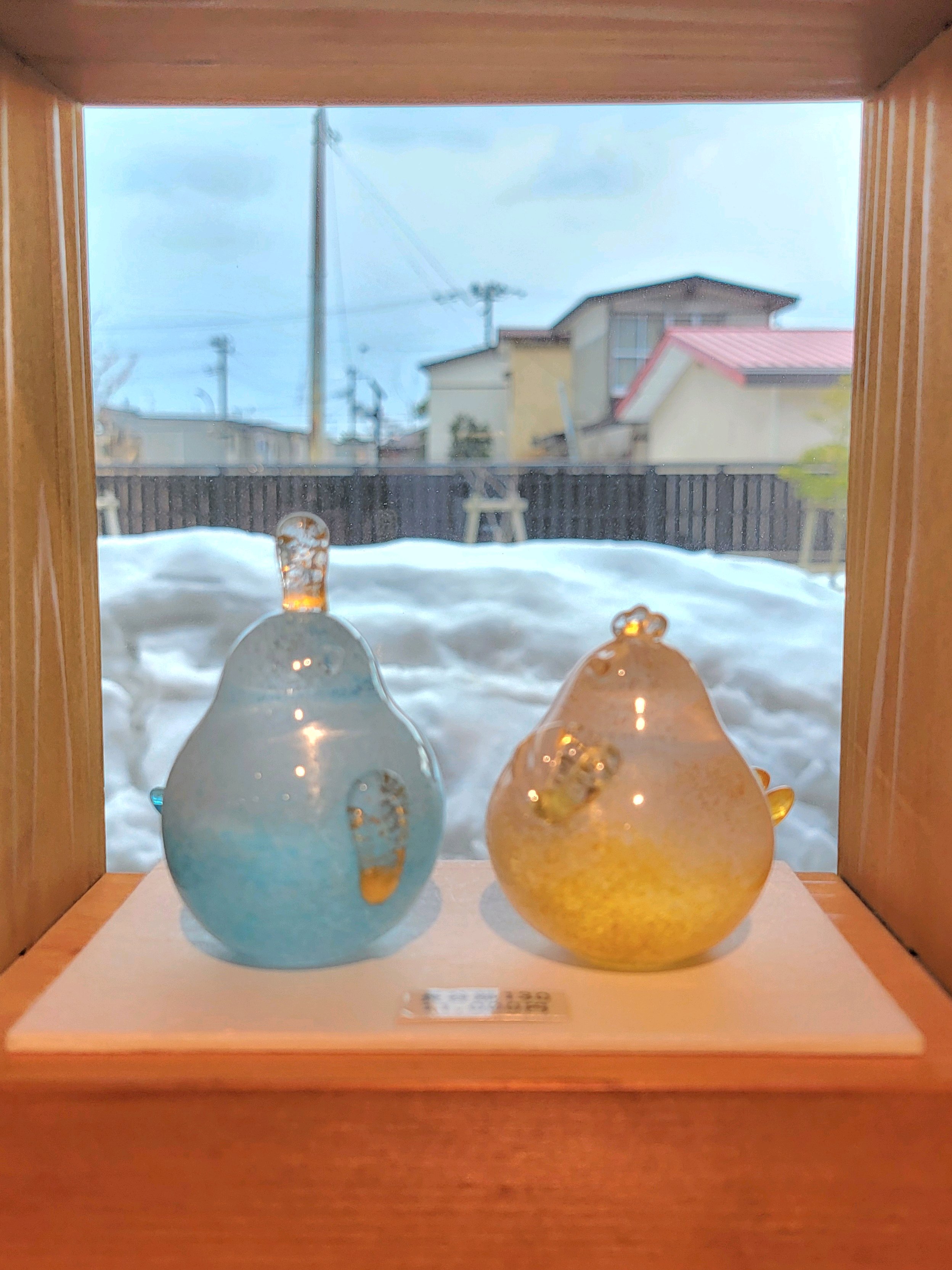 新屋ガラス工房は、 若いガラス作家が秋田に定着しガラス が文化として秋田の地に根付くことを目指しています。 2017年夏に工房がオープン、秋田の街中にガラス作品 を展示できたらと考えていたところ、東北電力様から社屋 広小路側ショーケースにガラス作品を展示しないかとのお誘 いをいただきました。
