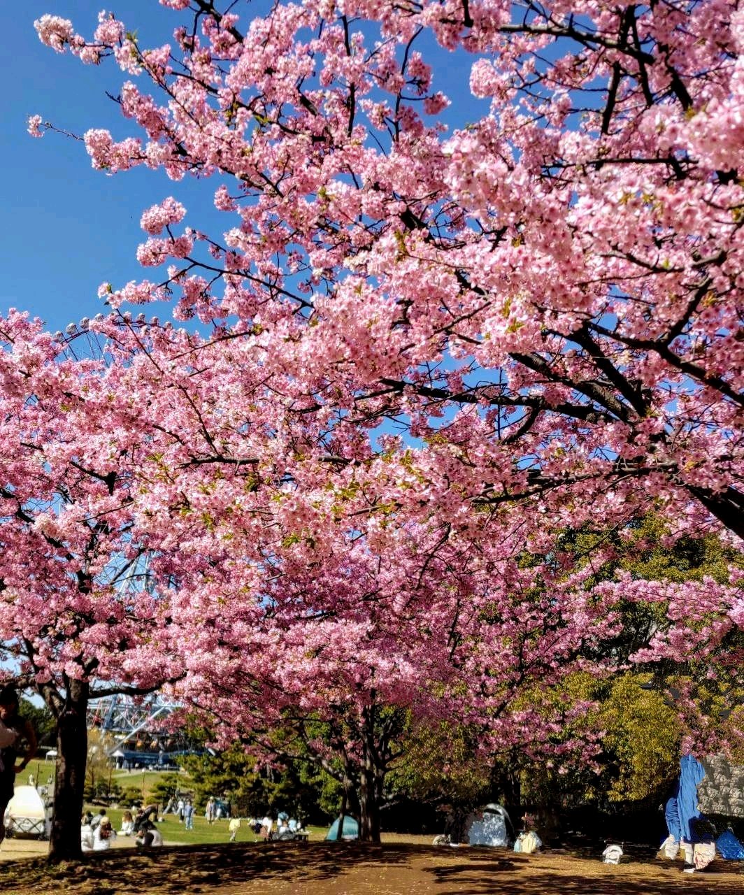 元気盛りの2歳半の孫とのお出かけ、葛西臨海公園に。満開の河津桜に迎えられ、働く車の最高峰、工事用大型クレーンに歓喜の声。