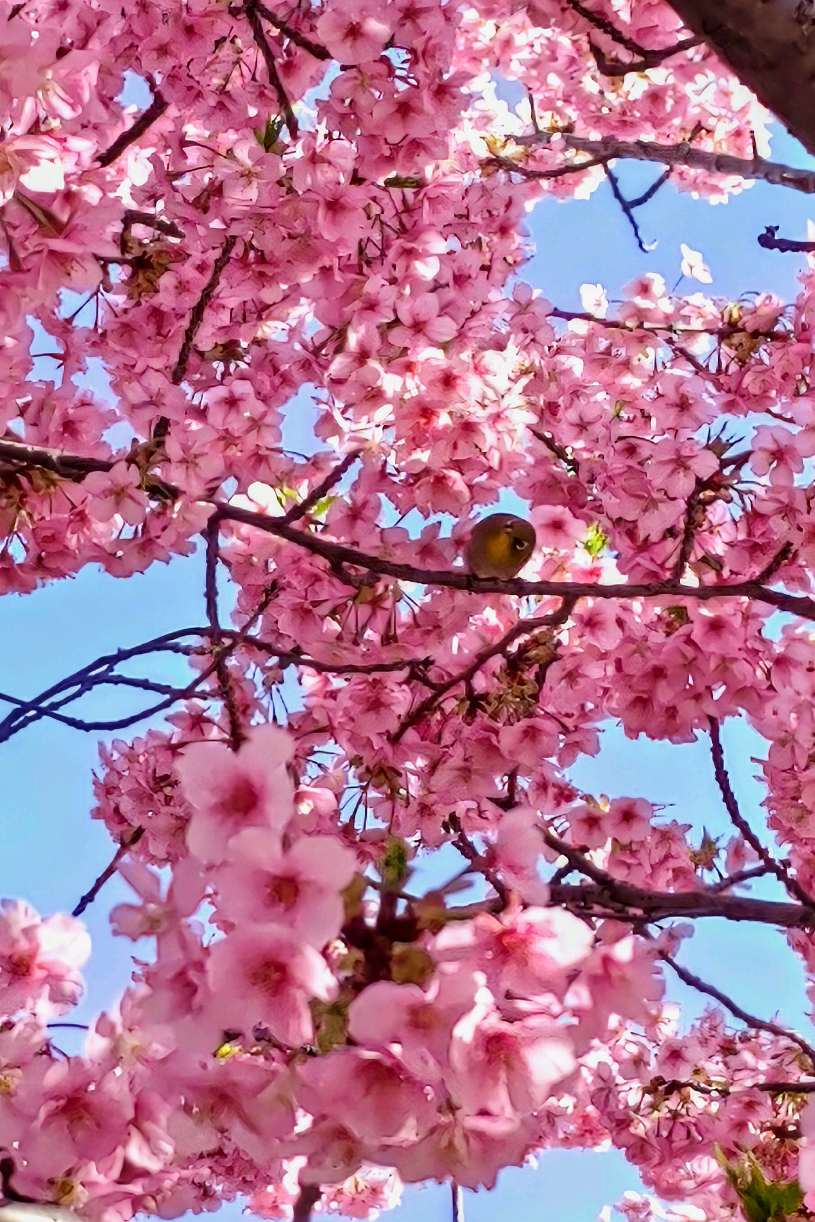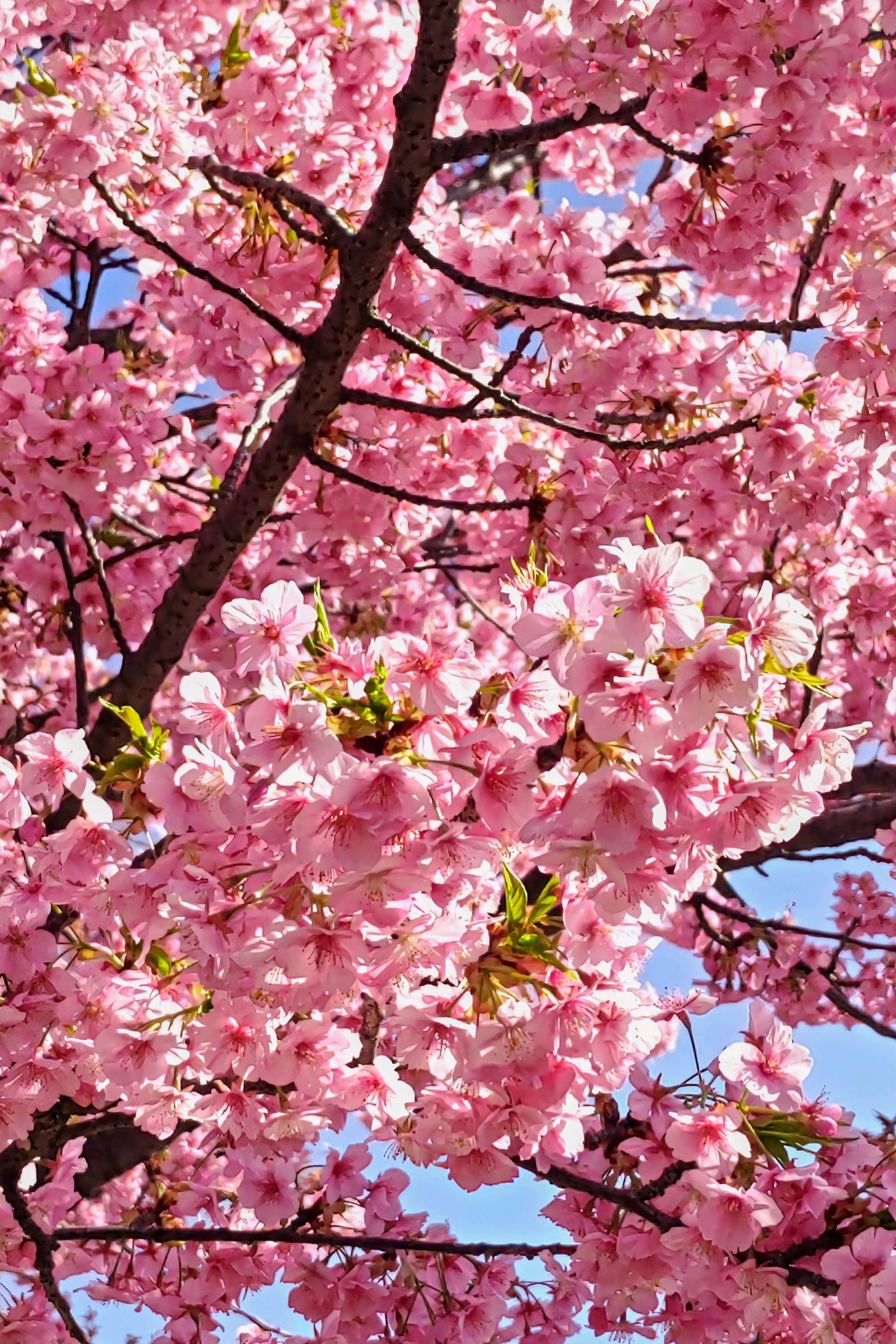 思いがけず、ピンクの塊の河津桜に迎えられる。