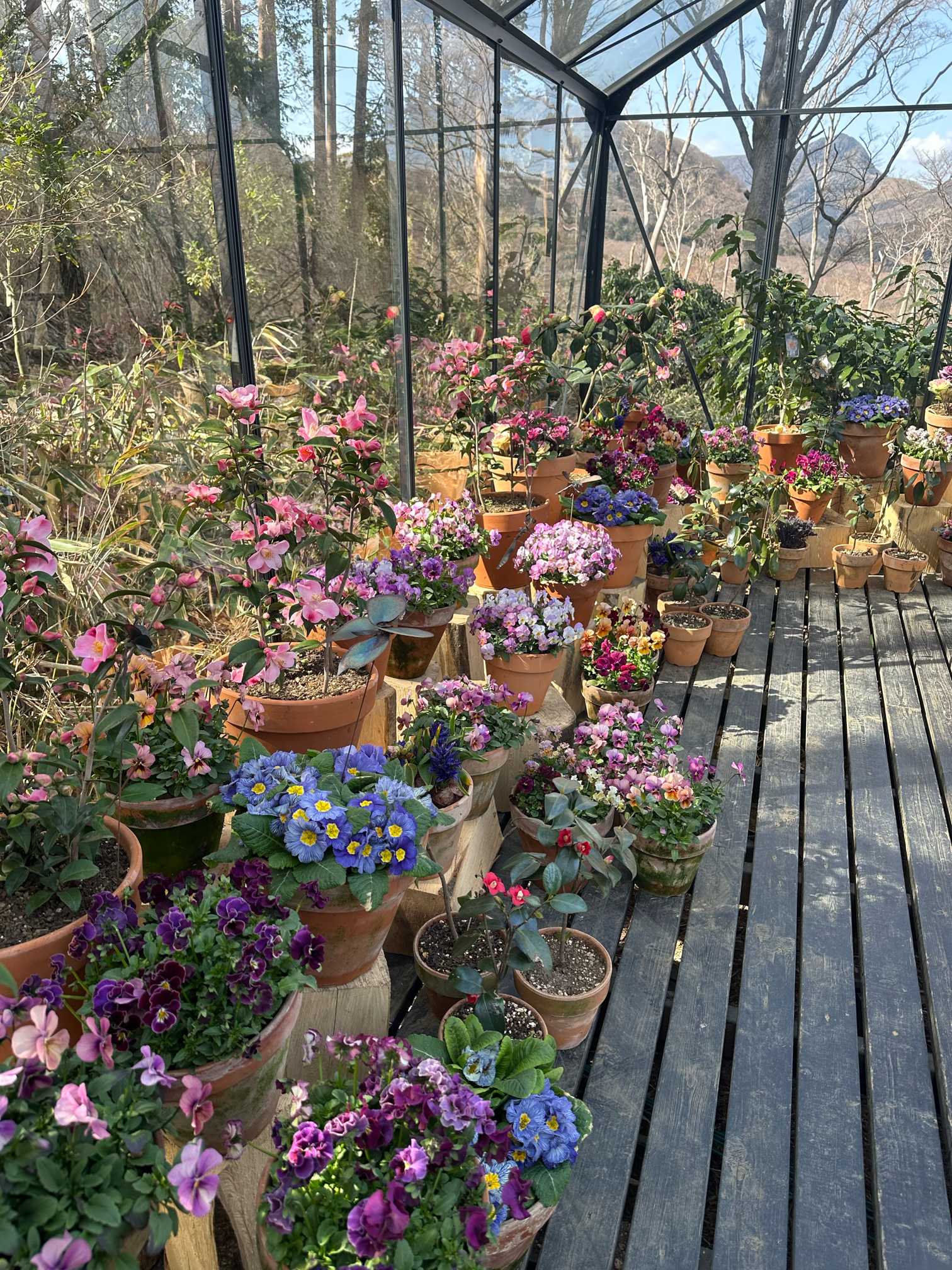 プリムラ 、ビオラ、葉牡丹たちの賑やかな空間。
